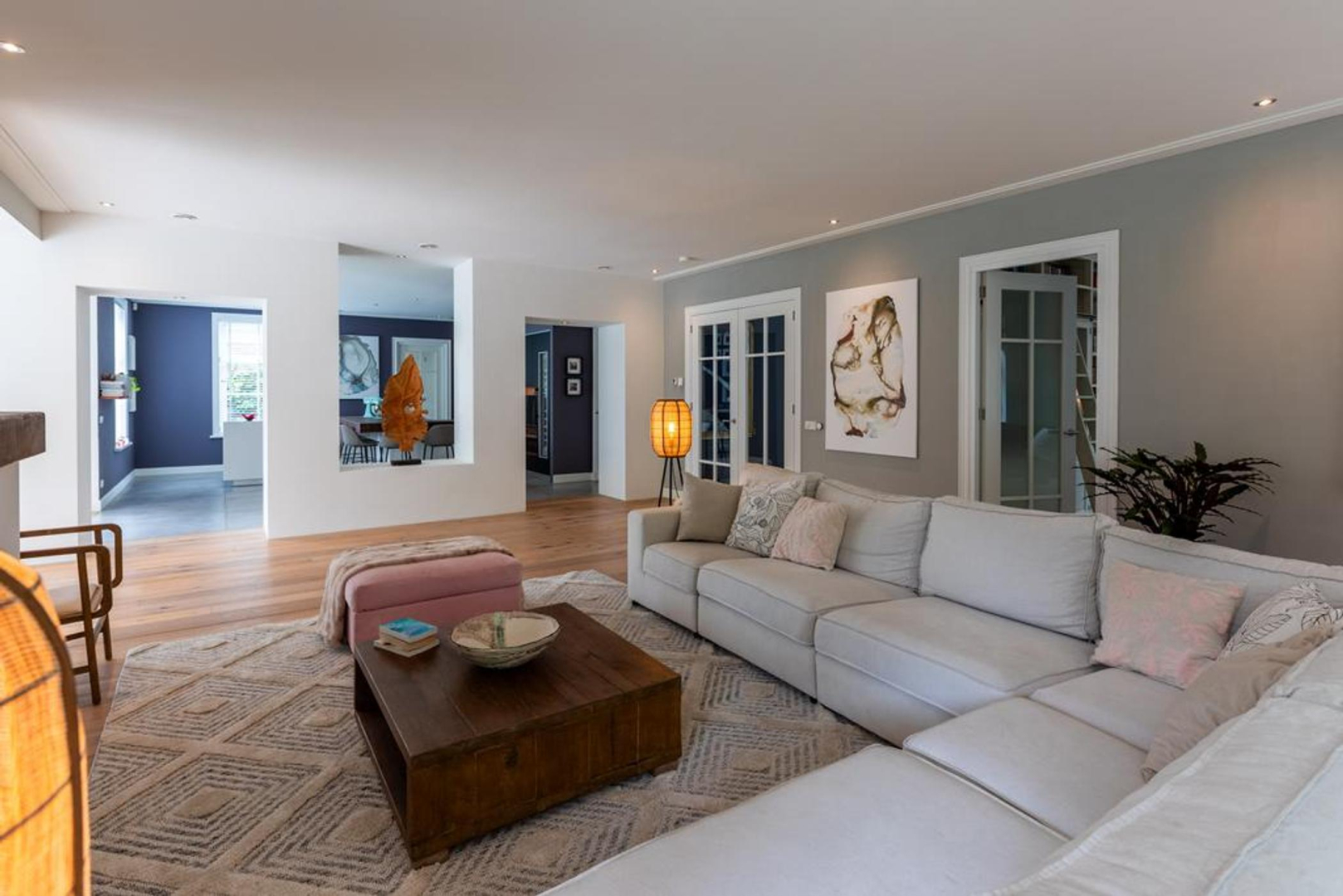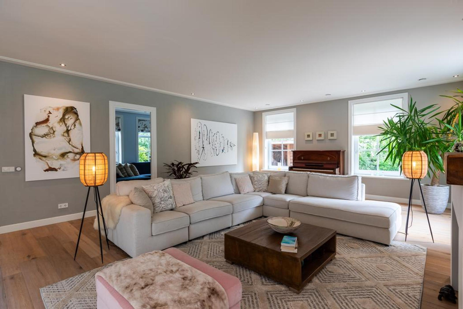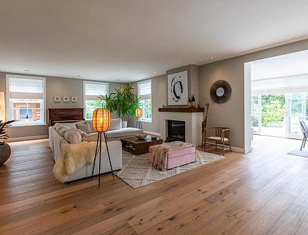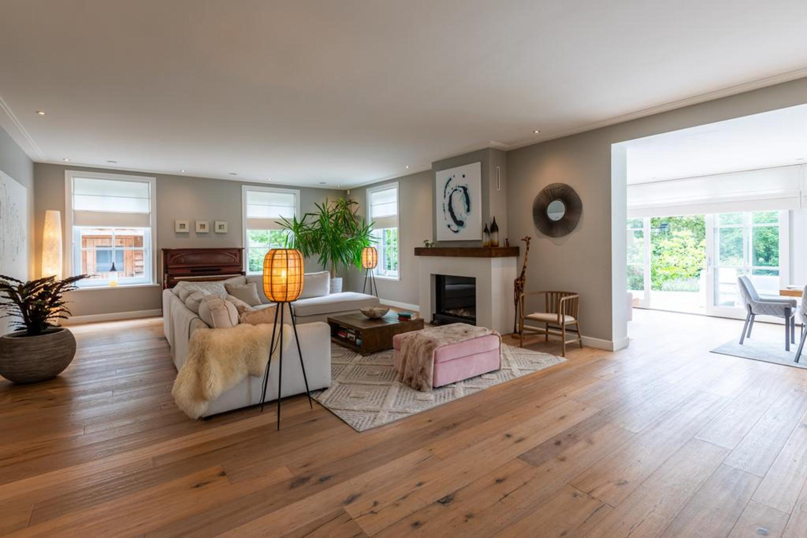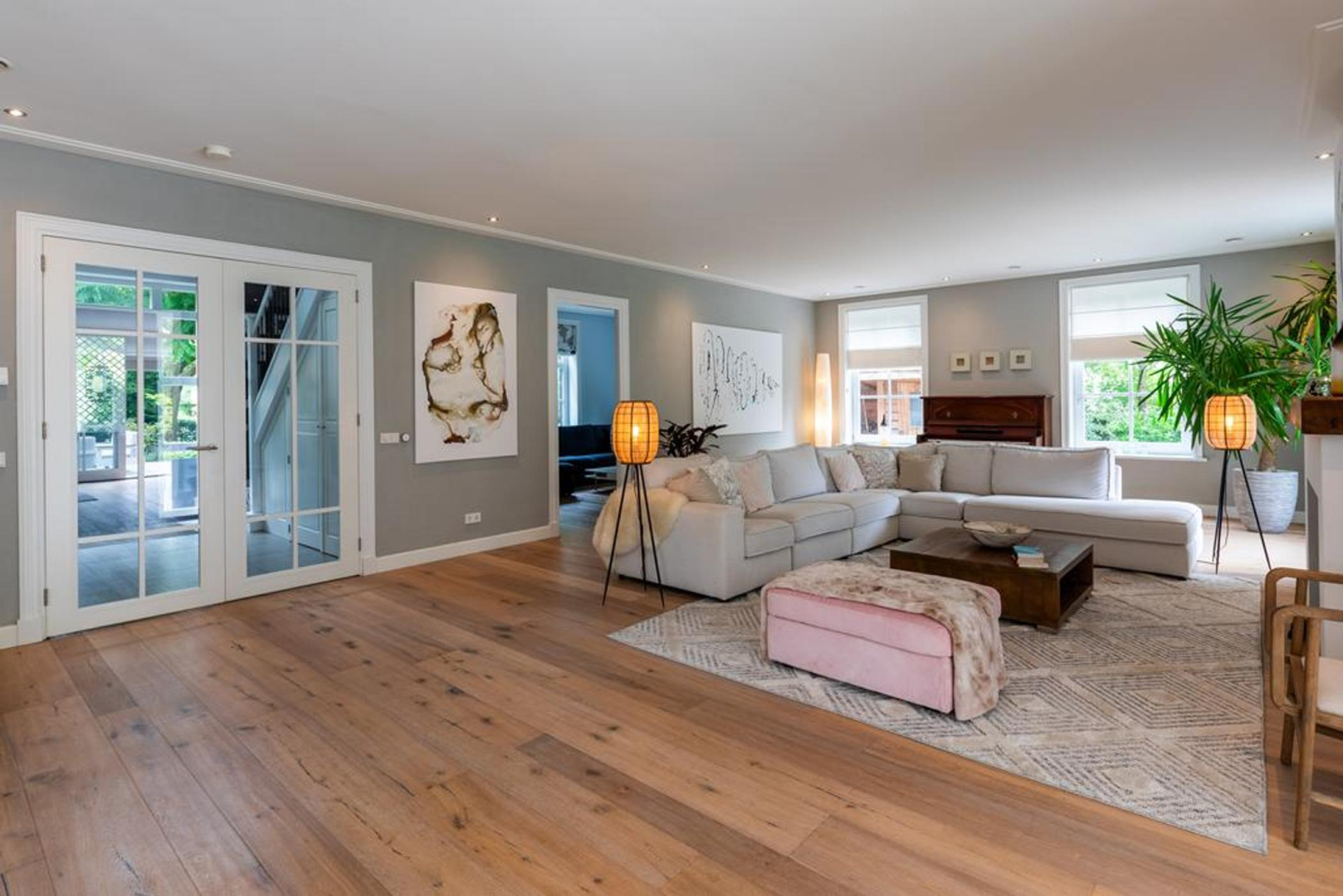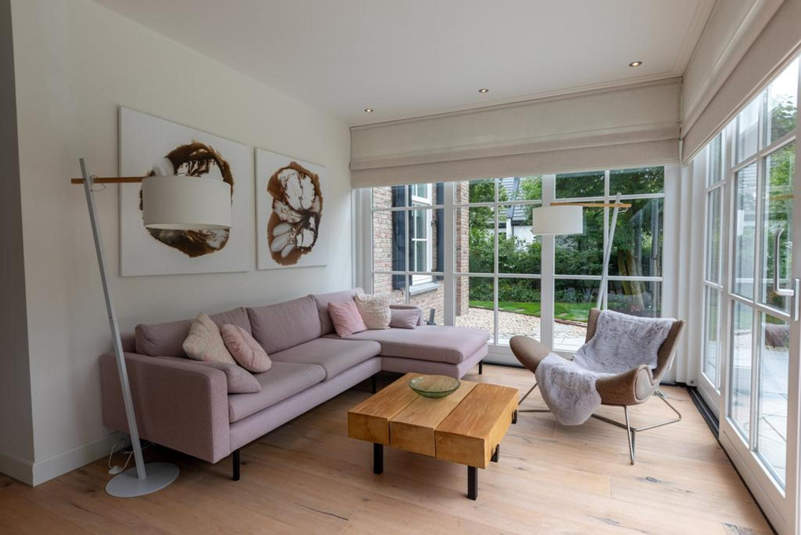 Living: Middels dubbele openslaande deuren, komt u in de sfeervolle living met zijn gezellige gasgestookte open haard, waar een fijne zithoek omheen gesitueerd is. Wilt u liever TV kijken of rustig een boek lezen, dan kunt u terecht in de bibliotheek dan wel TV kamer. En dan is er nog de grote en vooral lichte aangebouwde serre met toegang naar de grote en heerlijke tuin. Hier kunt u genieten van het groen en de vogels, alle kleurrijke bloemen, maar ook borrelen of gezellig samen eten en lang natafelen. Hier wordt binnen buiten en buiten wordt binnen. De hoge plafonds (2.85 meter) zijn voorzien van inbouwspots en geven een ruimtelijk effect en de raampartijen zorgen voor een optimale lichtinval. De prachtige eikenhouten geborstelde parketvloer met vloerverwarming, het hoge afwerkingsniveau en de open ruimte, versterken de aangename sfeer van luxe en warmte.