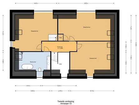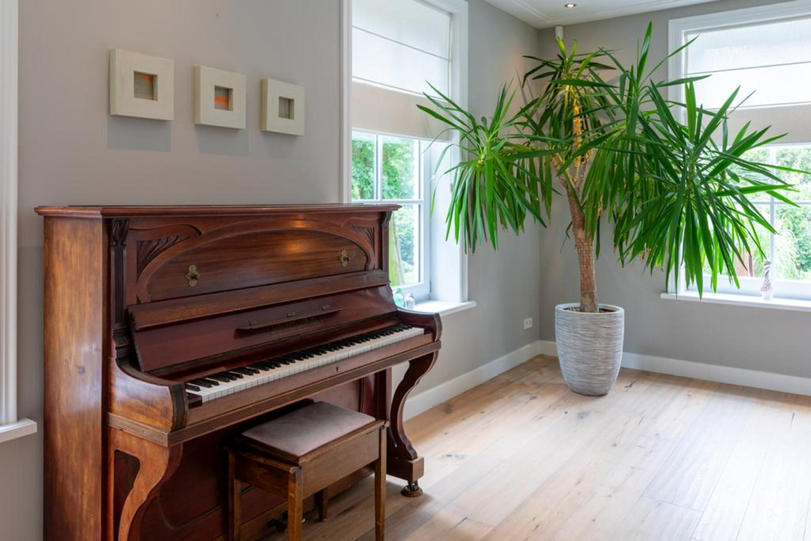 2e verdieping: Middels het statige open trappenhuis is er direct contact met beneden mogelijk. Op deze verdieping zijn er 3 grote slaapkamers, elk op eigen sfeervolle wijze ingericht. De ‘muziek’ kamer is afgewerkt met houten muurelementen ter bevordering van geluidsreductie en akoestiek. Tevens is er een grote badkamer, van alle luxe voorzien met zijn mooie natuurstenen tegelafwerking en ingebouwde kranen. Er is een grote inloopdouche met zitbankje en glazen wand, een royaal vrijstaand duo ligbad, een wandcloset en een prachtig wastafelmeubel met twee waskommen. Alle kamers beschikken over veel lichtinval door de charmante dakkapellen en dakramen. Ook deze verdieping is voorzien van een warme eikenhouten parketvloer met vloerverwarming.