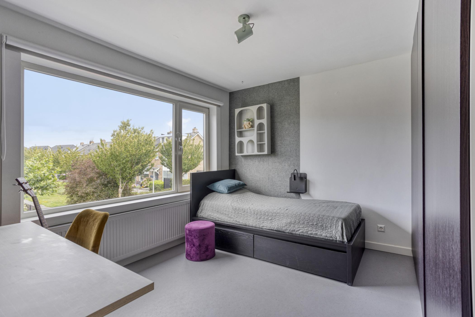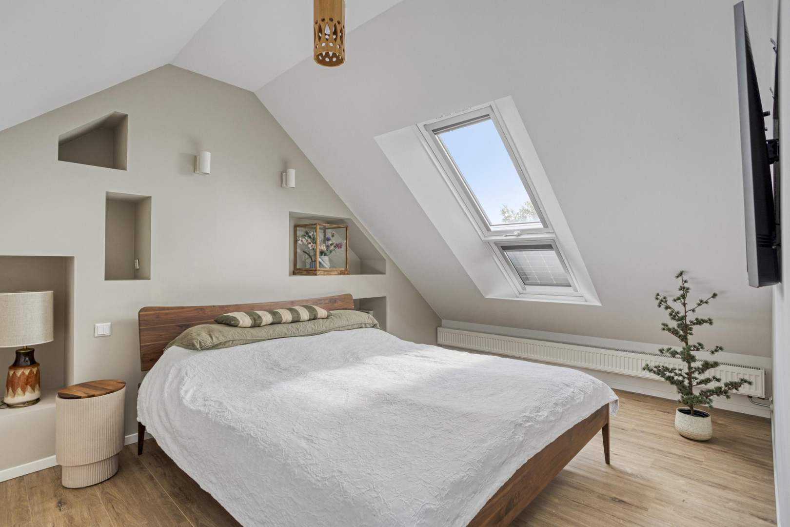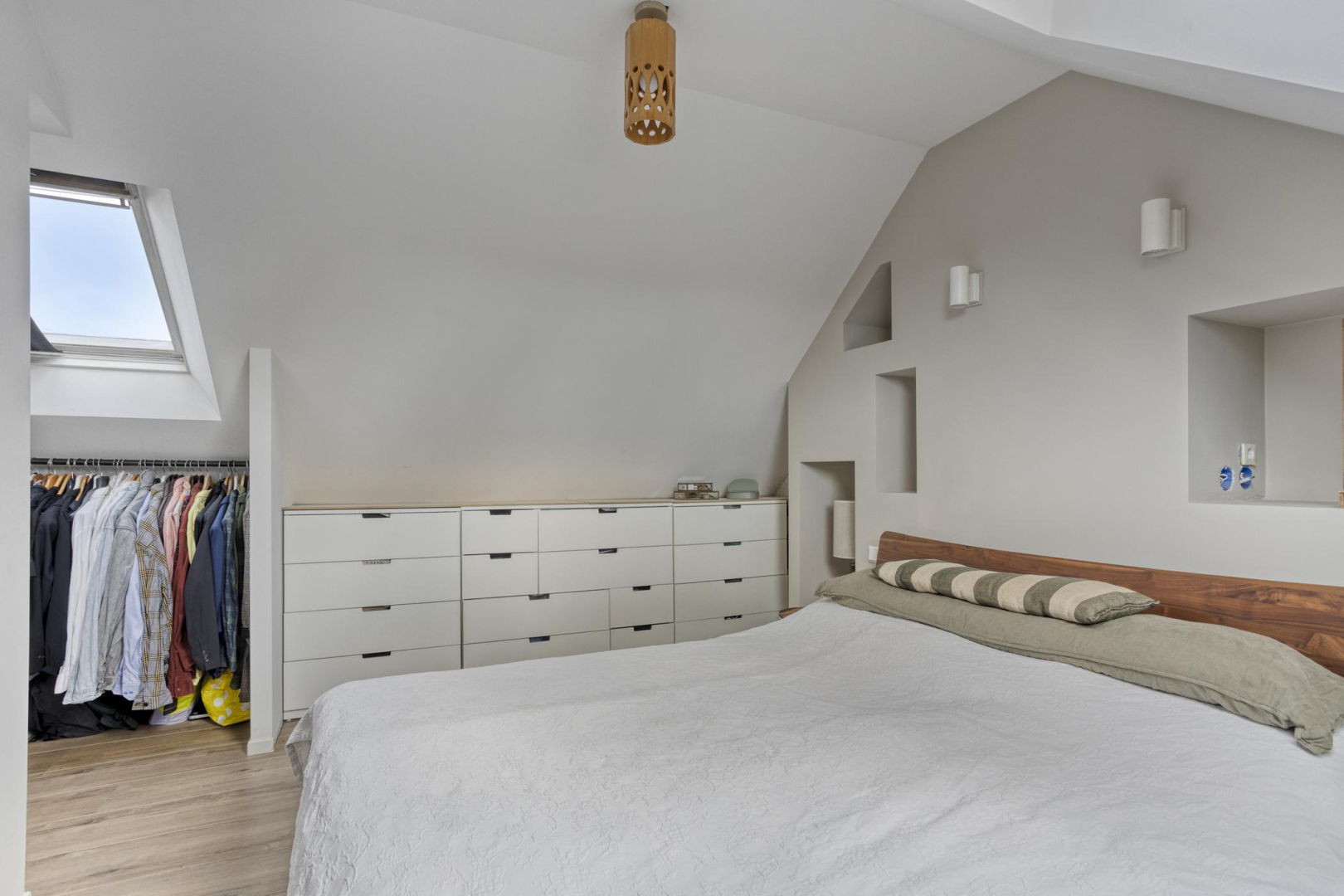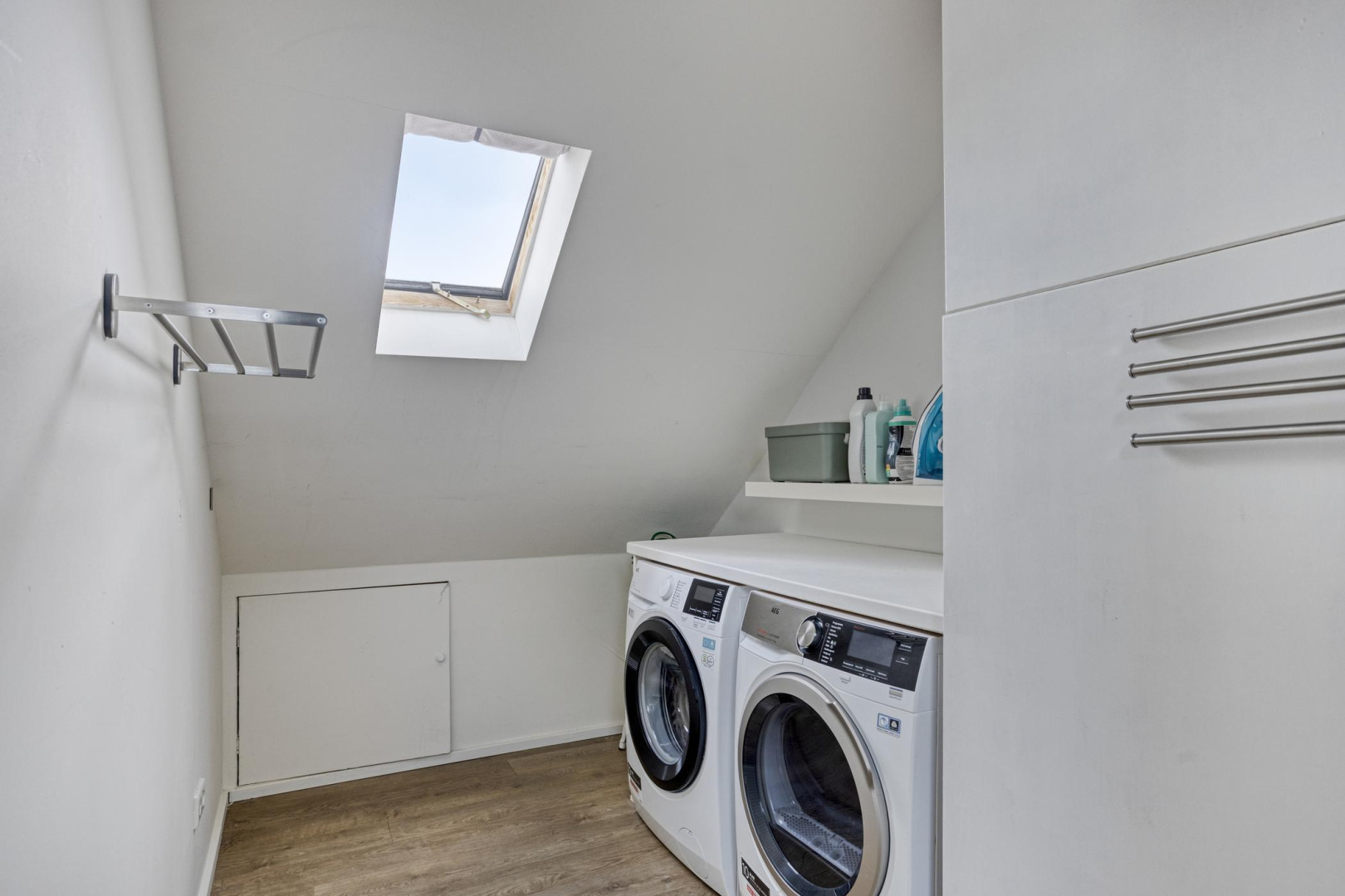 Op de tweede verdieping heeft u een volwaardige derde slaapkamer met dakraam. Deze verdieping is volledig afgewerkt met een nette laminaatvloer en is een aparte was- en droogruimte, eveneens met dakraam, de opstelling voor de Cv-ketel en twee omvormers.