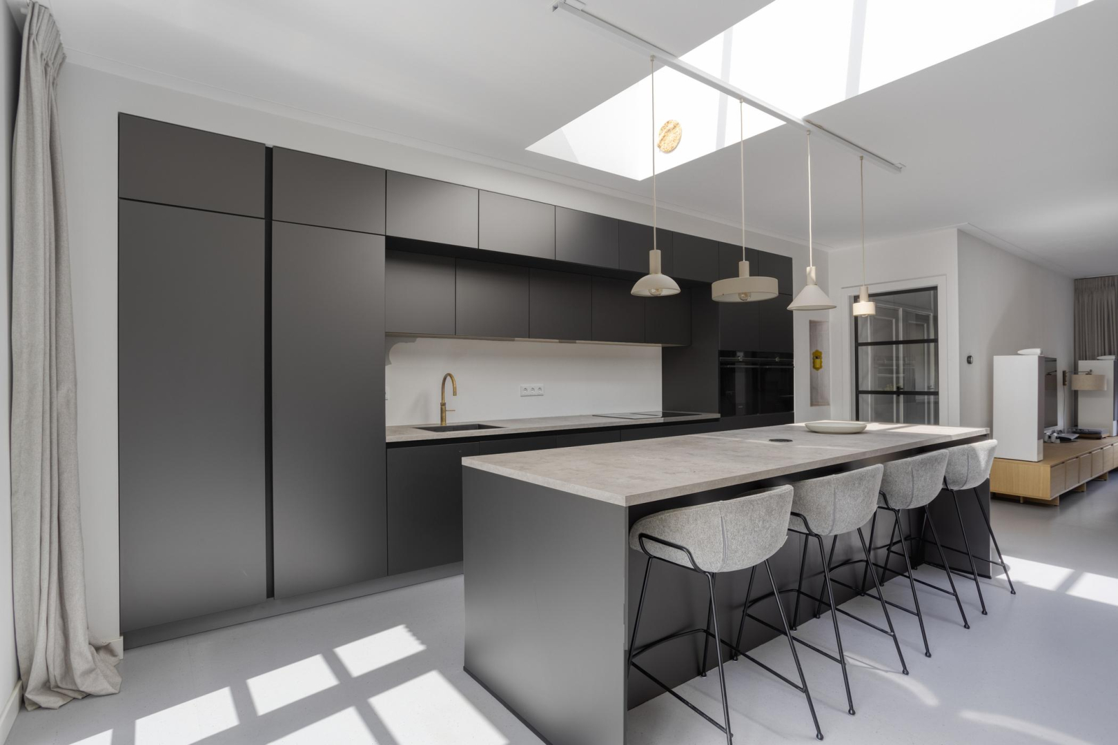 Luxe open keuken met eiland en eetbar
