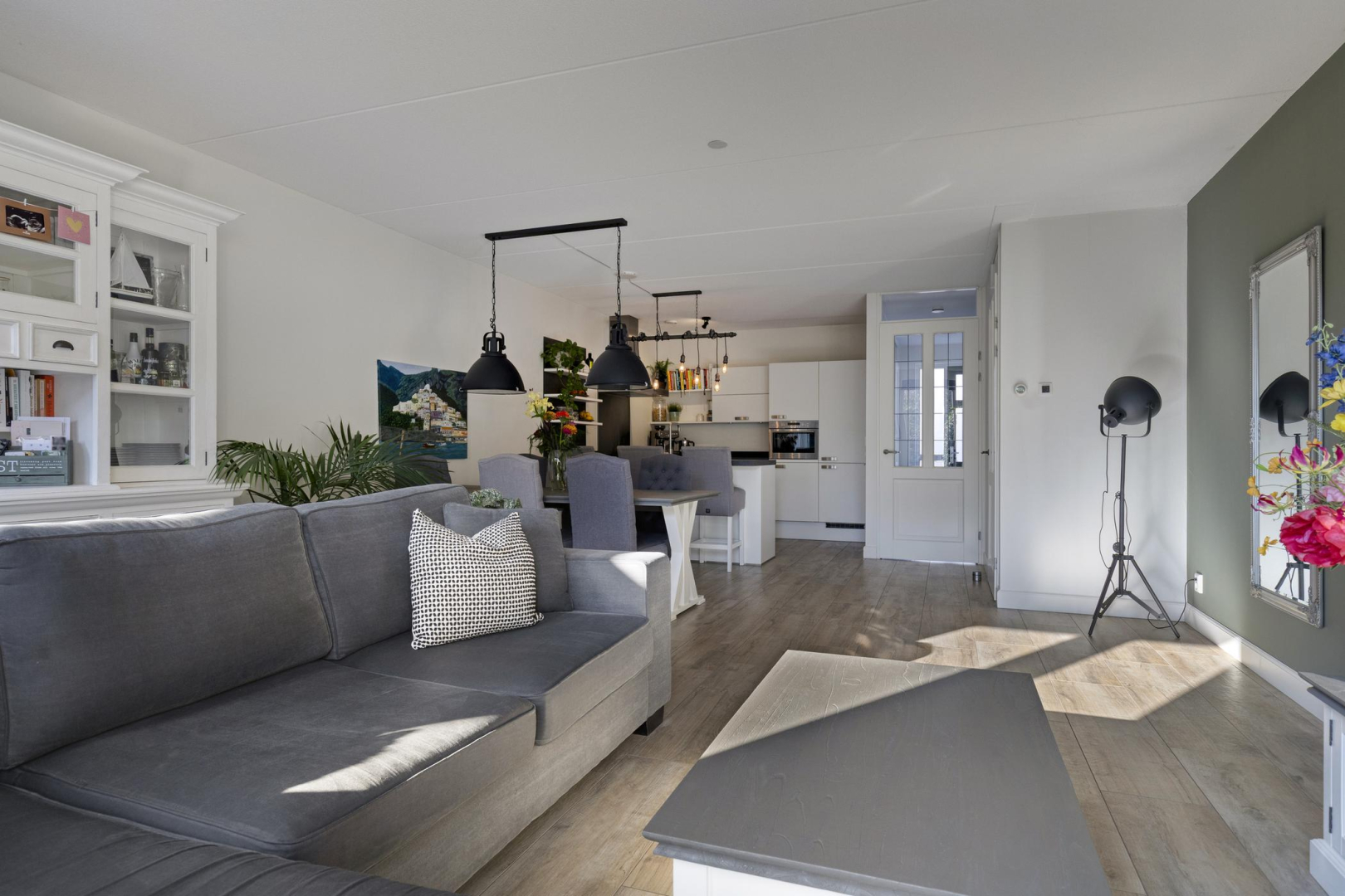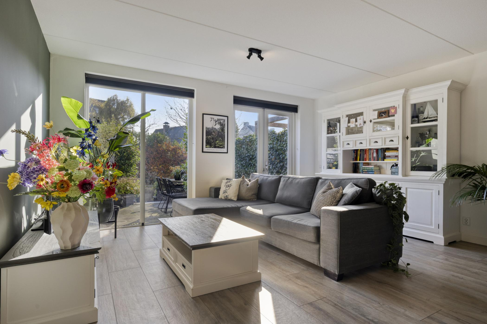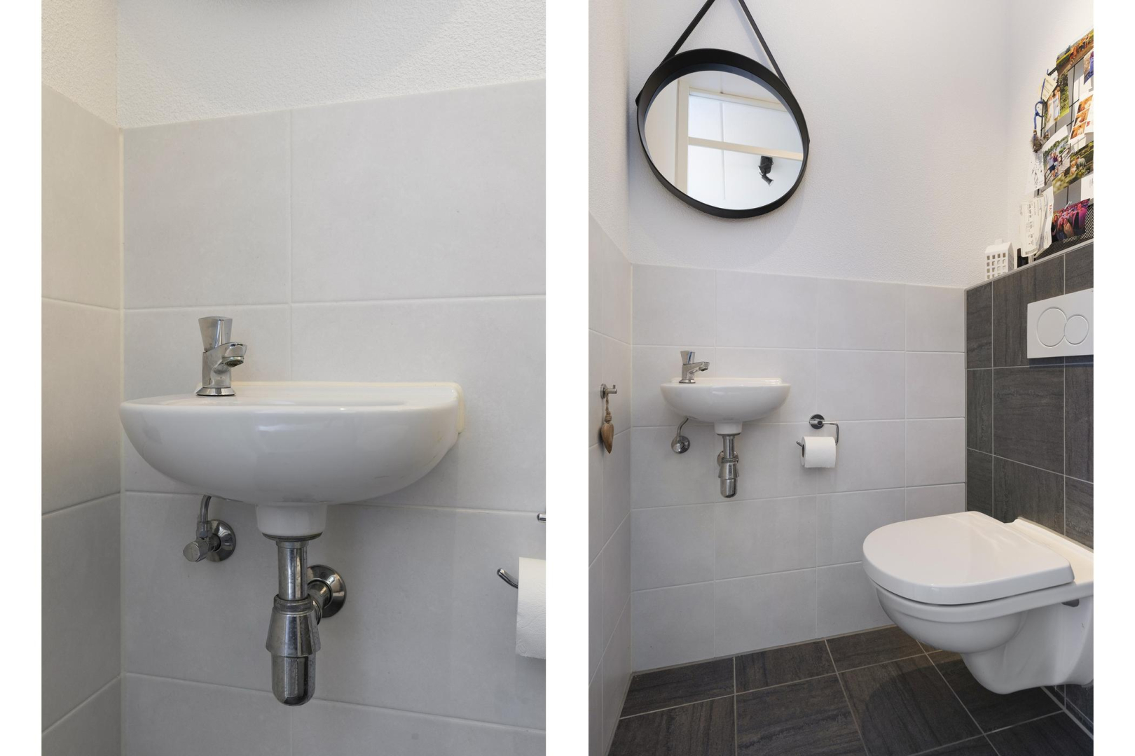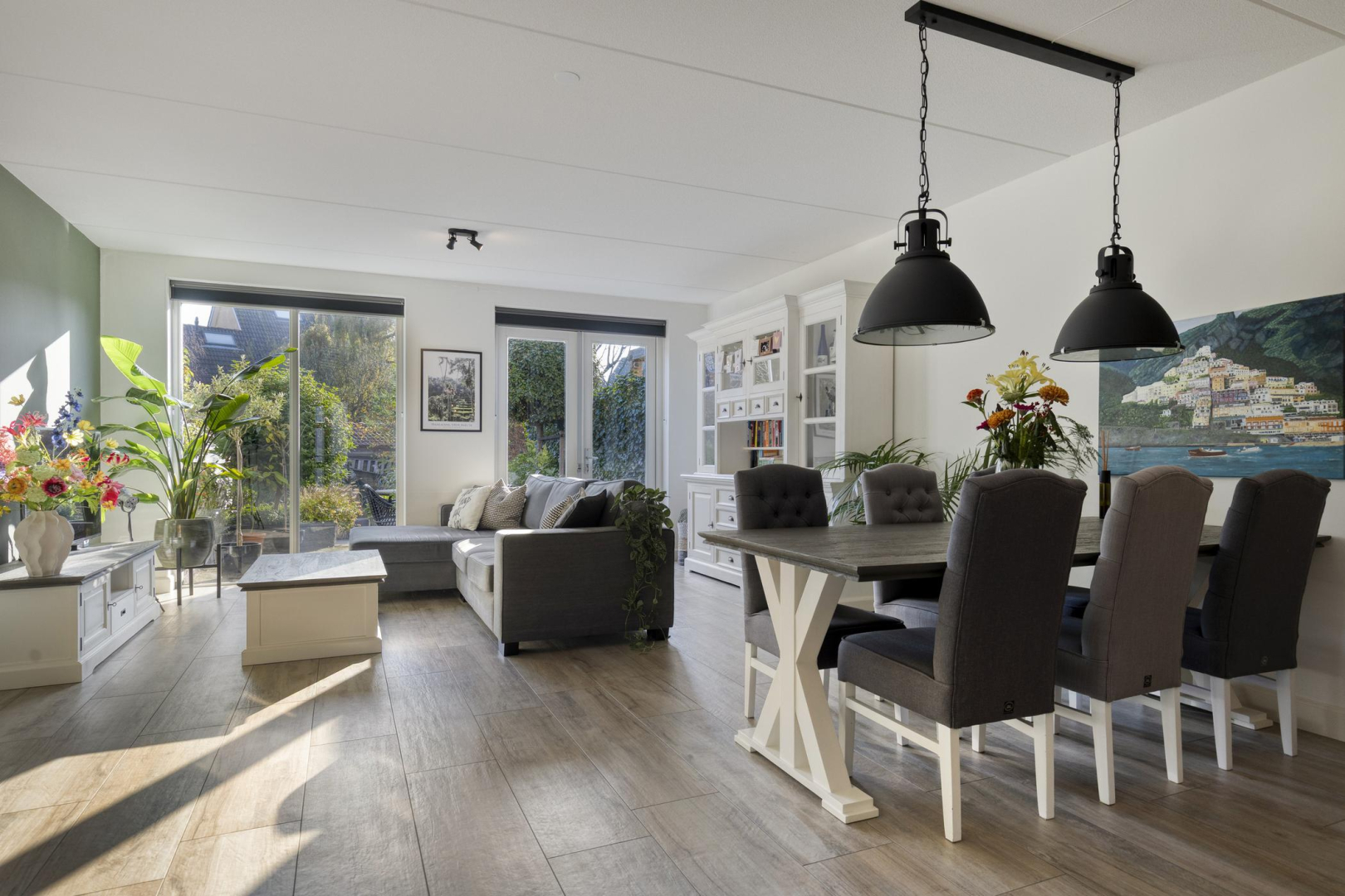 Entree, hal met meterkast, toiletruimte met wandcloset en fontein. Vanuit de hal is er toegang tot de praktische berging. Deze berging beschikt over voldoende bergruimte en heeft een directe deur naar de straat, ideaal voor bijvoorbeeld het stallen van fietsen, kinderwagens of hobbyspullen. De hal loopt naadloos over in de sfeervolle en lichte woonkamer, waarbij de keramische tegelvloer in houtlook zorgt voor een warme en eigentijdse uitstraling. Dankzij de grote raampartijen en de openslaande deuren naar de achtertuin is de woonkamer aangenaam licht en uitnodigend. De trapkast biedt extra opbergruimte. De open keuken met een gezellige eetbar is uitgevoerd in een moderne, neutrale kleurstelling en is voorzien van een donker werkblad. Uiteraard is er aan comfort gedacht, de keuken beschikt over diverse inbouwapparatuur, waaronder een vaatwasser, een kokend waterkraan met plintboiler, 5-pits gaskookplaat, oven en koel-/vriescombinatie. Een fijne plek om te koken én samen te komen. De begane grondvloer is voorzien van vloerverwarming met uitzondering van de berging.