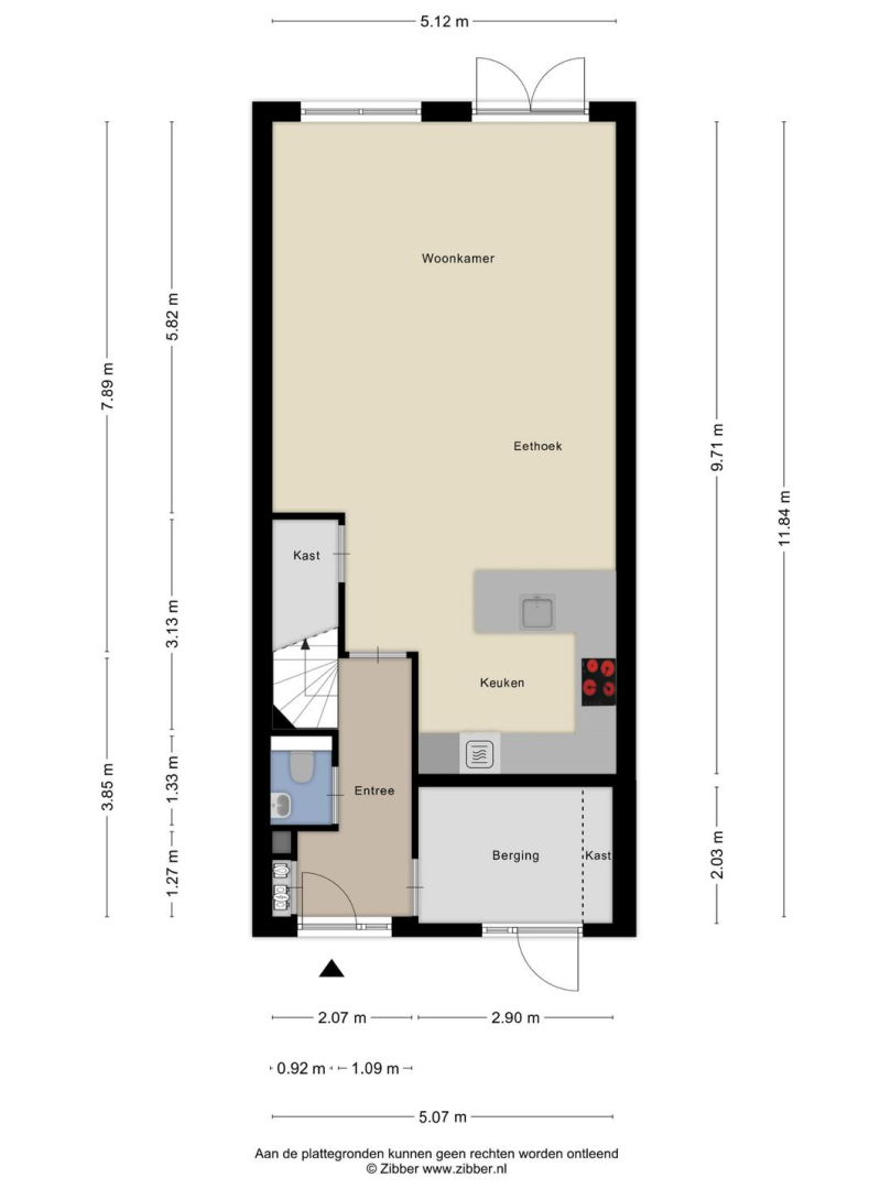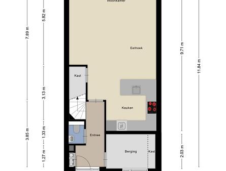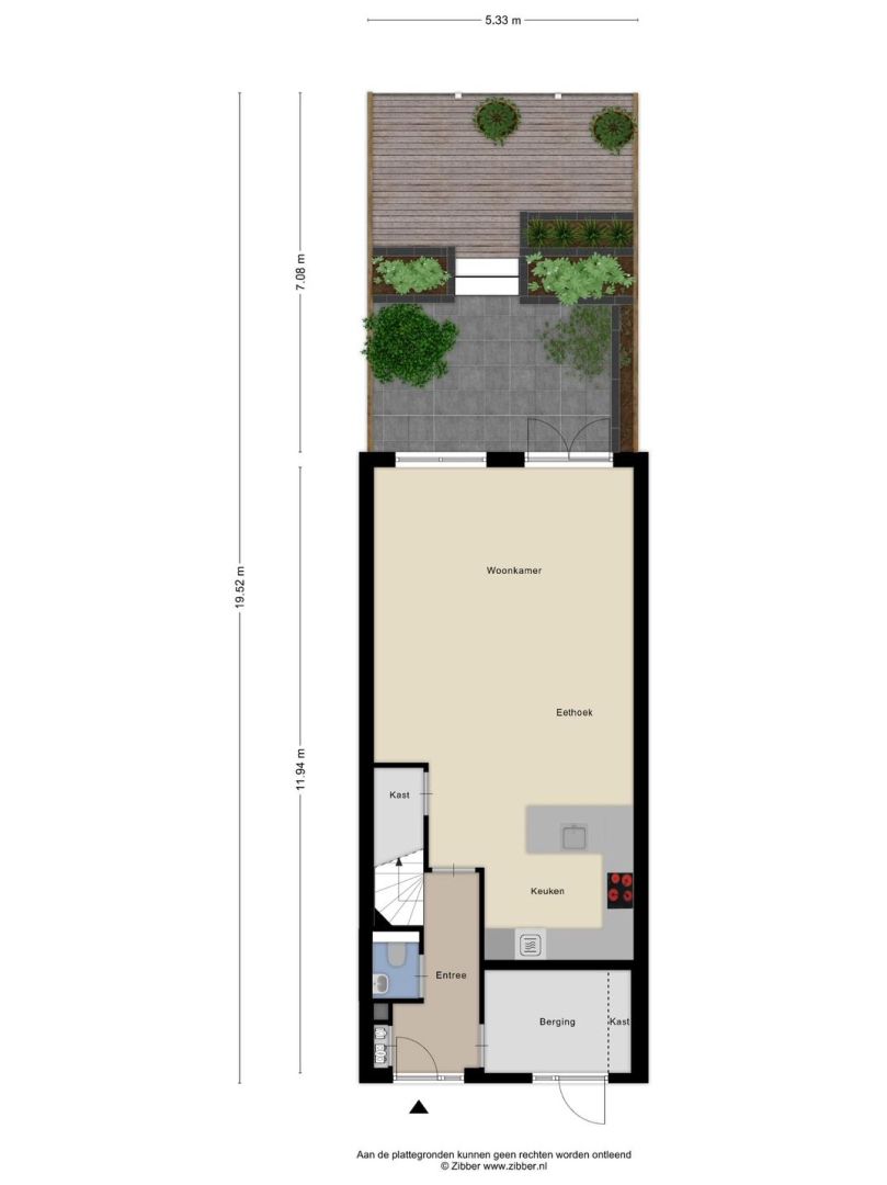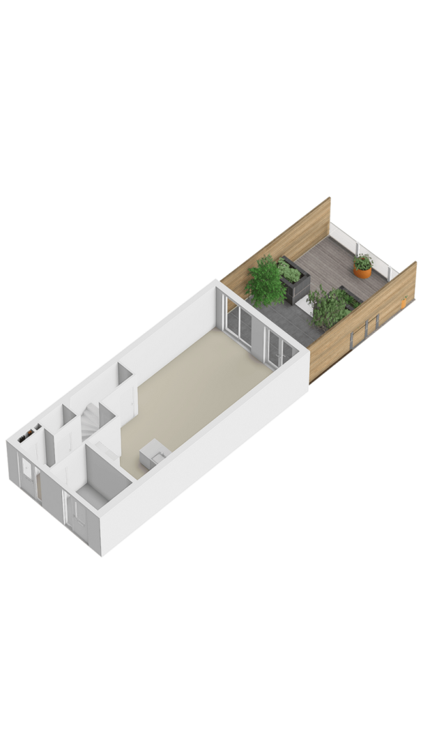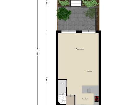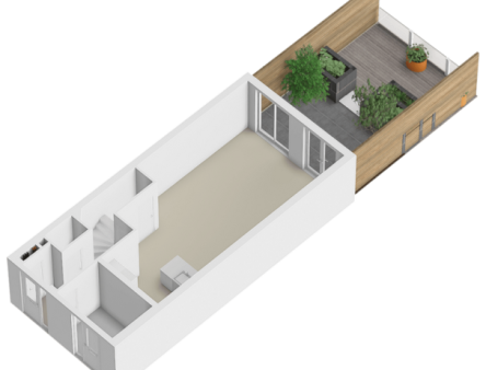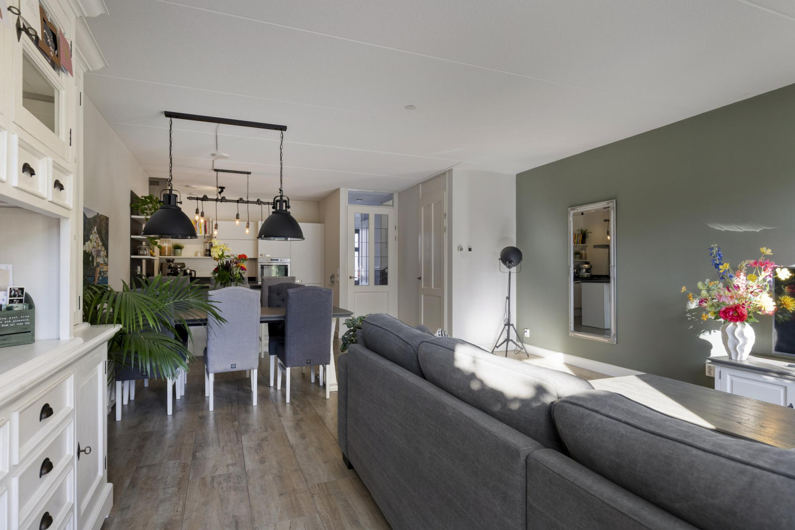 Entree, hal met meterkast, toiletruimte met wandcloset en fontein. Vanuit de hal is er toegang tot de praktische berging. Deze berging beschikt over voldoende bergruimte en heeft een directe deur naar de straat, ideaal voor bijvoorbeeld het stallen van fietsen, kinderwagens of hobbyspullen. De hal loopt naadloos over in de sfeervolle en lichte woonkamer, waarbij de keramische tegelvloer in houtlook zorgt voor een warme en eigentijdse uitstraling. Dankzij de grote raampartijen en de openslaande deuren naar de achtertuin is de woonkamer aangenaam licht en uitnodigend. De trapkast biedt extra opbergruimte. De open keuken met een gezellige eetbar is uitgevoerd in een moderne, neutrale kleurstelling en is voorzien van een donker werkblad. Uiteraard is er aan comfort gedacht, de keuken beschikt over diverse inbouwapparatuur, waaronder een vaatwasser, een kokend waterkraan met plintboiler, 5-pits gaskookplaat, oven en koel-/vriescombinatie. Een fijne plek om te koken én samen te komen. De begane grondvloer is voorzien van vloerverwarming met uitzondering van de berging.