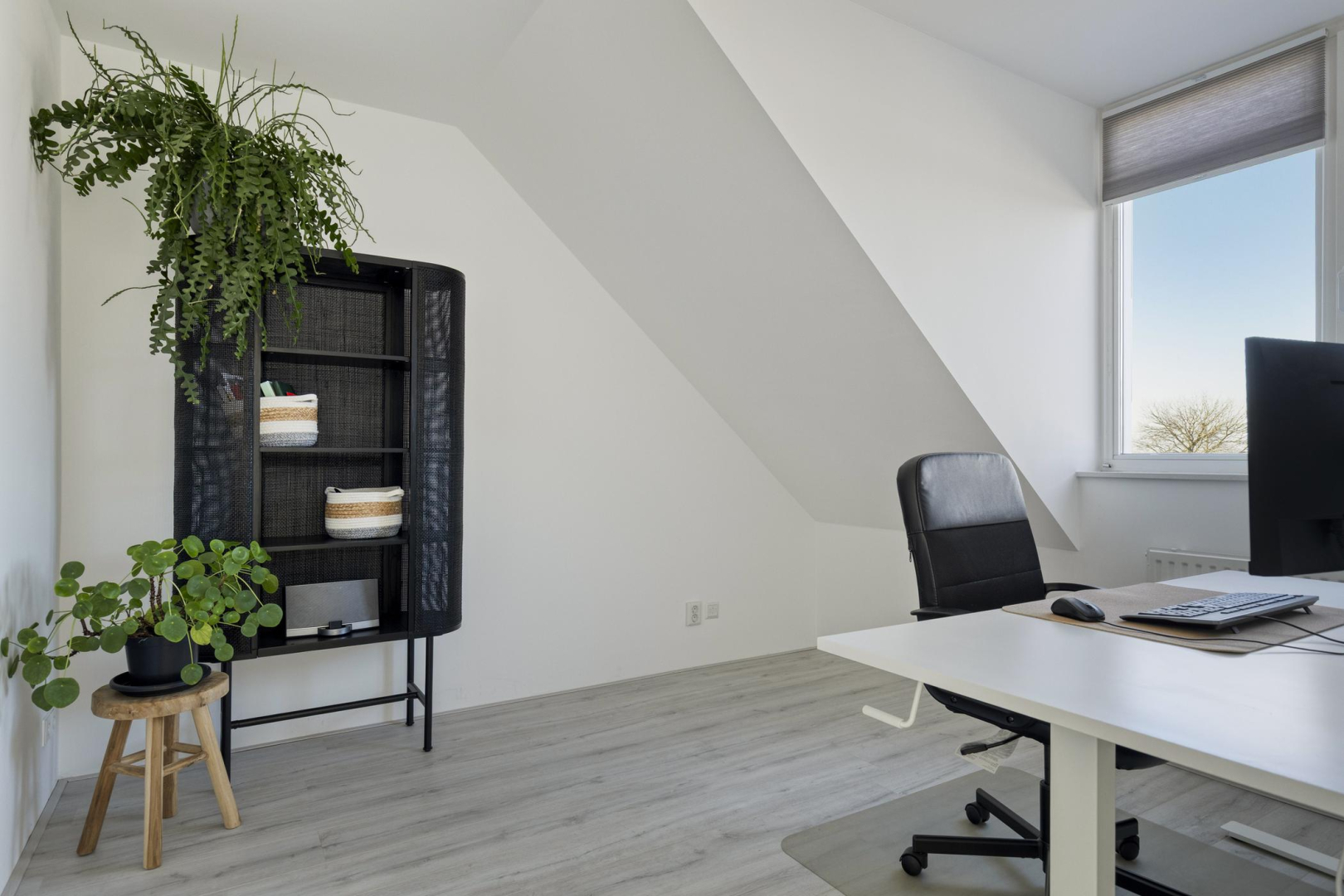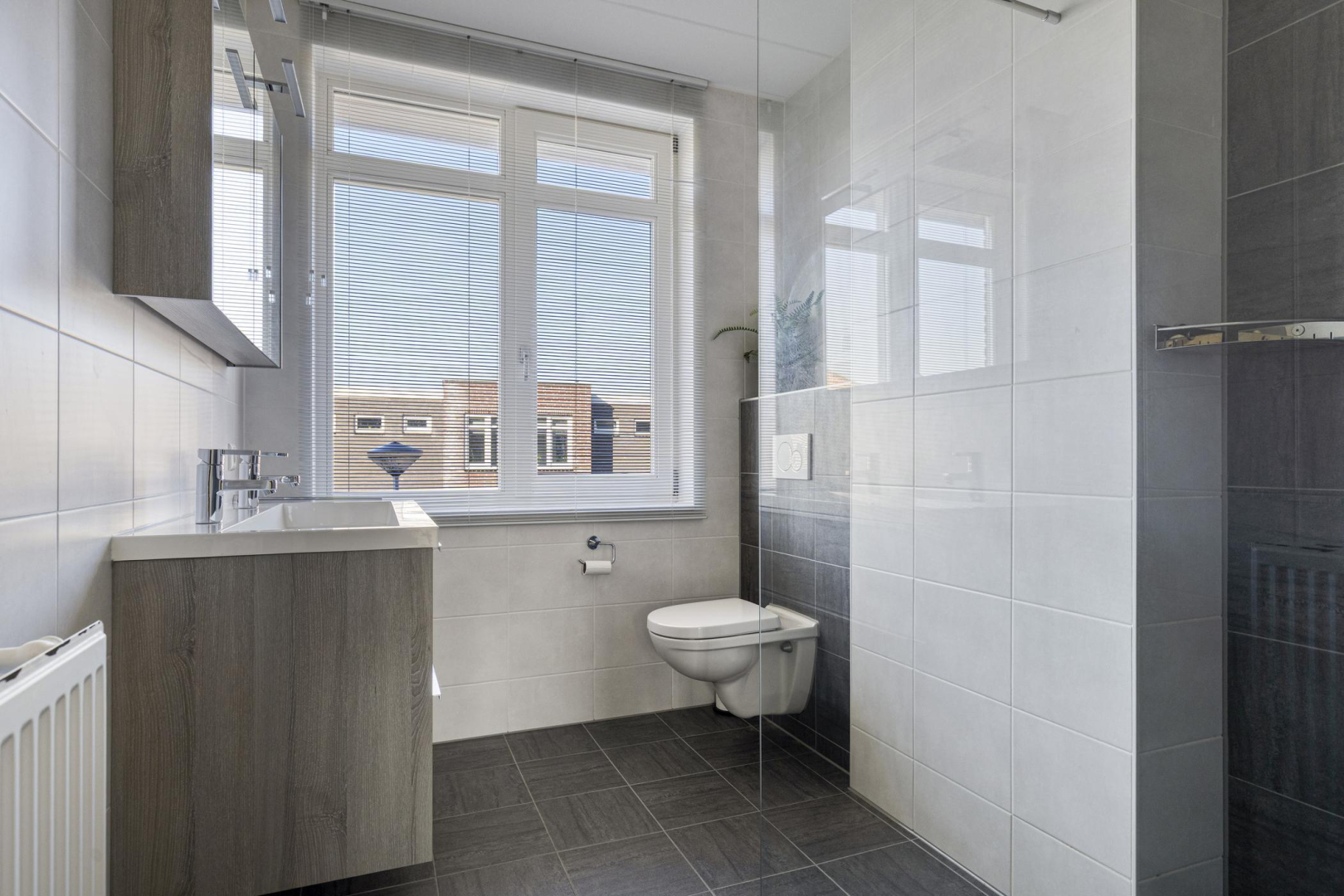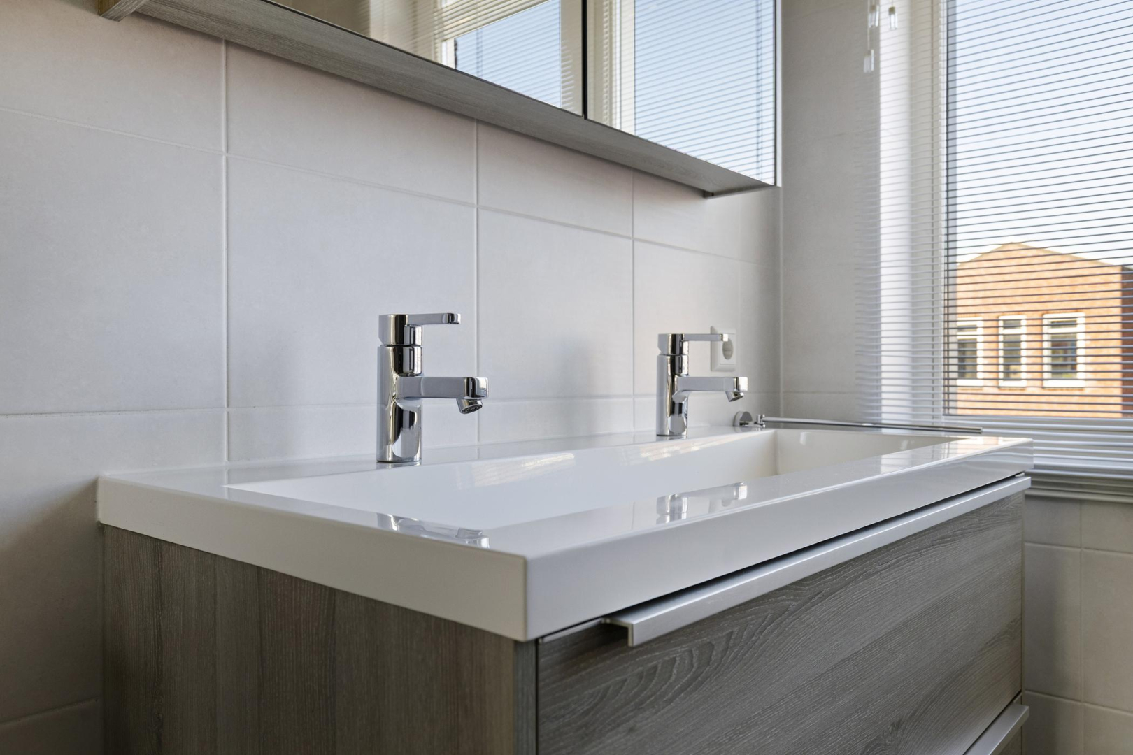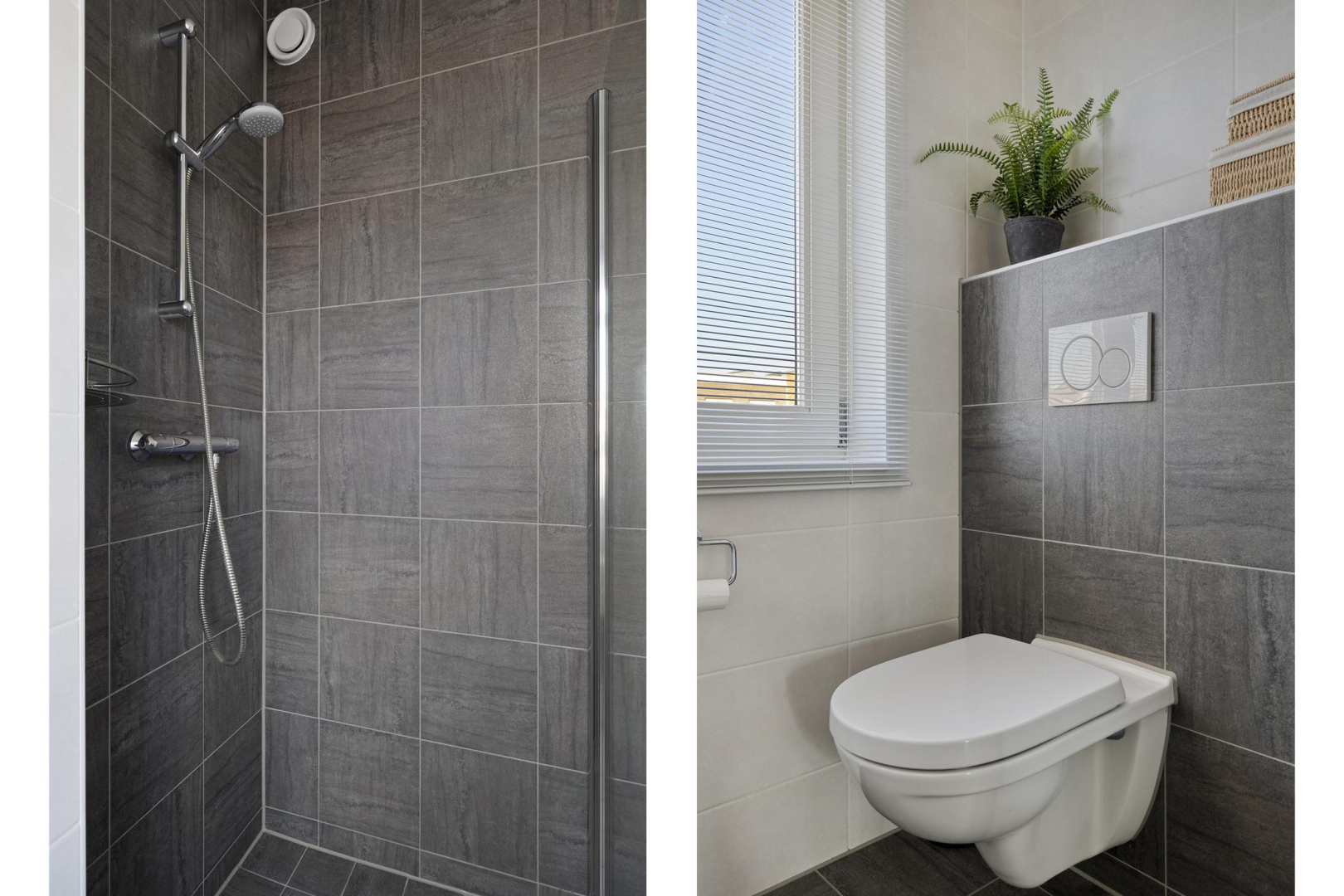 Via de overloop bereikt u de badkamer en de drie ruime slaapkamers. De moderne badkamer is stijlvol ingericht en voorzien van een inloopdouche, een dubbele wastafel met bijpassend meubel, een spiegelkast en een wandcloset. Aan de achterzijde van de woning bevindt zich een ruime slaapkamer, uitgerust met een vaste kastenwand die voor veel bergruimte zorgt. Op deze verdieping zijn er nog twee lichte slaapkamers, ideaal als kinder-, werk- of logeerkamer. Alle slaapkamers zijn voorzien van een lichte laminaatvloer in houtlook.