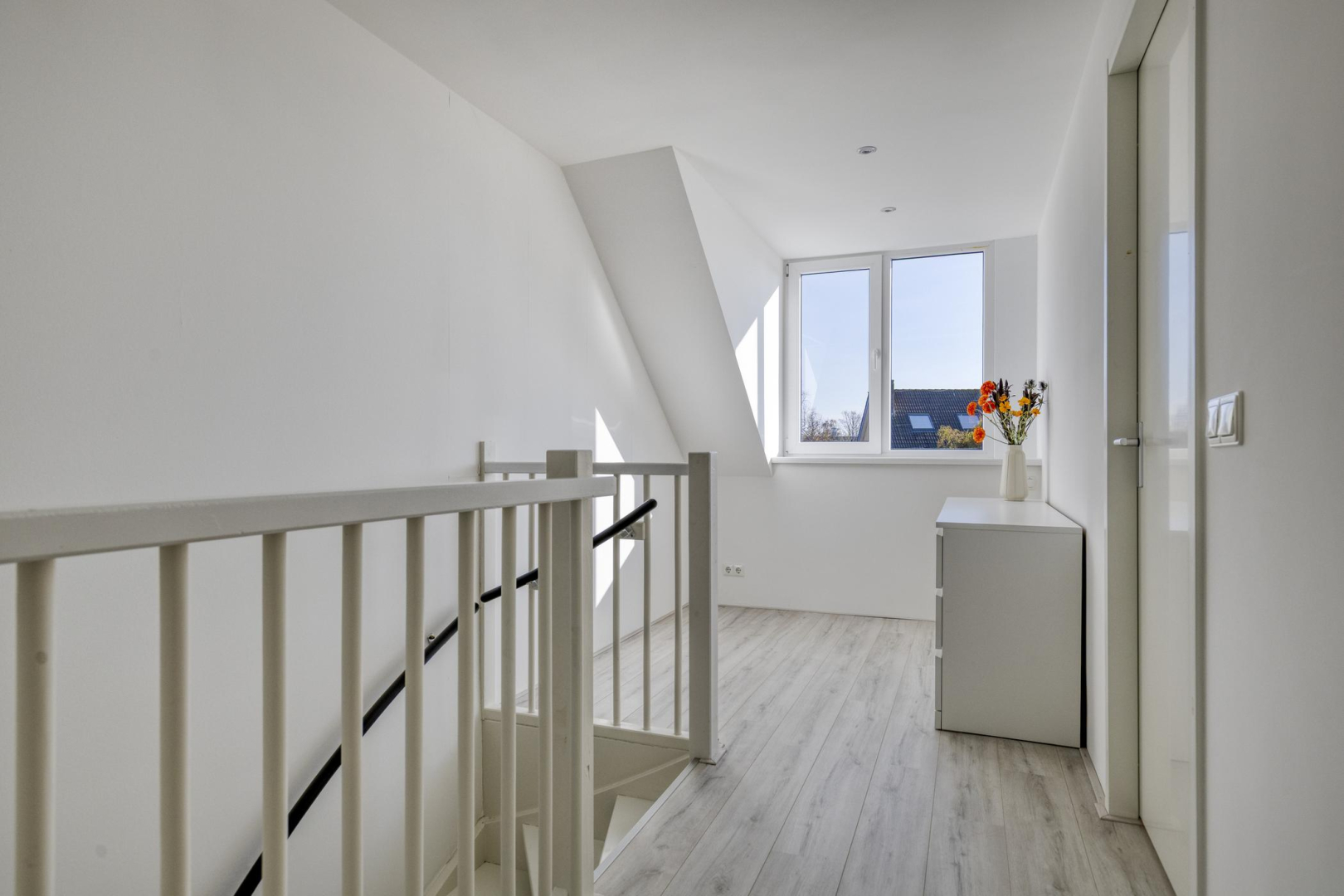 De vaste trap leidt naar de tweede verdieping die in 2023 volledig is gerenoveerd en gestuct. Op deze verdieping bevinden zich nog twee verrassend ruime slaapkamers, een ruime overloop en een aparte ruimte voor de wasapparatuur en de cv-installatie. Alle ruimtes op deze verdieping zijn voorzien van een dakkapel, waardoor er veel lichtinval is en er extra leefruimte ontstaat. De dakkapel aan de achterzijde is voorzien van elektrische rolluiken. Vanaf de overloop is de bergzolder (vliering) bereikbaar via een Vlizotrap.