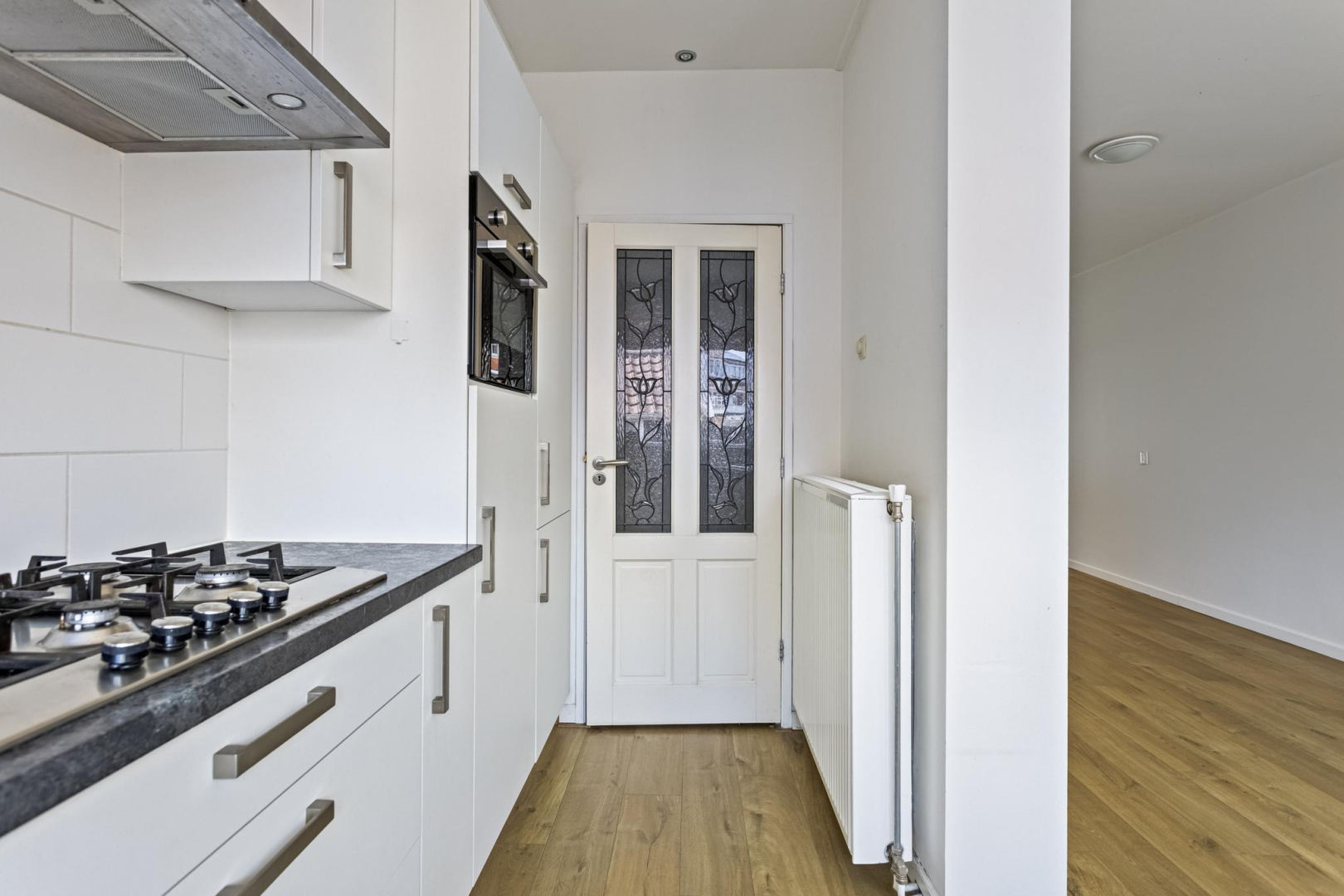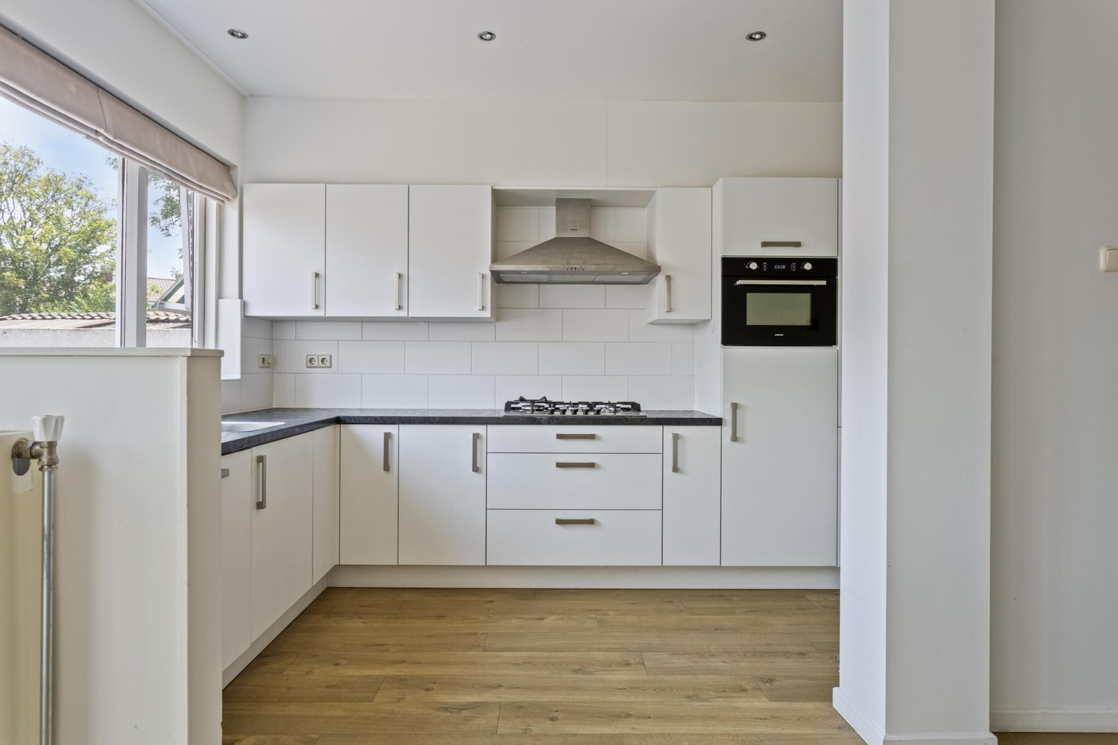 Entree, hal met meterkast en trap naar boven. Via de hal kom je binnen in de lichte en sfeervolle woon-/eetkamer, voorzien van een handige trap-/bergkast. De moderne open keuken in L-opstelling is uitgerust met een 5-pits gaskookplaat, rvs afzuigkap, oven, koelkast, vriezer en vaatwasser. Aansluitend bevindt zich de bijkeuken met extra opbergruimte, plek voor de wasmachine en droger, en toegang tot het toilet. Vanuit de keuken stap je zo de zonnige achtertuin in, waar een zonnescherm zorgt voor een heerlijk plekje in de schaduw. Aan de voorzijde is eveneens een zonnescherm aanwezig.