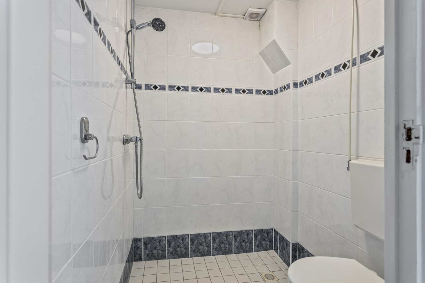 Vanaf de overloop zijn drie slaapkamers en de badkamer bereikbaar. De slaapkamer aan de voorzijde is ruim opgezet en voorzien van een wastafel. Aan de achterzijde liggen nog twee prima slaapkamers, waarvan één met ingebouwde kast en een vlizotrap naar de ruime zolderverdieping, ideaal voor extra opbergruimte. Op zolder staat ook de cv-installatie. De badkamer is voorzien van licht tegelwerk en bestaat uit een douche en toilet.