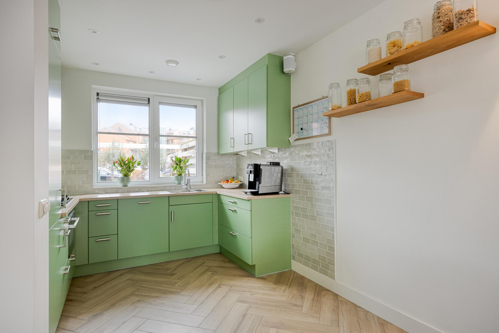 Gehele woning voorzien van slimme inbouwkasten en bureaus.