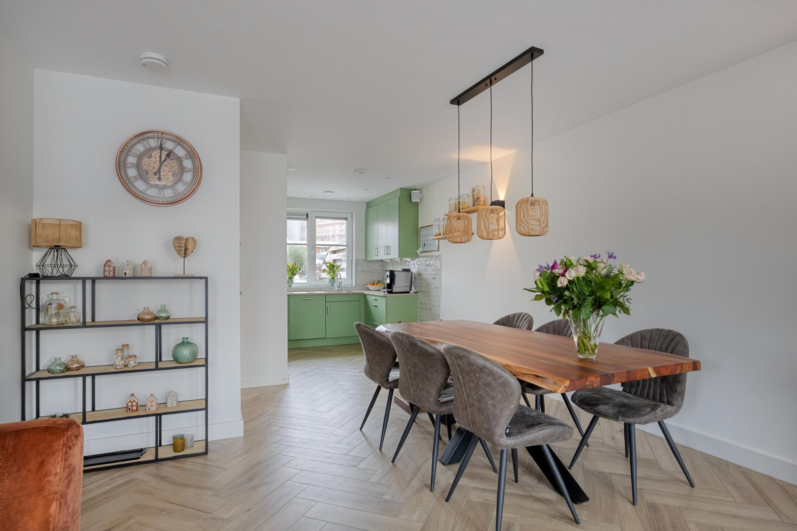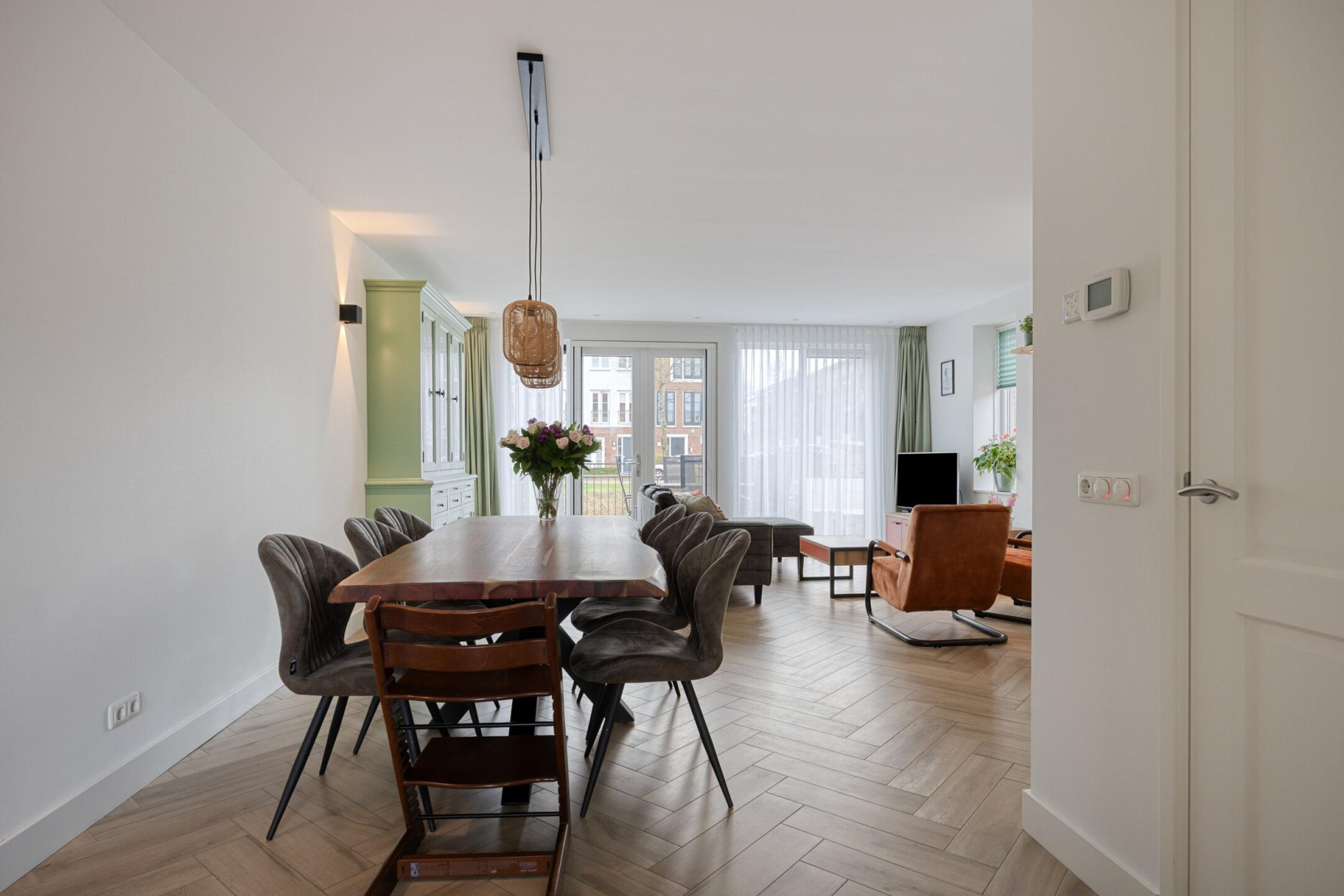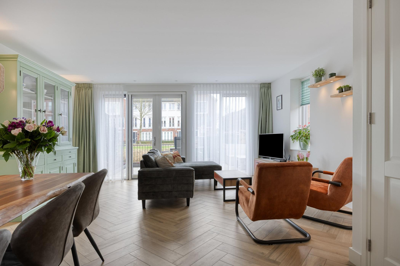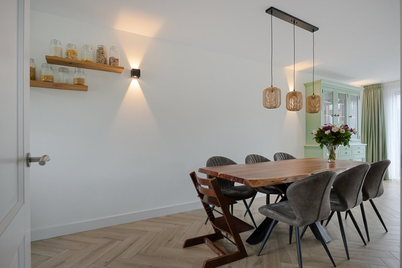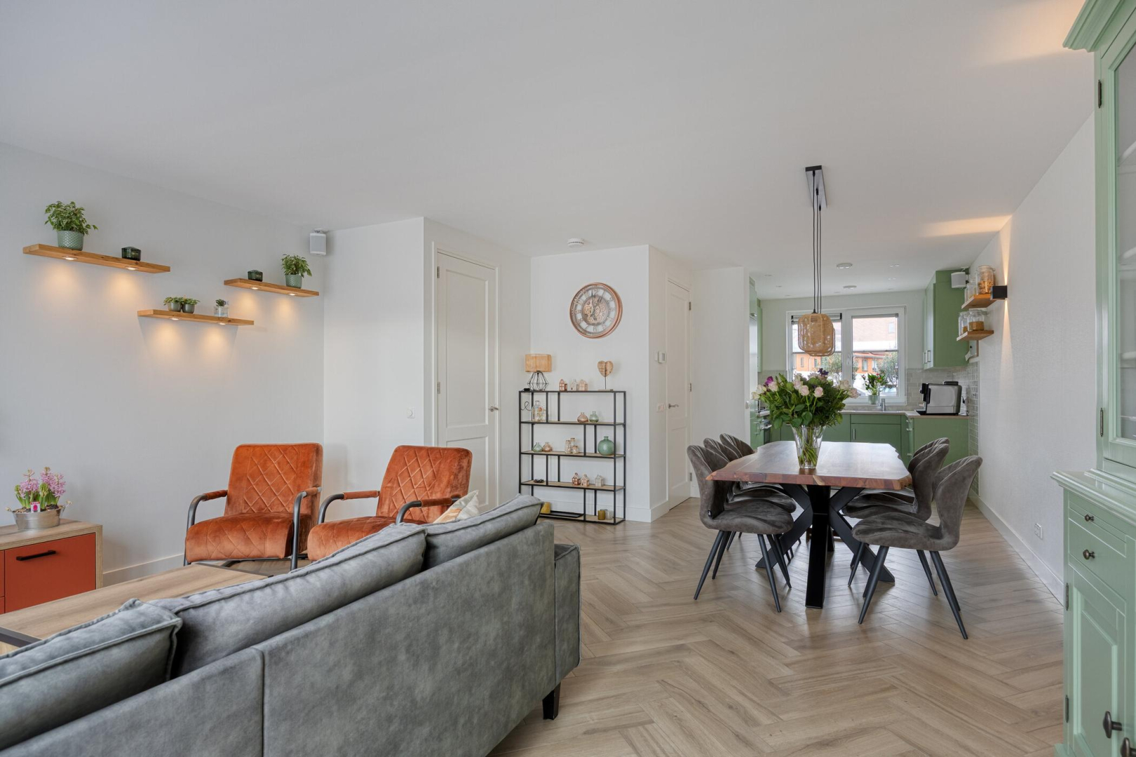 Via de gezellige voortuin met indrukwekkende buitenkeuken, groene borders, twee bergingen met elektra én parkeerplaats op eigen terrein betreed je de woning. In de hal vind je de meterkast en een praktische garderobekast en toegang tot het toilet met moderne wandcloset met fonteintje. De woonkamer is heerlijk licht dankzij de vele raampartijen en is afgewerkt met een prachtige keramische houtlook tegelvloer met vloerverwarming, hoge plinten en stijlvolle paneeldeuren. De U-vormige keuken is voorzien van een 5-pits gasfornuis (gas op glas) met wok brander, afzuigkap, oven met magnetronfunctie, koel-vriescombinatie, vaatwasser, aparte boiler en een keukenraam met jaloezieën in dubbel glas, zogenaamde InBlindz. Via de openslaande deuren bereik je het extra ruime, volledig betegelde terras met uitzicht over een waterpartij, gelegen op het zuidwesten. Het zonnescherm geeft schaduw als het heel warm is!
