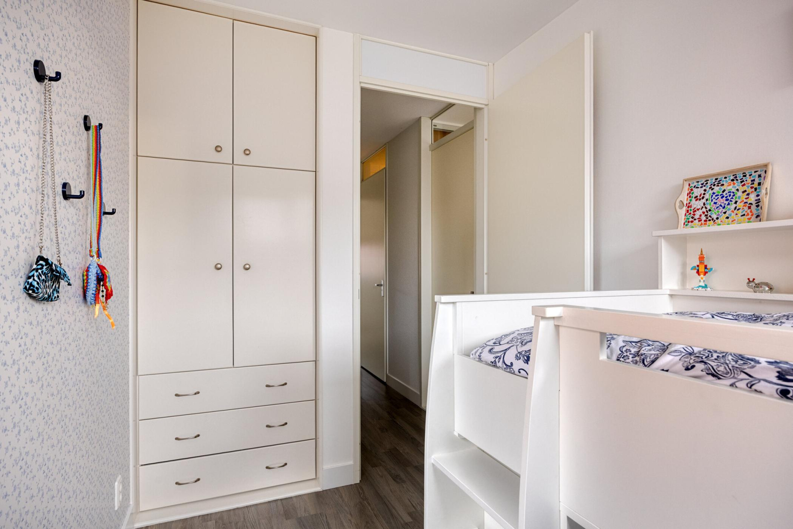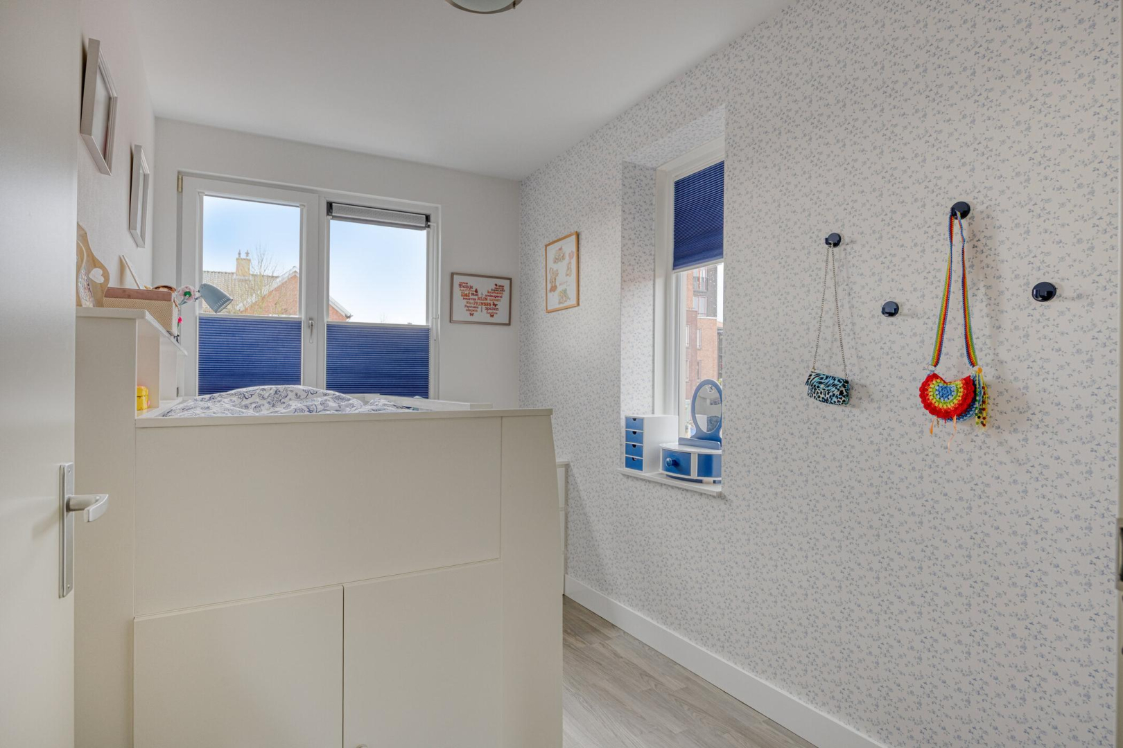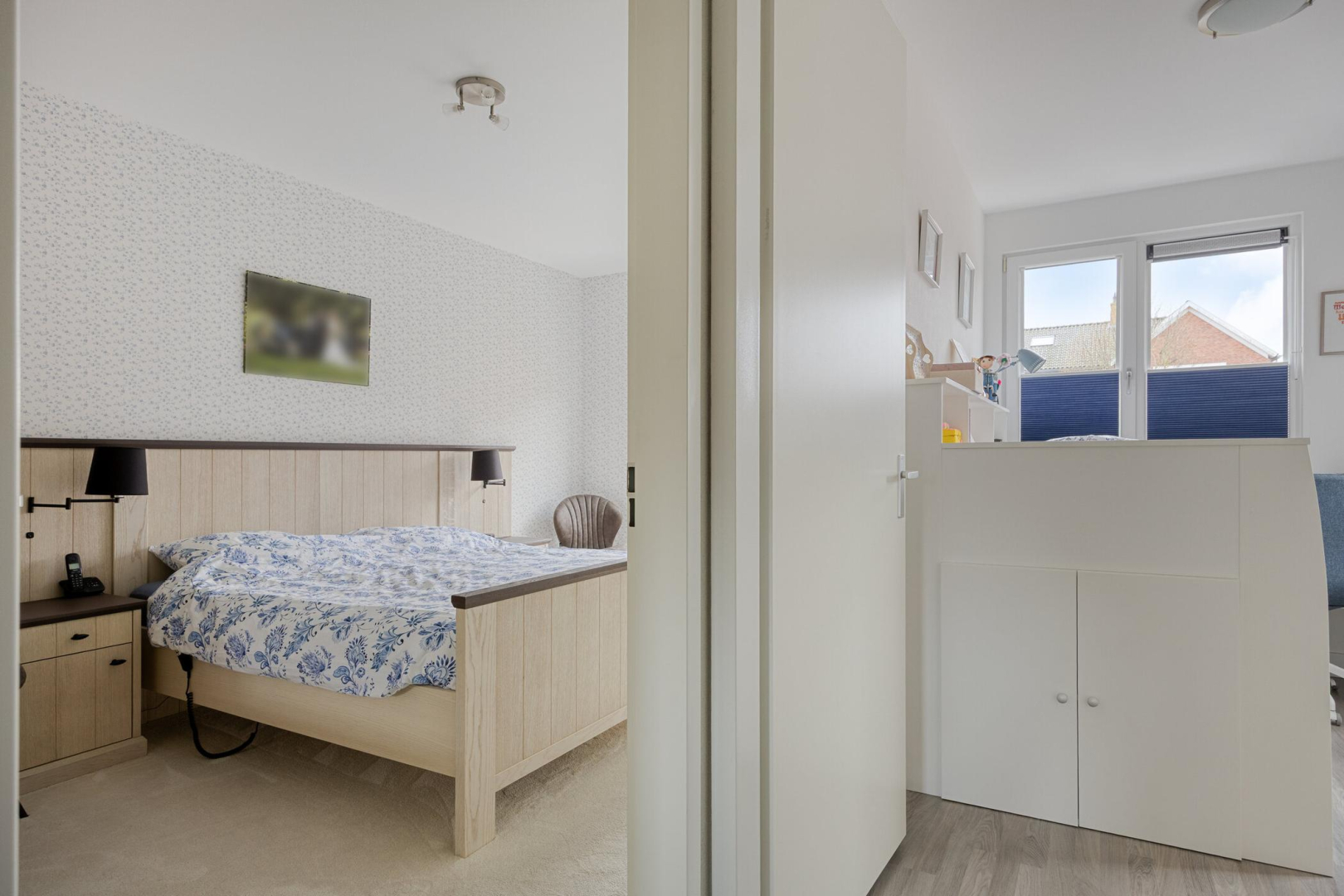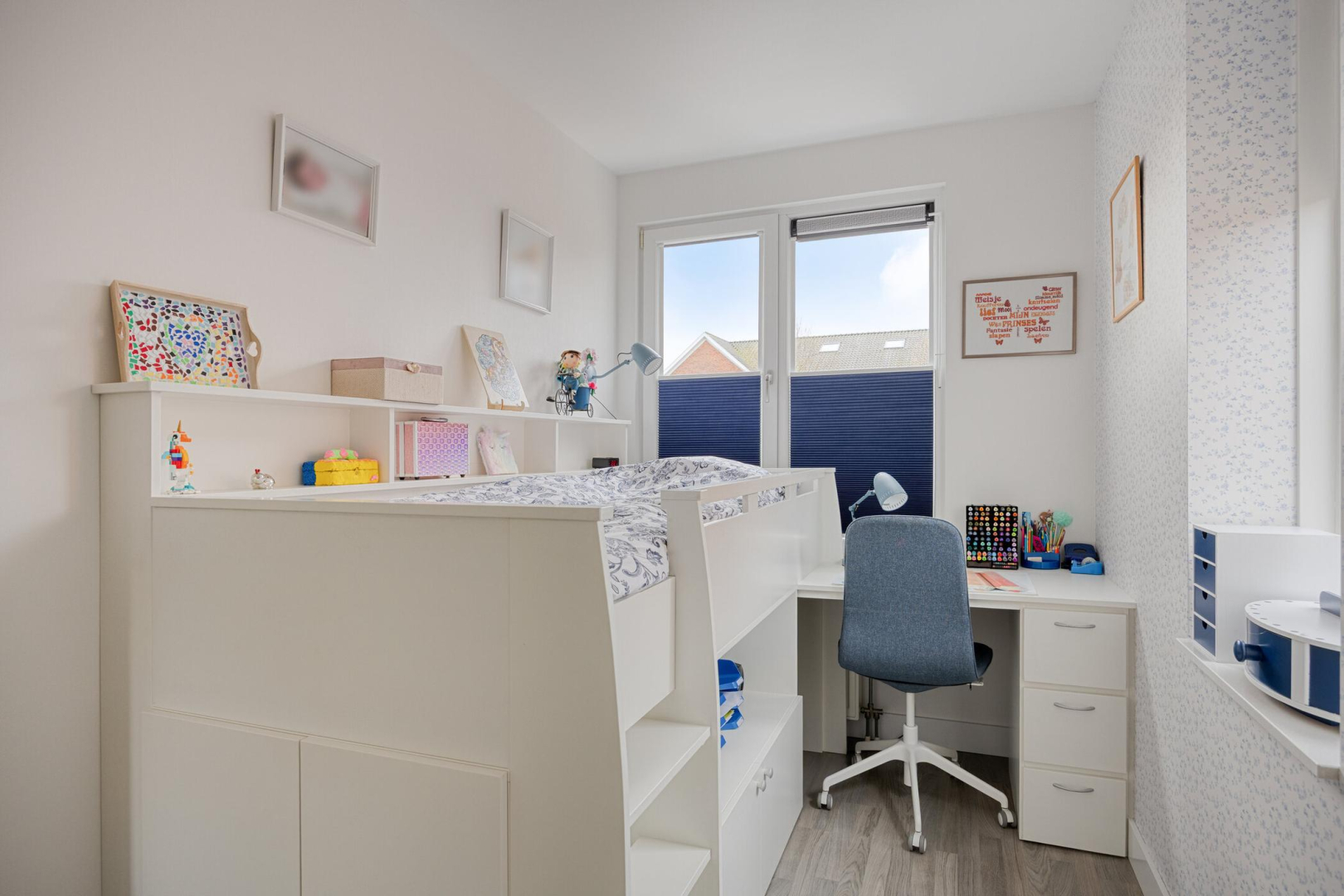 Op de eerste verdieping bevinden zich drie comfortabele slaapkamers, allemaal voorzien van inbouwkasten en op maat gemaakte bureaus en bed. Werkelijk overal is nagedacht over maximaal gebruik van de ruimte en opberggemak. De badkamer is volledig v.v. licht tegelwerk en is uitgerust met een douchecabine, wandcloset, dubbele wastafel met vaste kast en vloerverwarming.