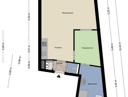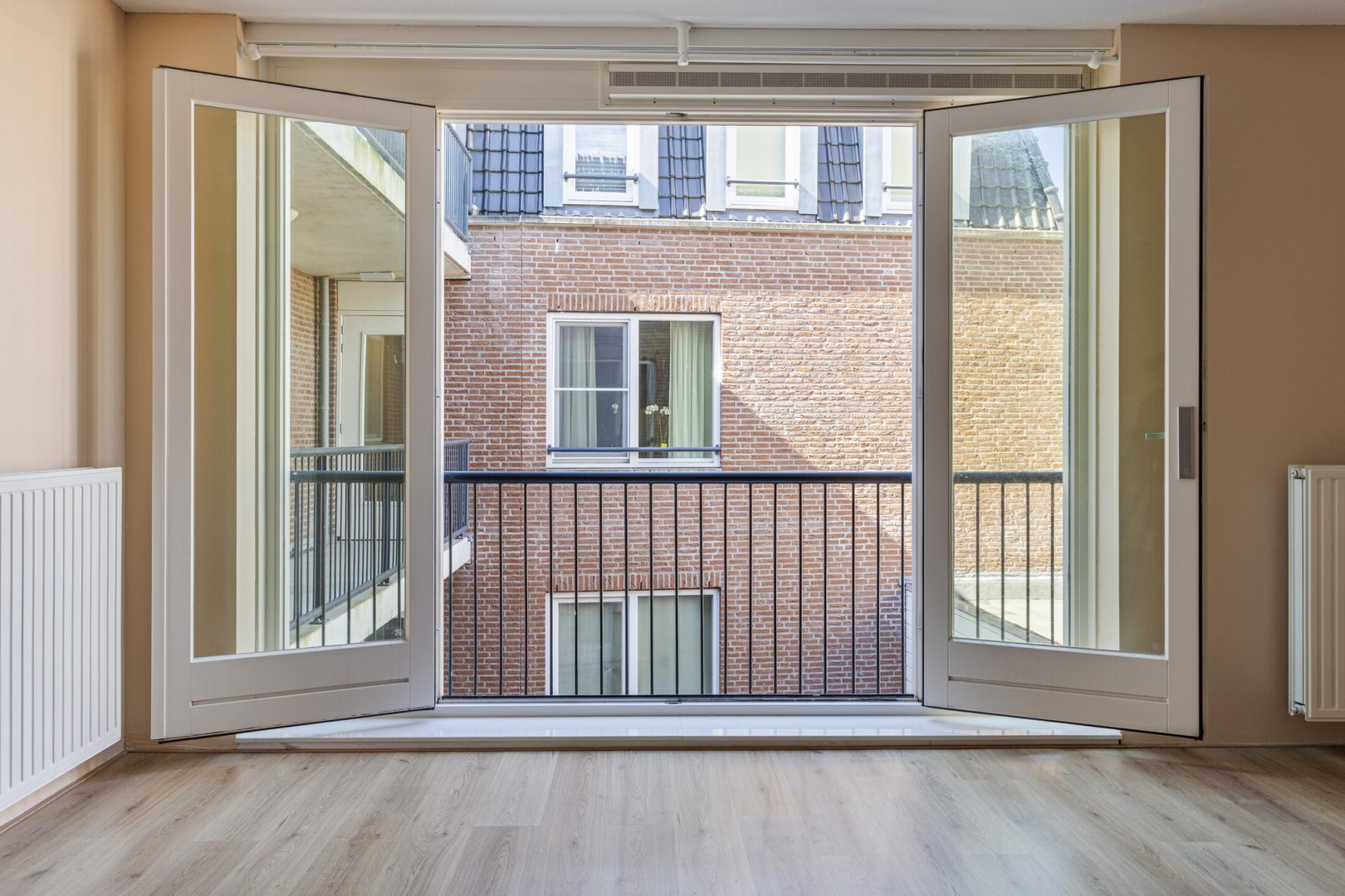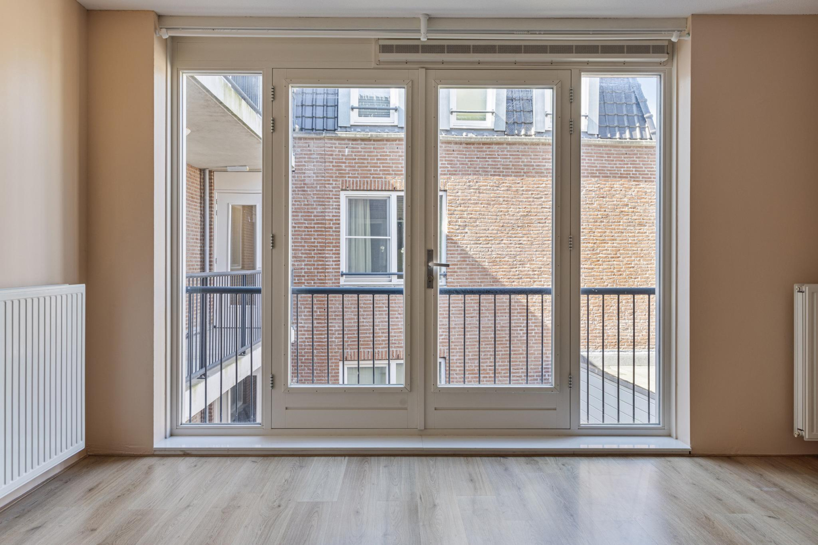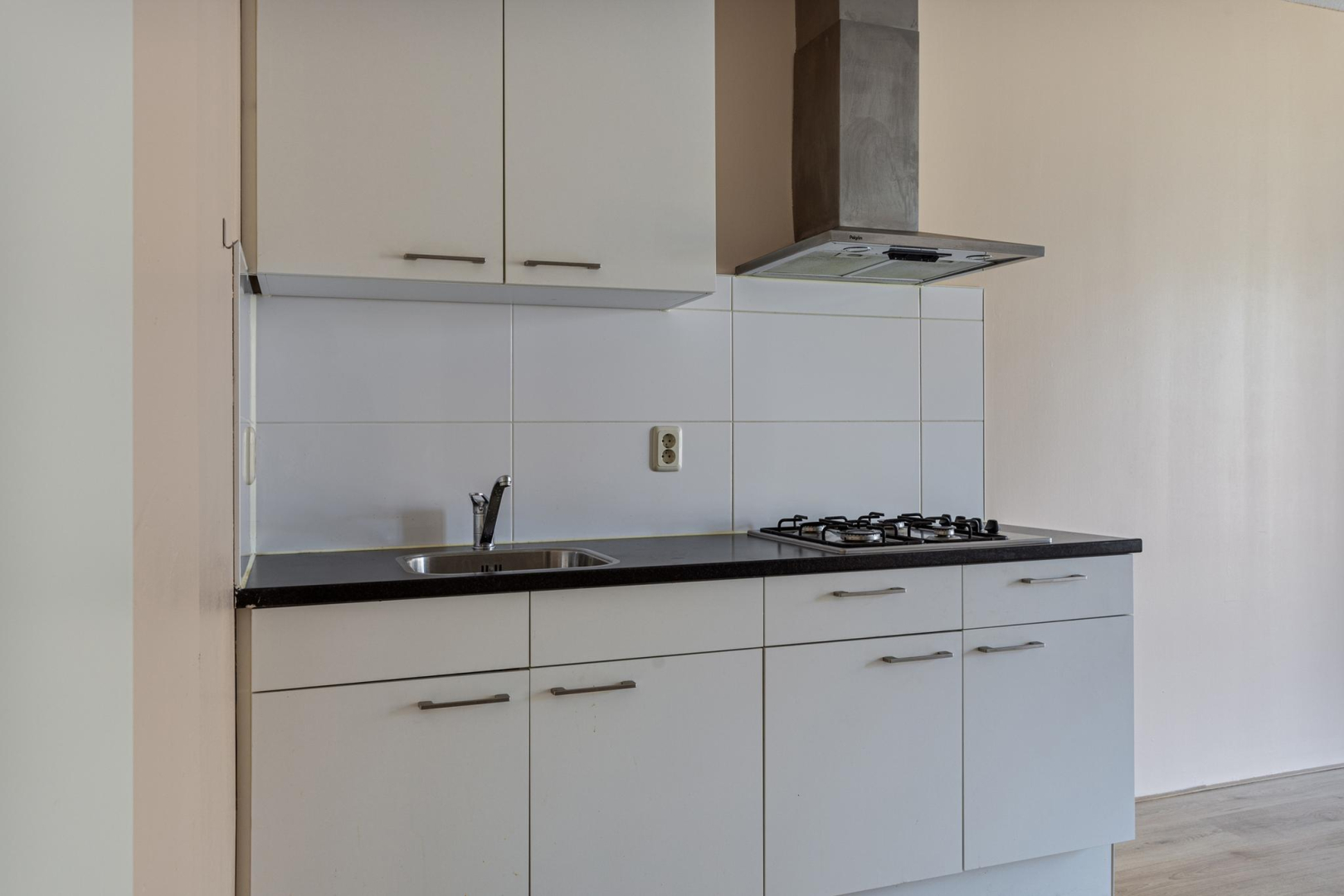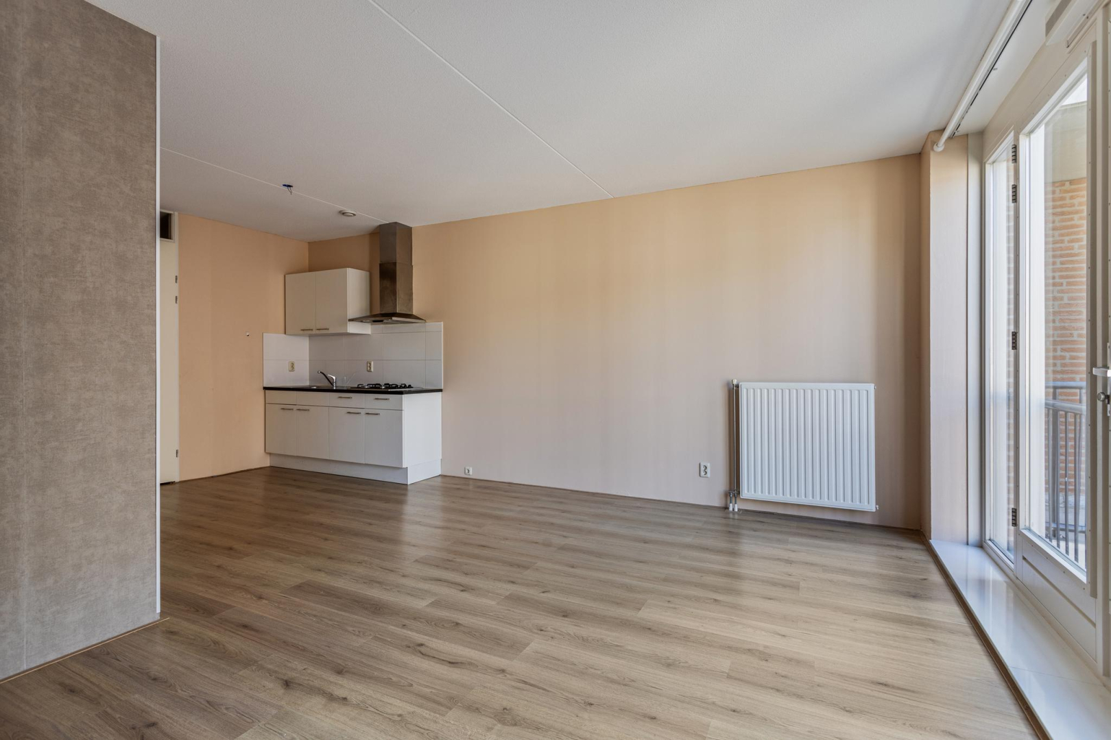 Entree, wandcloset met fonteintje, hal met bergkast waar zich de opstelplaats van de CV combiketel bevindt. Open keuken met 4-pits gaskookplaat, een RVS afzuigkap en kastruimte. De ruime woonkamer beschikt over een zit- en eetgedeelte en heeft een dubbele deur naar het Frans balkon, dat uitkijkt op een rustige binnenplaats. Via de slaapruimte heeft u toegang tot de ruime badkamer die voorzien is van douchecabine, wastafelmeubel en aansluitingen voor wasmachine en droger. De woonkamer, keuken en het slaapgedeelte zijn voorzien van een laminaatvloer.