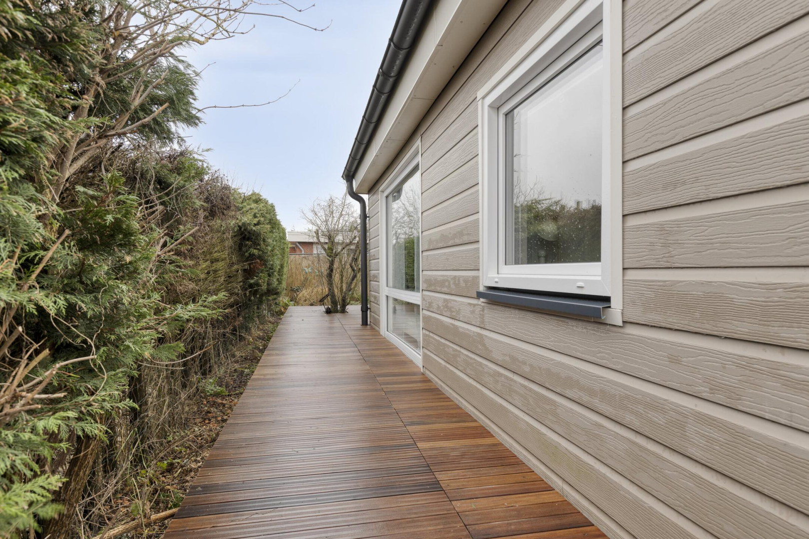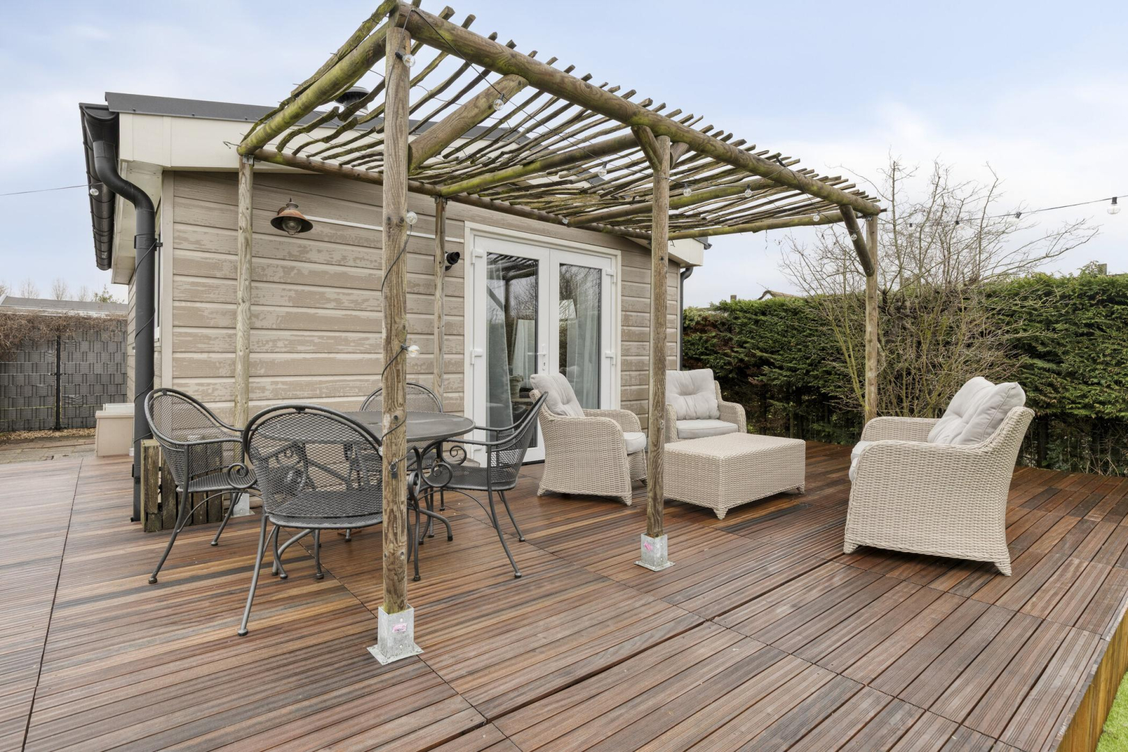 De tuin is ruim, verzorgd aangelegd en vormt een belangrijk pluspunt van deze bungalow. Rondom de bungalow ligt een brede houten vlonder die overgaat in een ruim terras, waardoor u op elk moment van de dag kunt genieten van de zon of juist een schaduwrijke plek kunt opzoeken. De buitenruimte nodigt uit tot lange zomeravonden en ontspannen momenten in de frisse zeelucht. Verder beschikt het perceel over een gazon, een houten berging, ideaal voor fietsen en strandspullen. De tuin is grotendeels omsloten door groen, wat zorgt voor een beschutte ligging en een hoge mate van privacy. Hierdoor kunt u in alle rust genieten. Op de parkeerplaats van het park heeft u een eigen parkeerplaats.