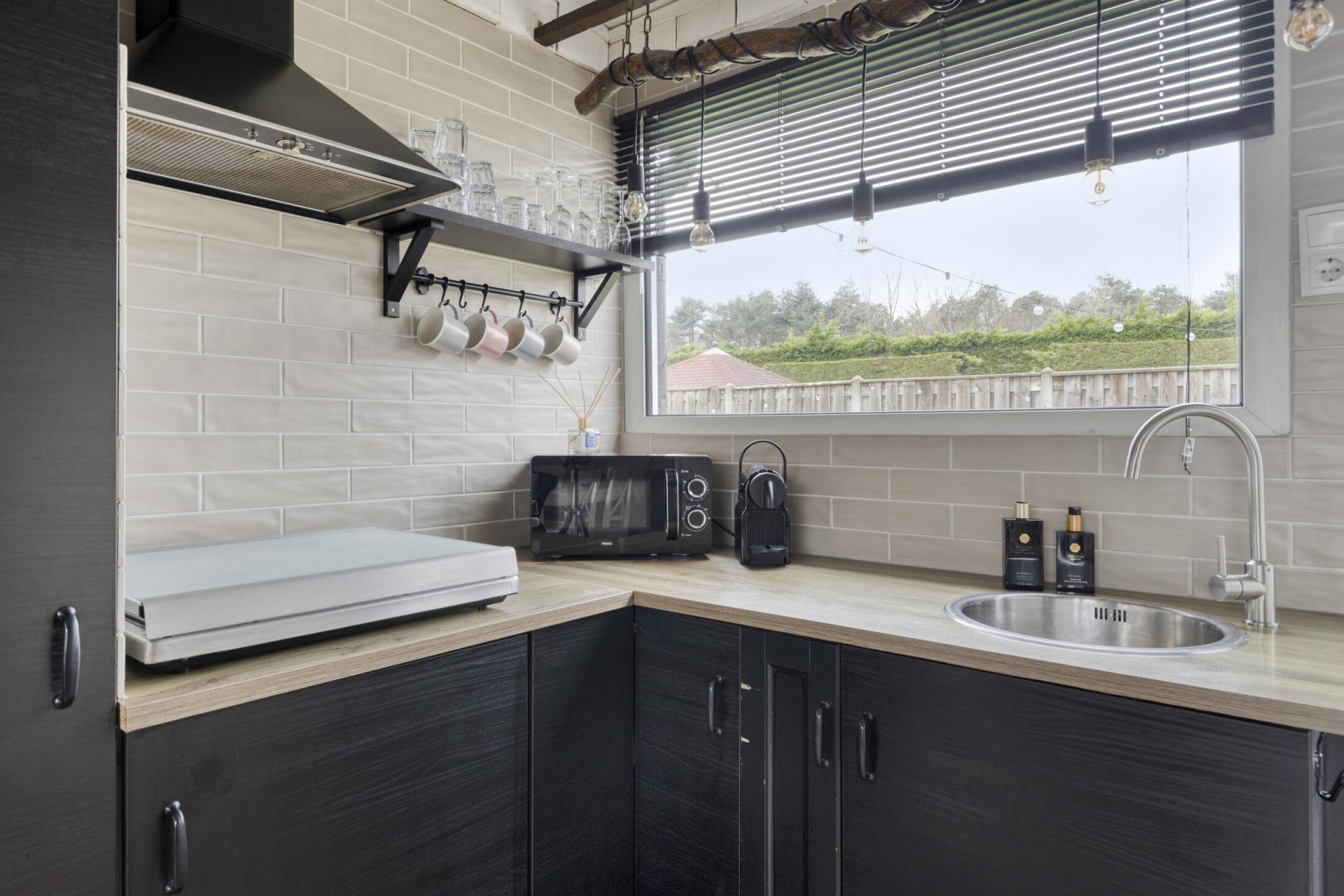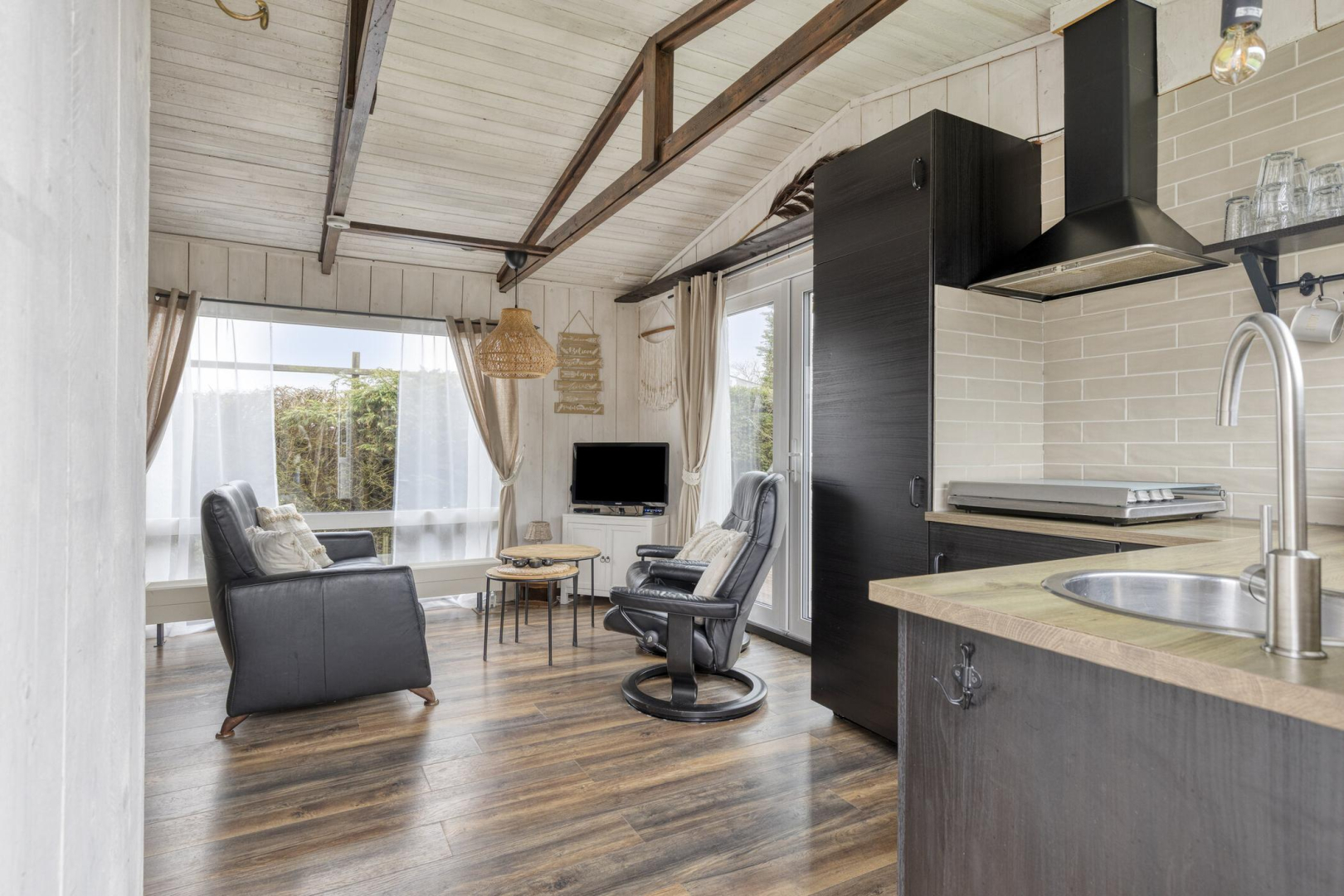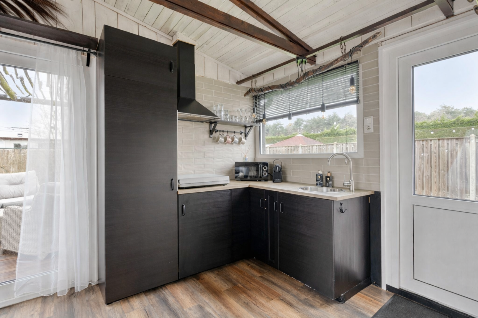 Bij binnenkomst stapt u direct de aangename woonkamer met open keuken binnen, een lichte en uitnodigende leefruimte die direct een gevoel van ontspanning oproept. Dankzij de grote raampartijen profiteert de ruimte van een prettige natuurlijke lichtinval, wat bijdraagt aan een open en ruimtelijke sfeer. De openslaande deuren naar het terras vormen een mooie verbinding tussen binnen en buiten en zorgen ervoor dat u bij mooi weer het buitenleven moeiteloos bij de woonruimte betrekt. Het terras fungeert als een verlengstuk van de woonkamer en nodigt uit tot ontspannen momenten in de buitenlucht. Vanuit de woonkamer zijn zowel de twee slaapkamers als de badkamer bereikbaar. De slaapkamers zijn functioneel ingericht en bieden voldoende ruimte voor comfortabele slaapplaatsen. De badkamer is netjes afgewerkt en voorzien van een toilet, douche en wastafel, waardoor deze volledig is uitgerust voor dagelijks gebruik. De gehele bungalow is afgewerkt met een laminaatvloer. De indeling van de woning is logisch en efficiënt, waardoor iedere vierkante meter optimaal wordt benut. Daarnaast is de bungalow voorzien van een Google Nest-thermostaat: een slimme thermostaat die de verwarming automatisch aanpast op basis van gebruik en aanwezigheid. Dit verhoogt niet alleen het wooncomfort, maar is ook bijzonder praktisch en energie-efficiënt, met name bij verhuurdoeleinden.