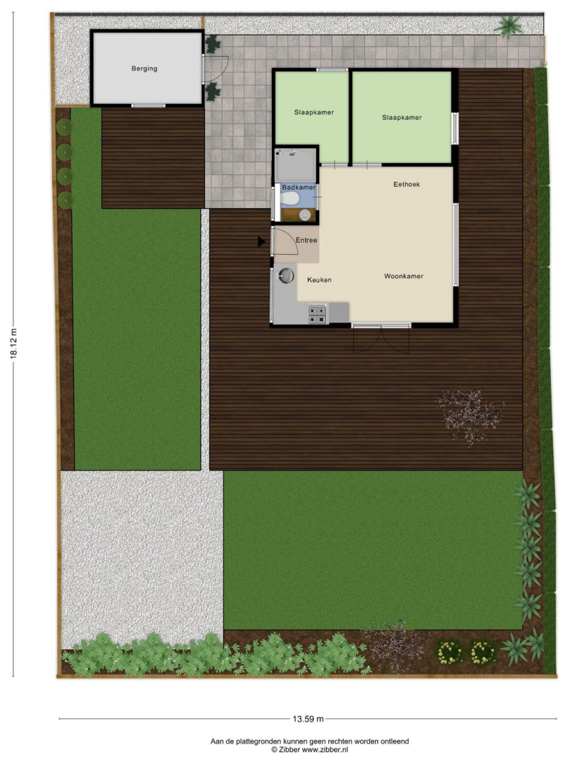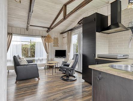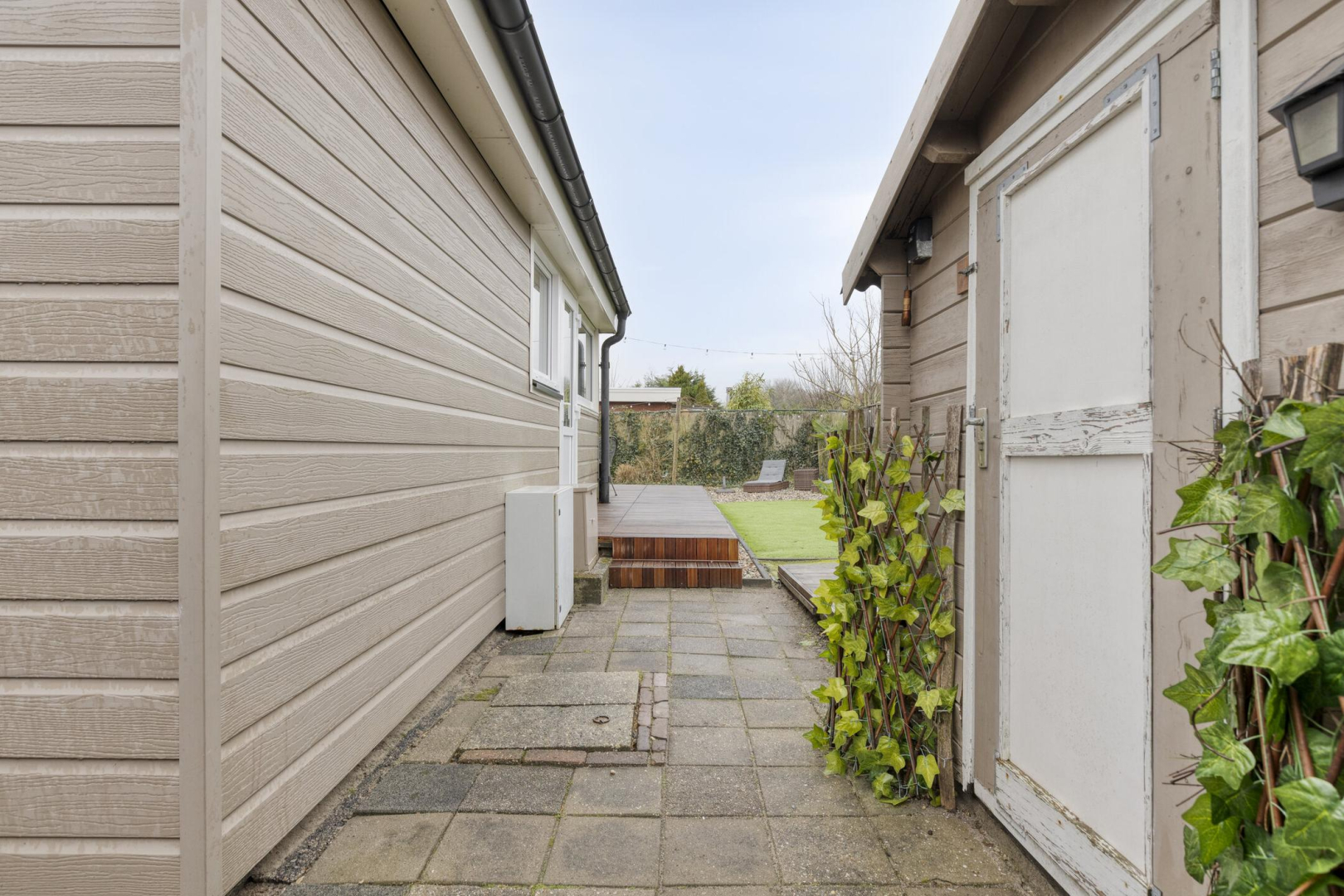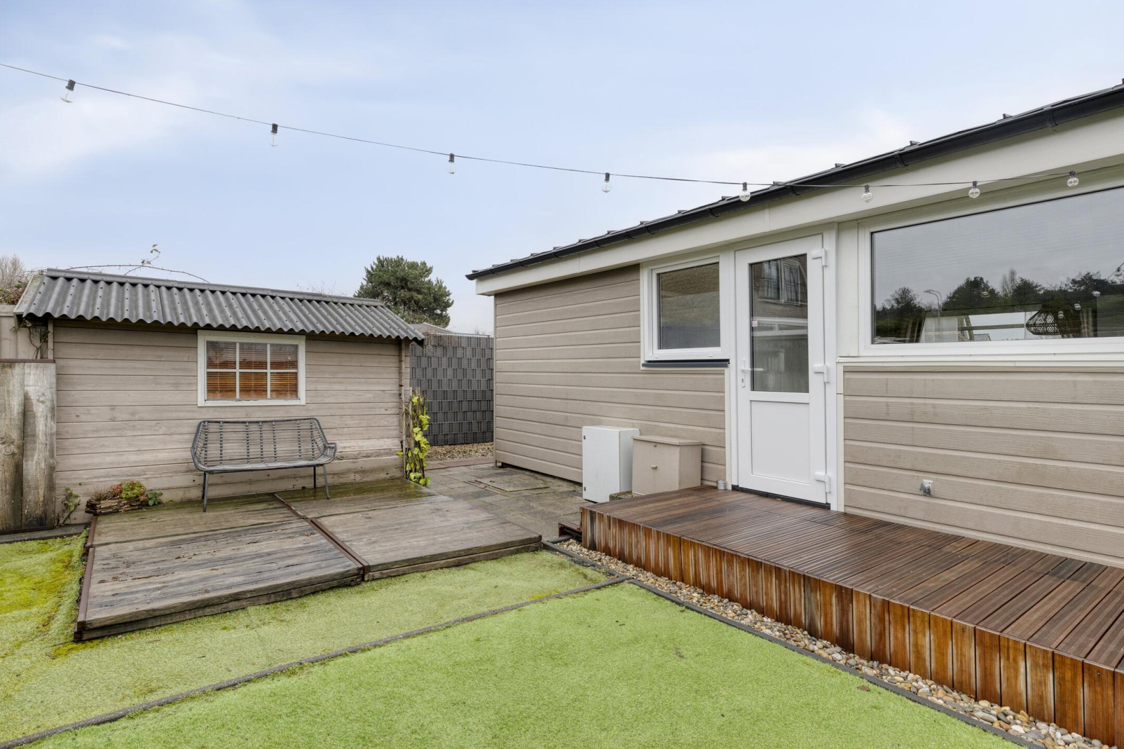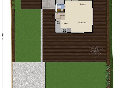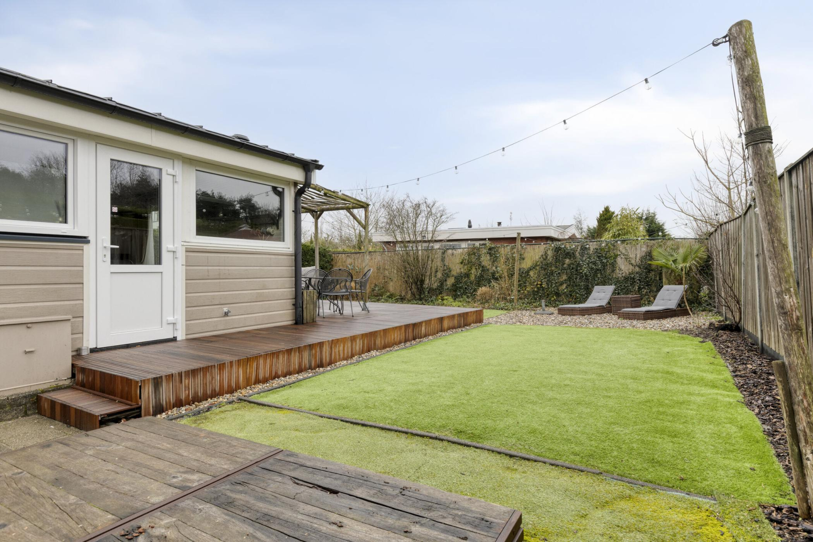 Bij binnenkomst stapt u direct de aangename woonkamer met open keuken binnen, een lichte en uitnodigende leefruimte die direct een gevoel van ontspanning oproept. Dankzij de grote raampartijen profiteert de ruimte van een prettige natuurlijke lichtinval, wat bijdraagt aan een open en ruimtelijke sfeer. De openslaande deuren naar het terras vormen een mooie verbinding tussen binnen en buiten en zorgen ervoor dat u bij mooi weer het buitenleven moeiteloos bij de woonruimte betrekt. Het terras fungeert als een verlengstuk van de woonkamer en nodigt uit tot ontspannen momenten in de buitenlucht. Vanuit de woonkamer zijn zowel de twee slaapkamers als de badkamer bereikbaar. De slaapkamers zijn functioneel ingericht en bieden voldoende ruimte voor comfortabele slaapplaatsen. De badkamer is netjes afgewerkt en voorzien van een toilet, douche en wastafel, waardoor deze volledig is uitgerust voor dagelijks gebruik. De gehele bungalow is afgewerkt met een laminaatvloer. De indeling van de woning is logisch en efficiënt, waardoor iedere vierkante meter optimaal wordt benut. Daarnaast is de bungalow voorzien van een Google Nest-thermostaat: een slimme thermostaat die de verwarming automatisch aanpast op basis van gebruik en aanwezigheid. Dit verhoogt niet alleen het wooncomfort, maar is ook bijzonder praktisch en energie-efficiënt, met name bij verhuurdoeleinden.