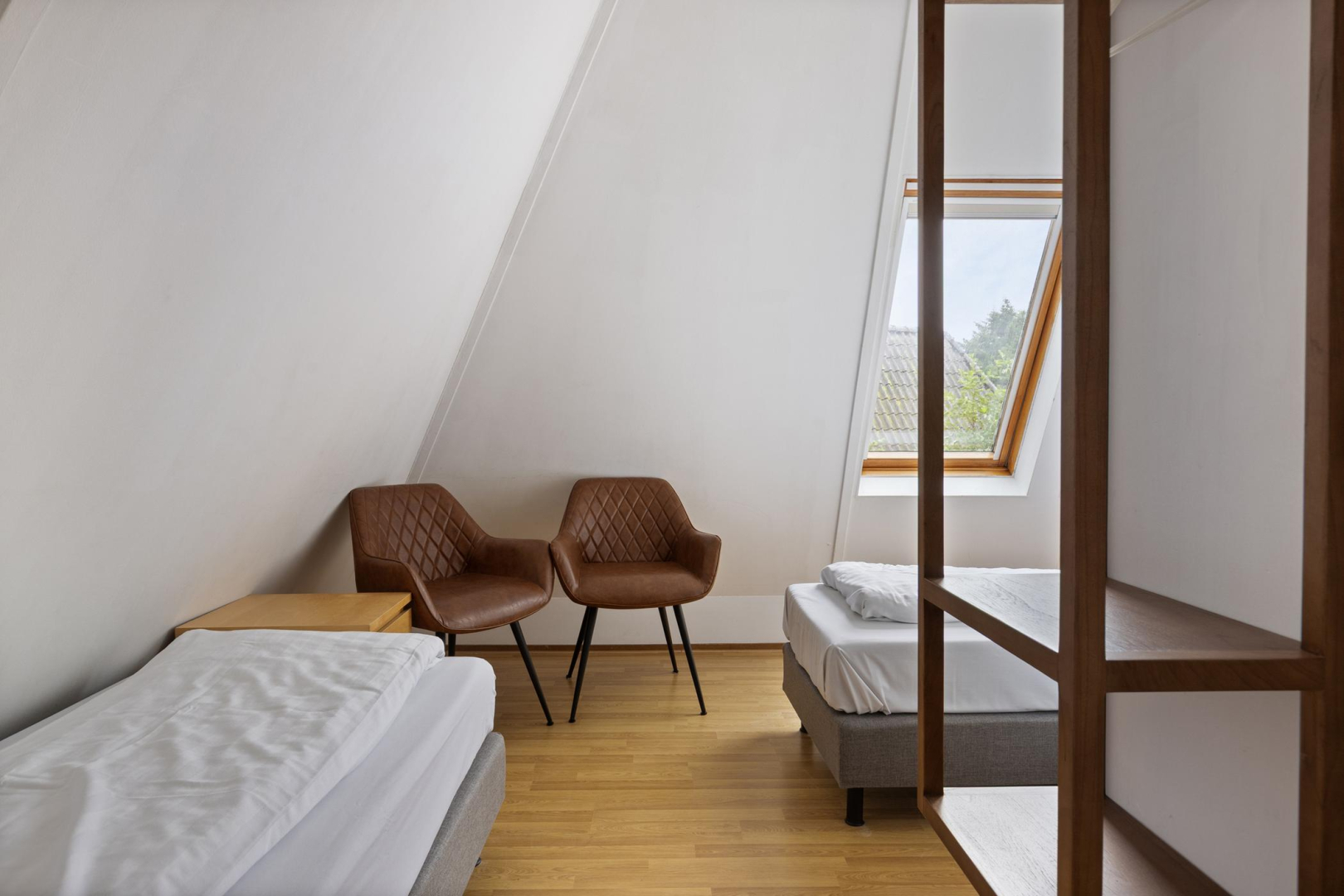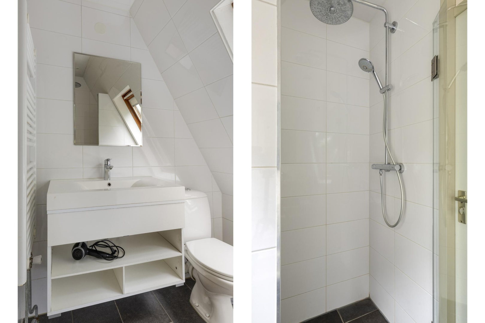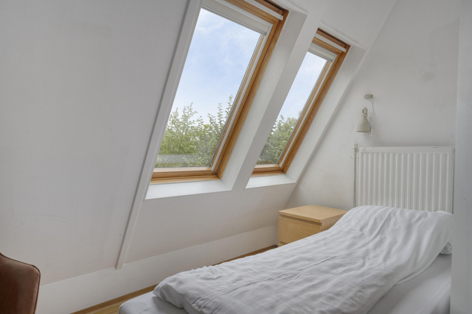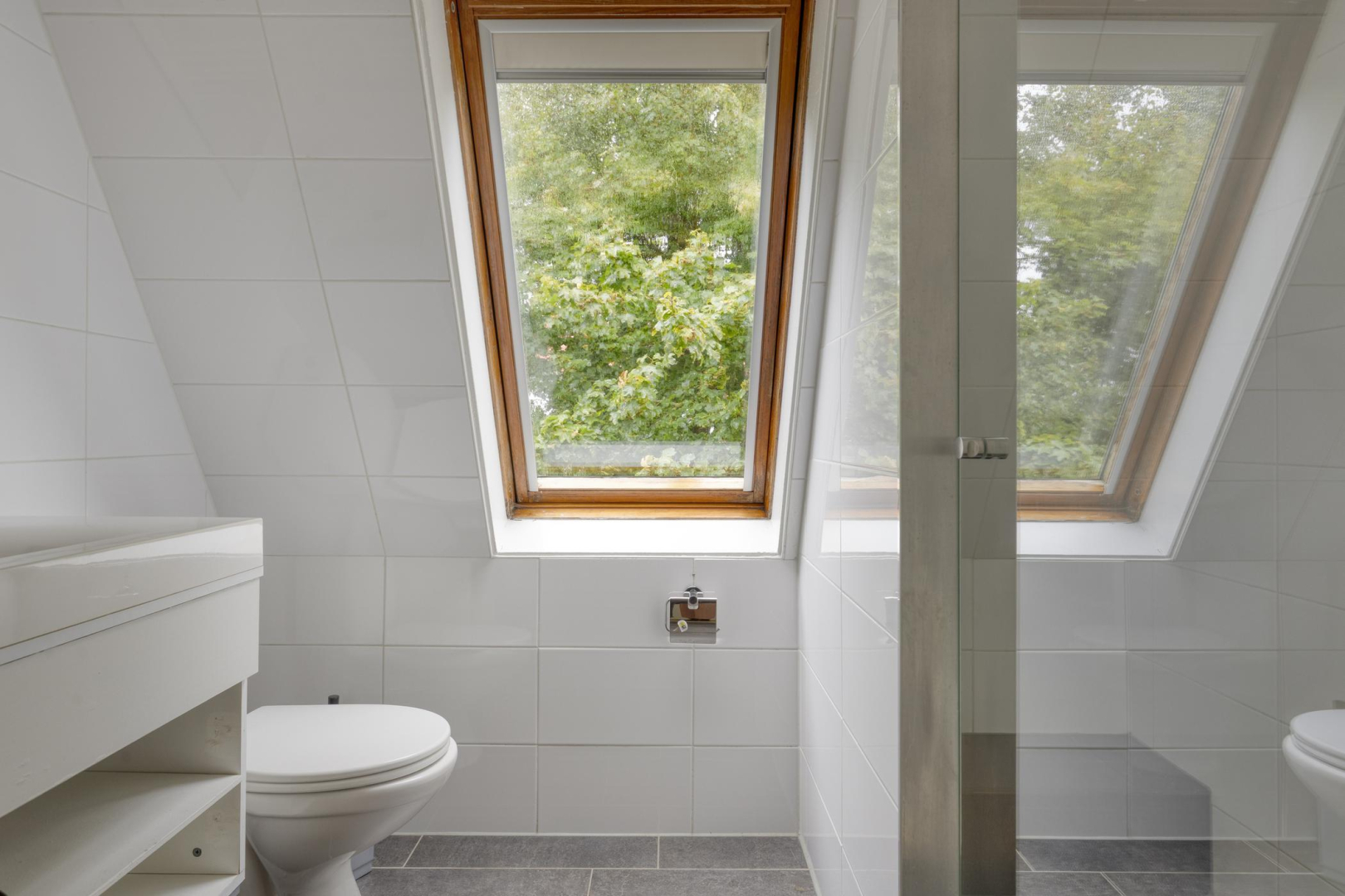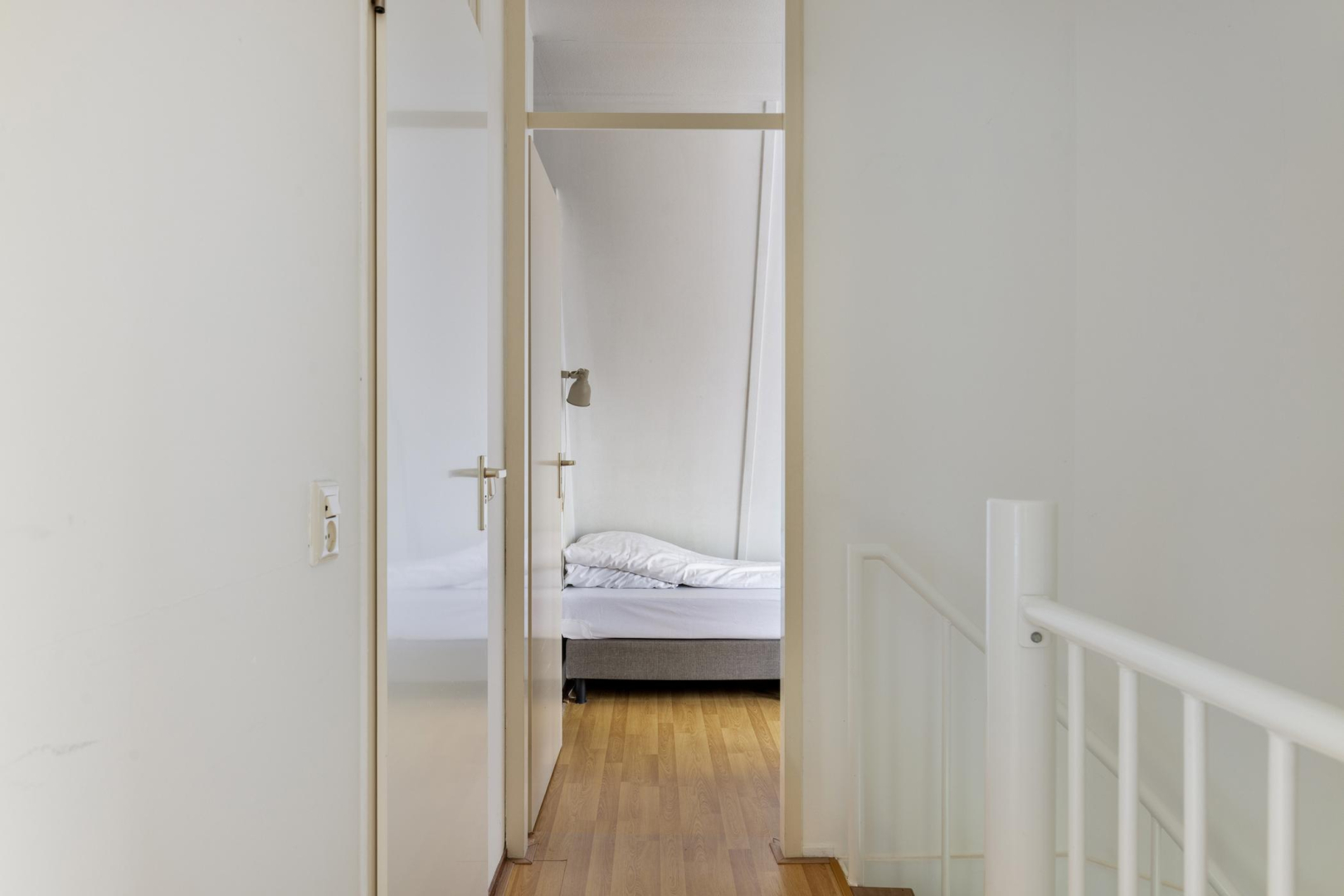 De overloop geeft toegang tot 3 ruime slaapkamers. De slaapkamers zijn alle voorzien van 2 velux dakramen. De modern gerenoveerde badkamer (2021) is voorzien van een wastafelmeubel, toilet, inloopdouche met zowel hand- als regendouche en een handdoekradiator.