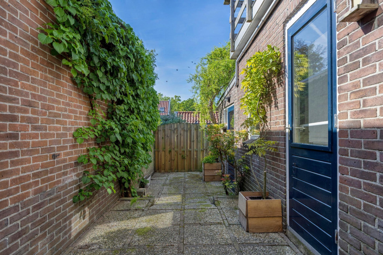 De knusse achtertuin is bereikbaar via de bijkeuken en achterom via de poort. De tuin, voorzien van straatwerk en een mooie groene heg, vraagt weinig onderhoud en is een gezellig plekje met veel privacy en zowel zon als schaduw. Heerlijk op de warmere dagen. Vanuit de tuin is de stenen schuur toegankelijk, welke is voorzien van elektra. Hier hangt tevens de CV-combiketel. Ook de voortuin is een heerlijke plek om te vertoeven. Het dakterras is een fijne aanvulling op de tuin. Hier heb je de hele dag de zon en kun je heerlijk zitten.
