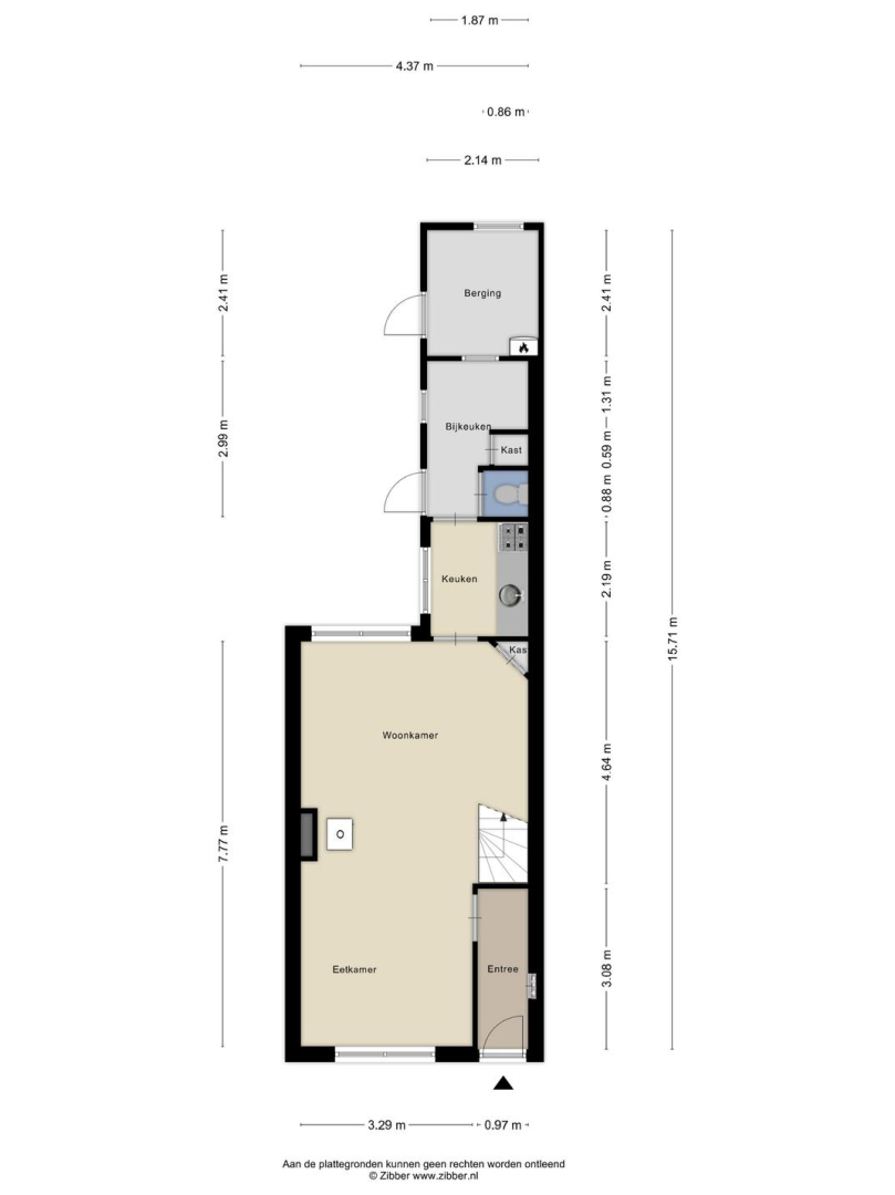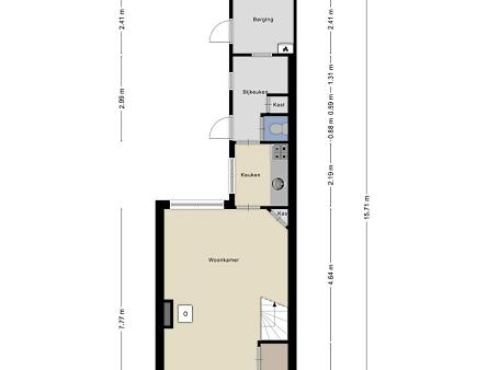 Entree, hal met garderobe en meterkast. Via de hal betreed je de ruime, lichte woonkamer welke is voorzien van glas-in-lood ramen en een gezellig kacheltje met schouw. De woonkamer grenst aan de aangebouwde, half open keuken. De keuken heeft een rechte opstelling in lichte kleurstellingen v.v. inbouwapparatuur zoals een 4-pits gaskookplaat, afzuigkap, oven en voldoende opbergruimte. Aansluitend vind je de bijkeuken met nog meer opbergruimte, ruimte voor een grote koelkast/vriezer en voor de wasmachine/droger. Ook is hier het toilet en een deur naar de achtertuin.