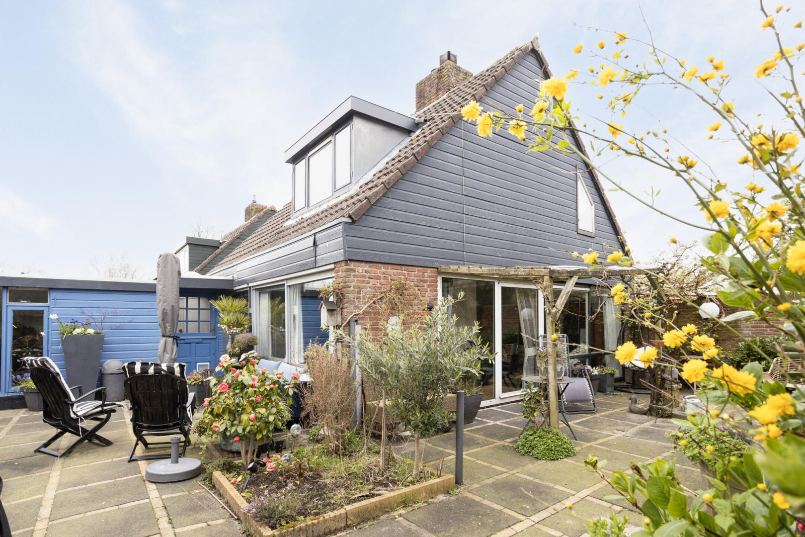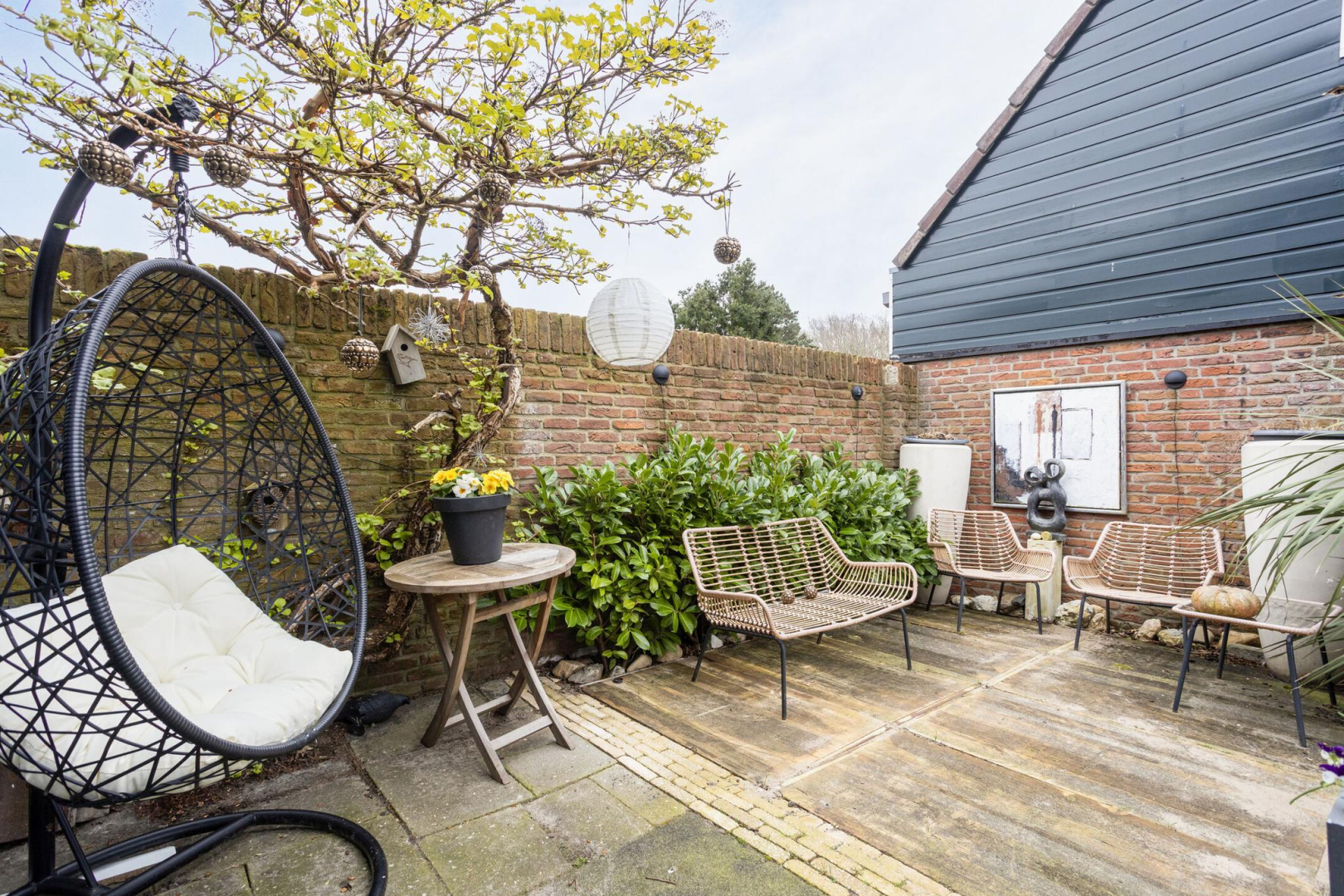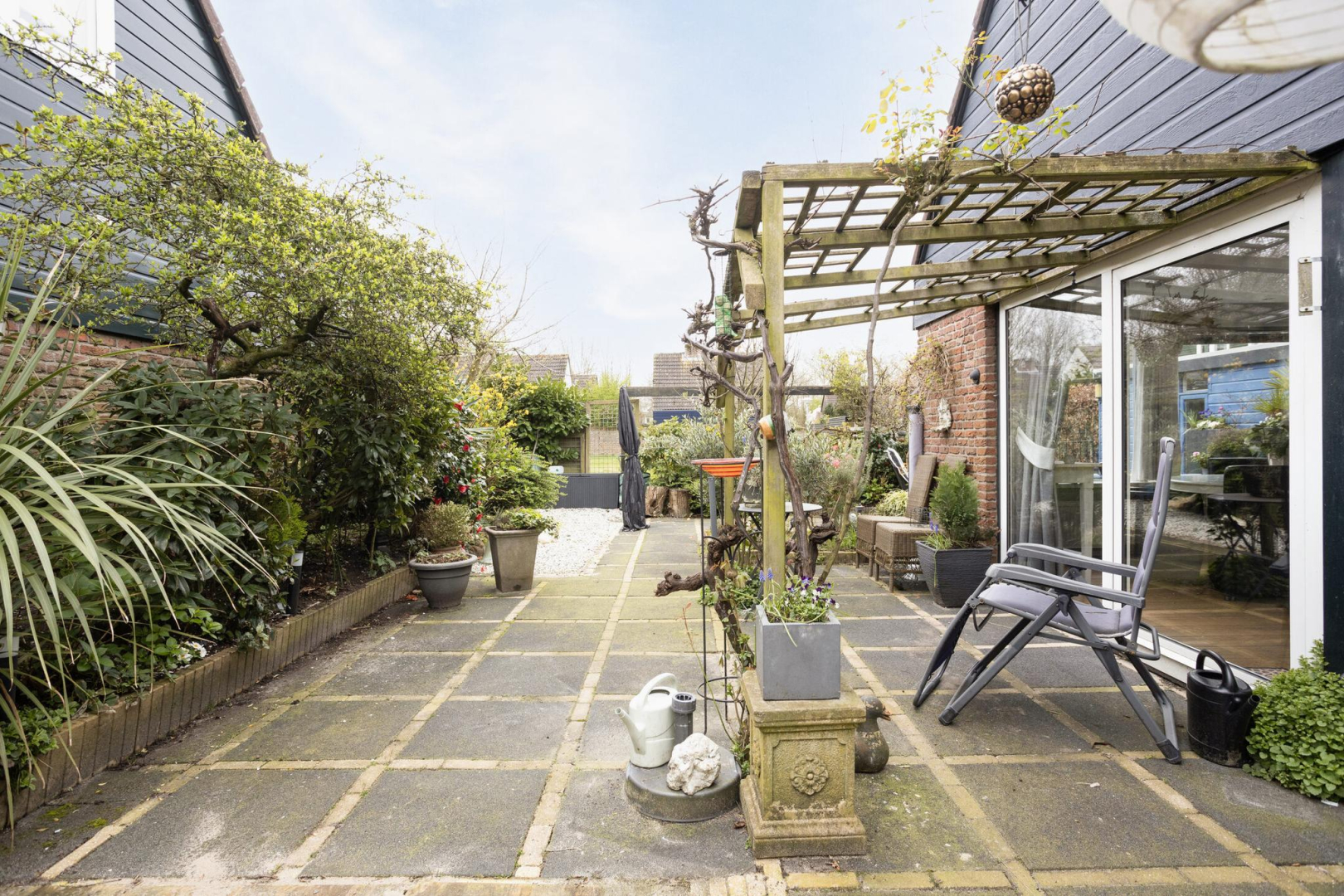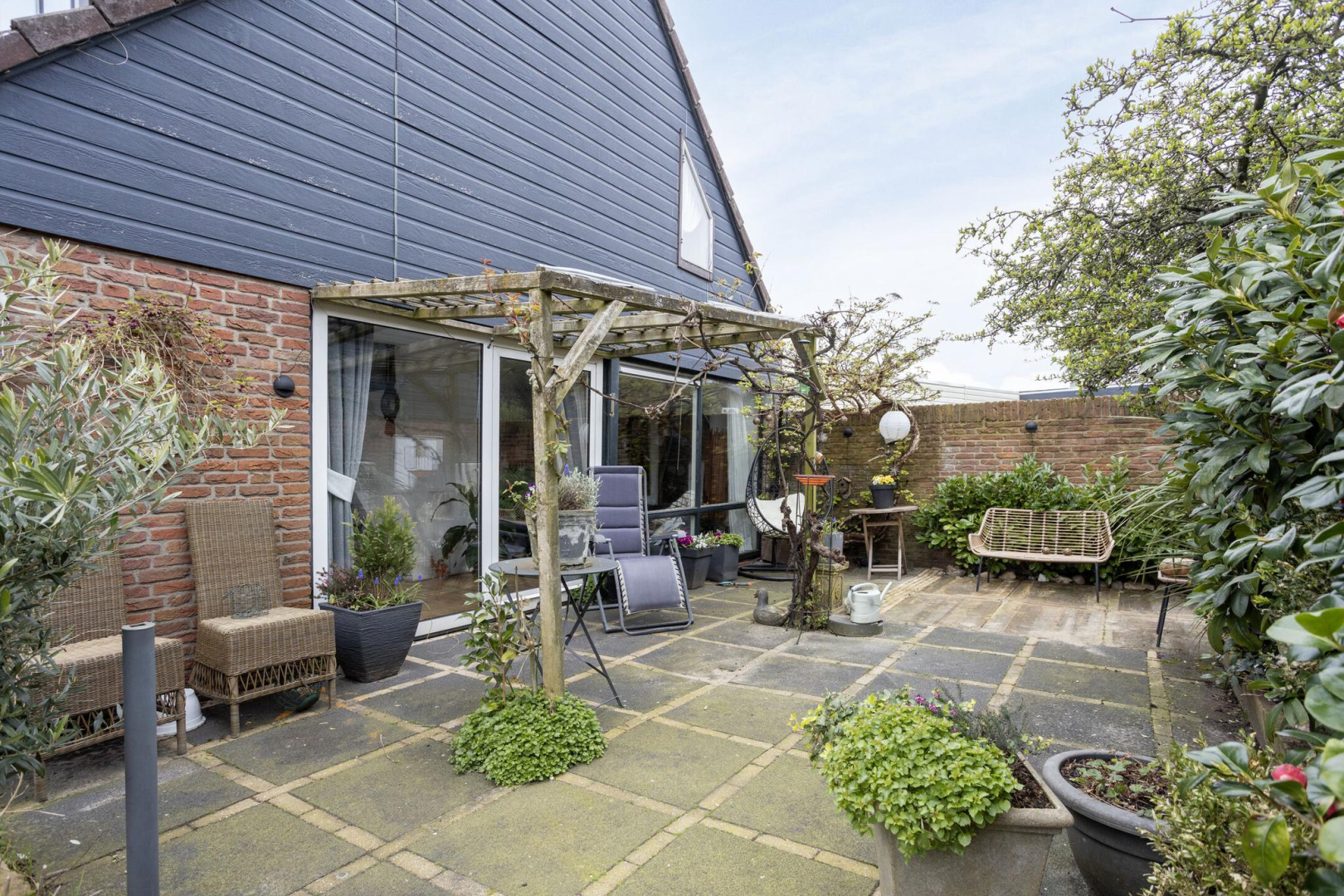 Tuin: De onderhoudsvriendelijke tuin welke op het zonnige zuidwesten is gelegen, heeft meerdere terrassen en groene borders.