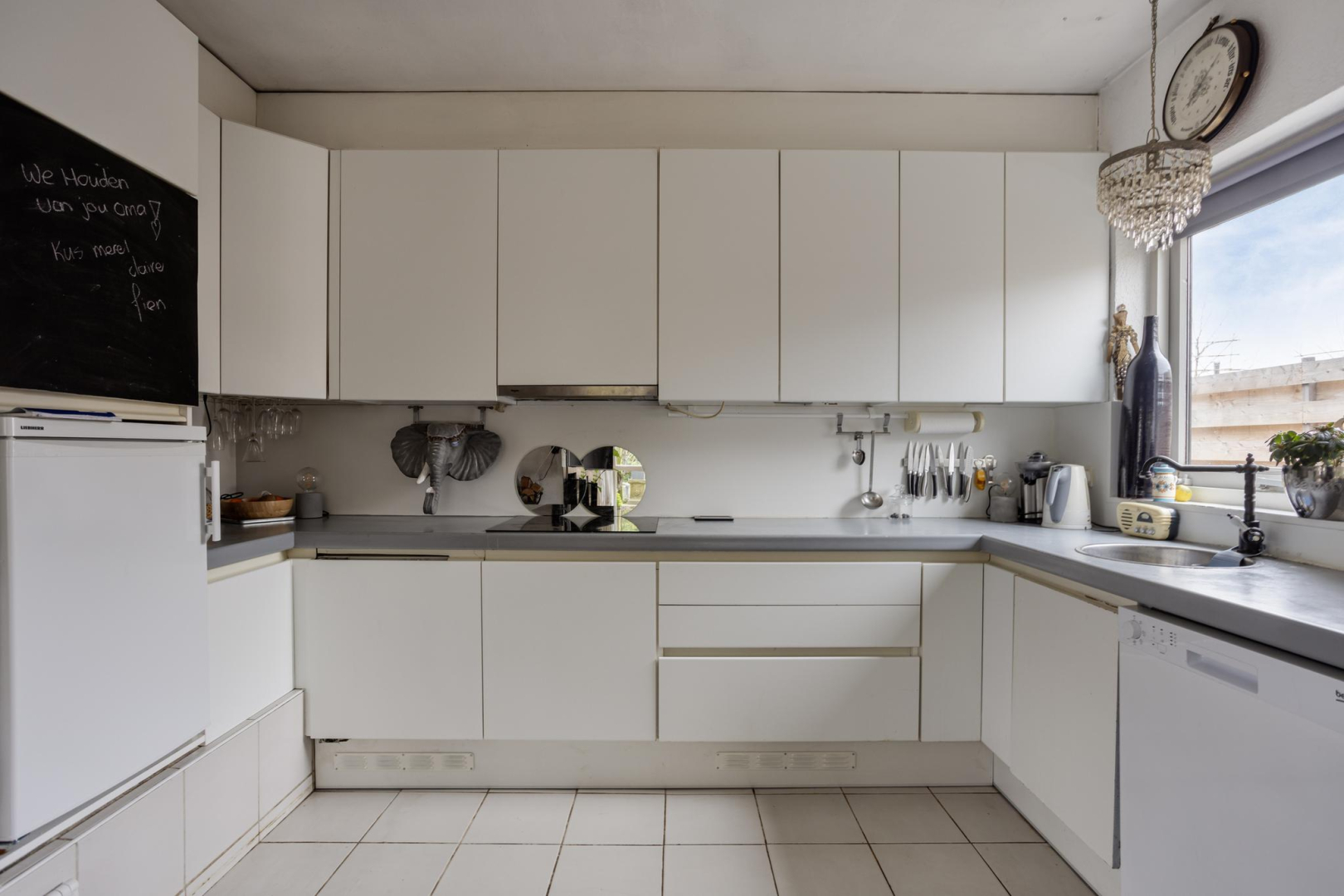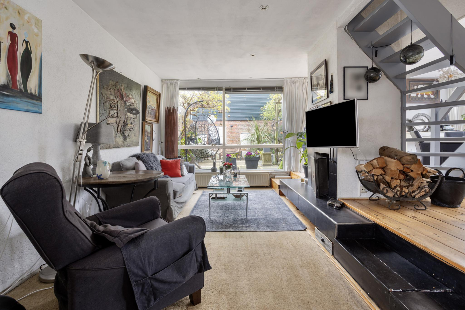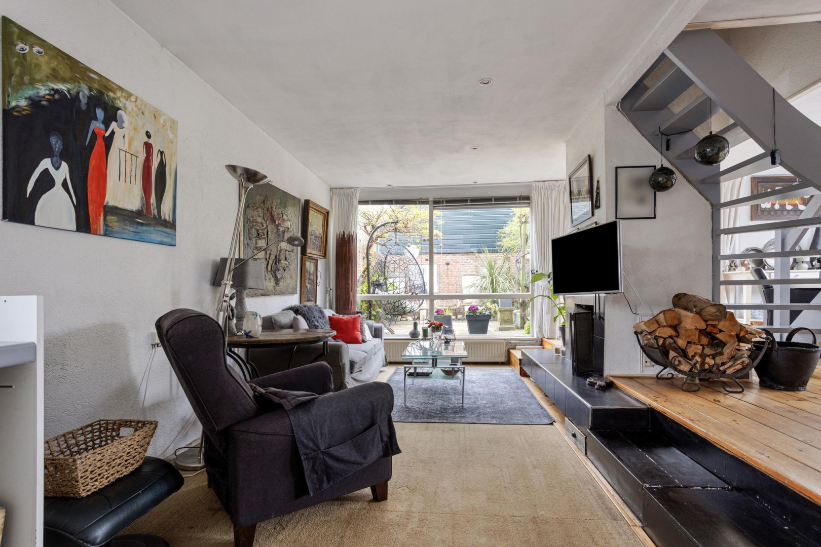 Begane grond: Via de entree, in de uitbouw, komt u in de hal met garderobe en bergkast met opstelplaats voor de wasmachine. Tevens bevinden zich hier de meterkast en is er toegang tot de badkamer met douche, toilet, wastafelmeubel en een kast met opstelplaats voor de CV ketel. Vanuit de hal is er toegang tot de ruime woonkamer met een knusse open haard, schuifpui naar de tuin en een open keuken met 4-pits inductie kookplaat, spoelbak, vaatwasmachine en koelkast. In de woonkamer ligt een houten vloer.