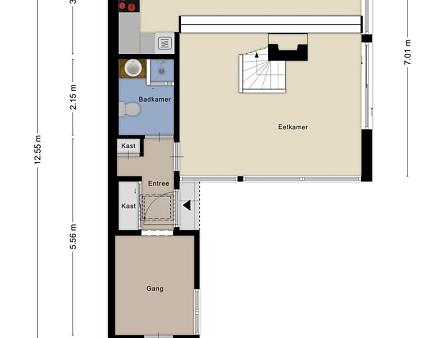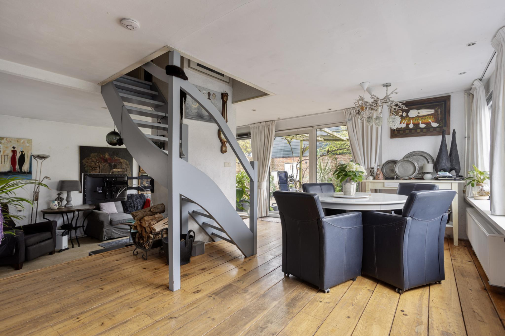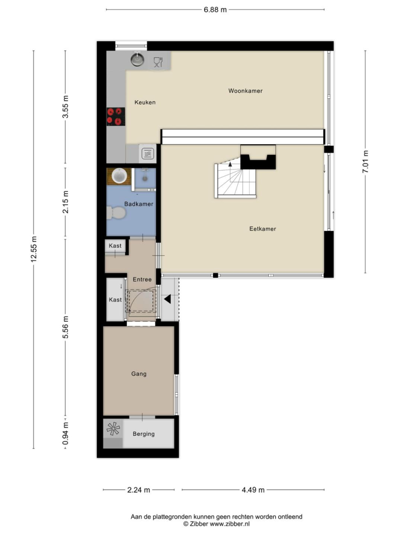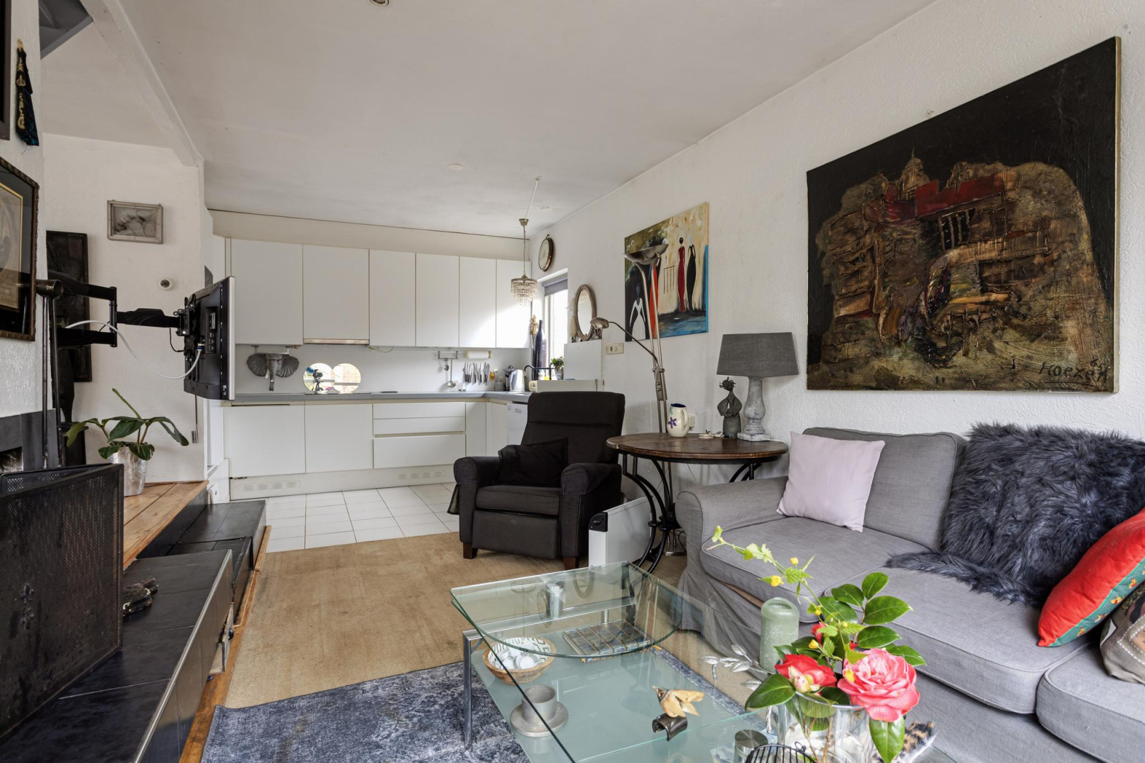 Begane grond: Via de entree, in de uitbouw, komt u in de hal met garderobe en bergkast met opstelplaats voor de wasmachine. Tevens bevinden zich hier de meterkast en is er toegang tot de badkamer met douche, toilet, wastafelmeubel en een kast met opstelplaats voor de CV ketel. Vanuit de hal is er toegang tot de ruime woonkamer met een knusse open haard, schuifpui naar de tuin en een open keuken met 4-pits inductie kookplaat, spoelbak, vaatwasmachine en koelkast. In de woonkamer ligt een houten vloer.