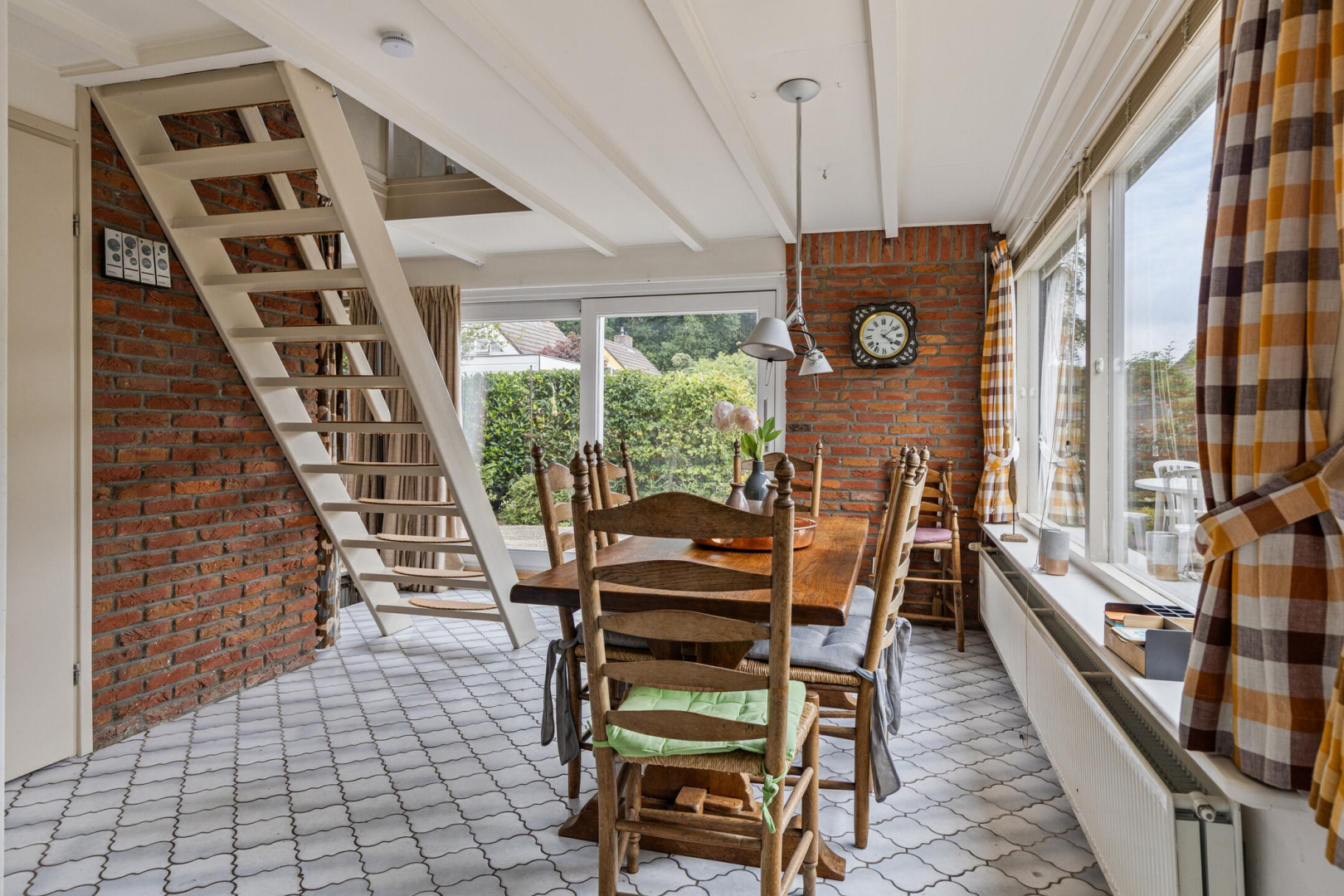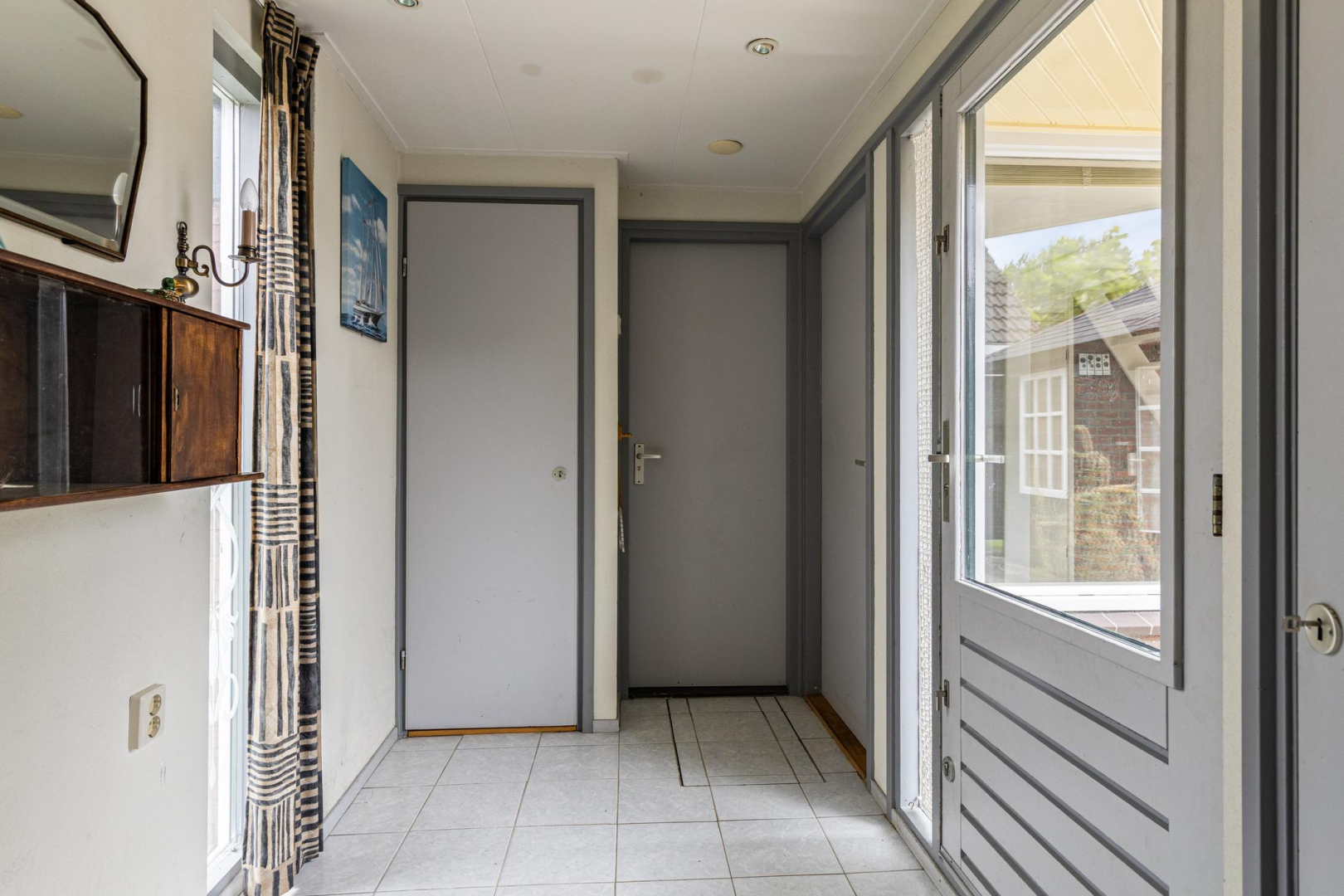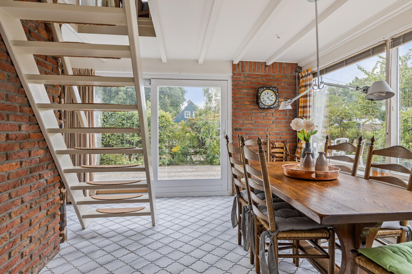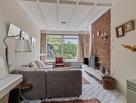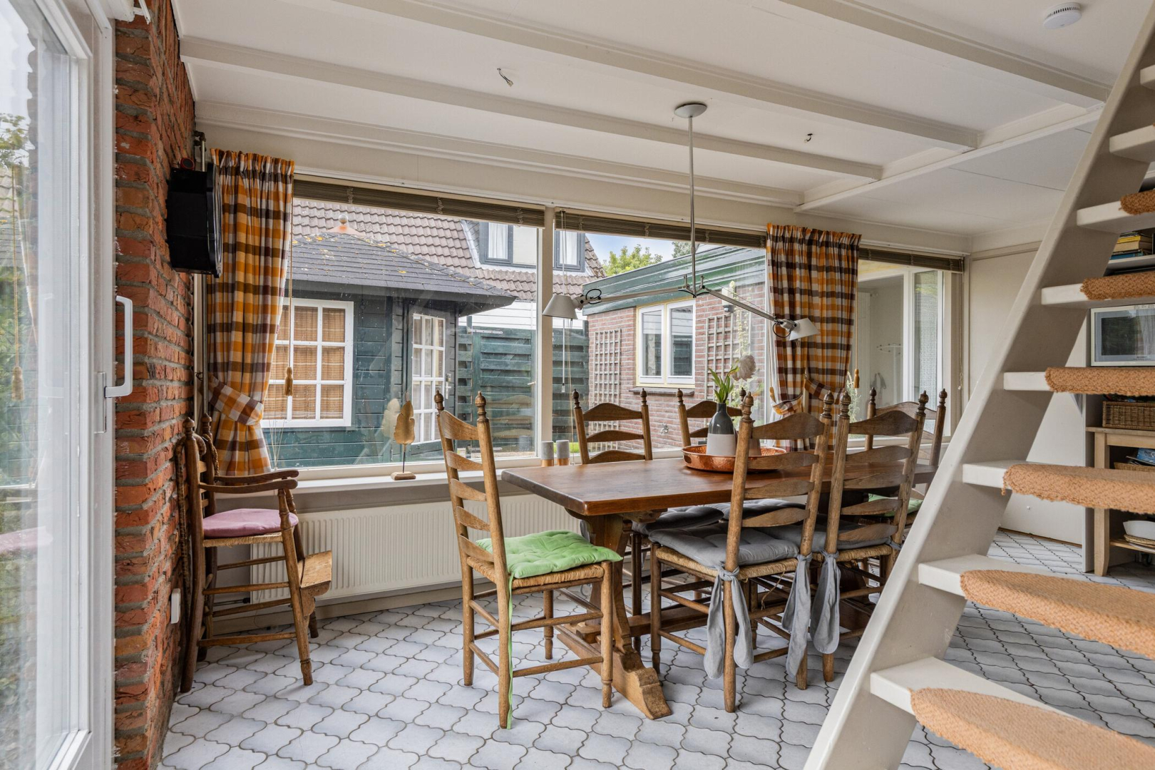 Entree, garderobe, meterkast en toegang tot de bijkeuken. Hier bevinden zich de opstelplaats voor de cv-ketel (2021) en de aansluiting voor de wasmachine. De bijkeuken is voorzien van een praktische tegelvloer. Vanuit de hal is ook de badkamer bereikbaar, uitgerust met een douche, toilet, wastafel en een handig spiegelkastje. De halfopen keuken is uitgerust met een 4-pits gasfornuis, vaatwasser en veel kastruimte. Daarnaast is er een handige voorraadkast aanwezig. De keuken staat in directe verbinding met de eethoek, waar een schuifpui toegang biedt tot het zonnige terras, ideaal voor een diner in de avondzon of een kop koffie in de ochtend. Via de gezellige eethoek loopt u zo de woonkamer in, compleet met een sfeervolle haard.