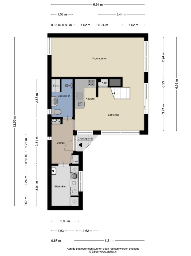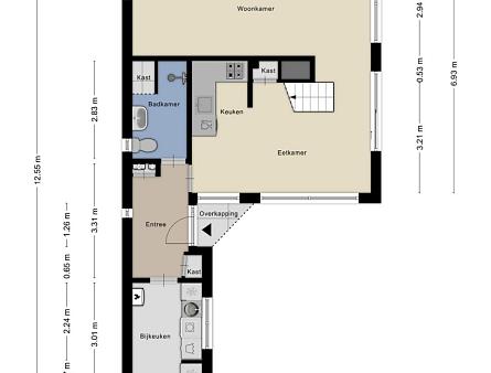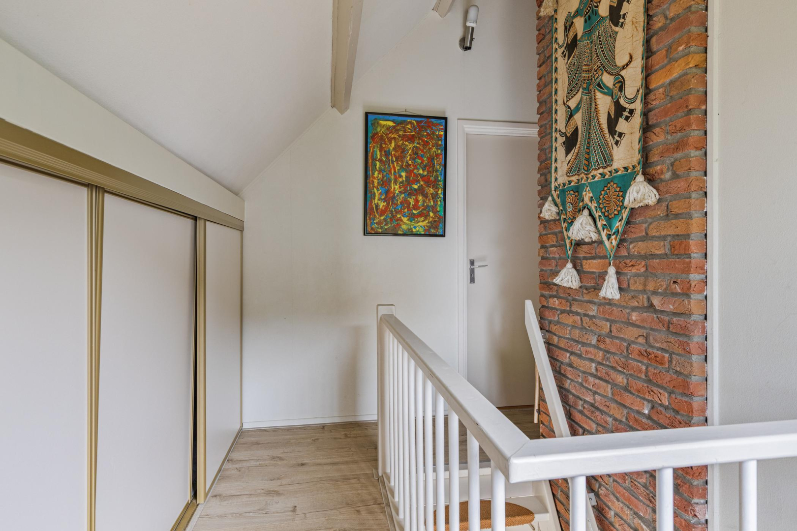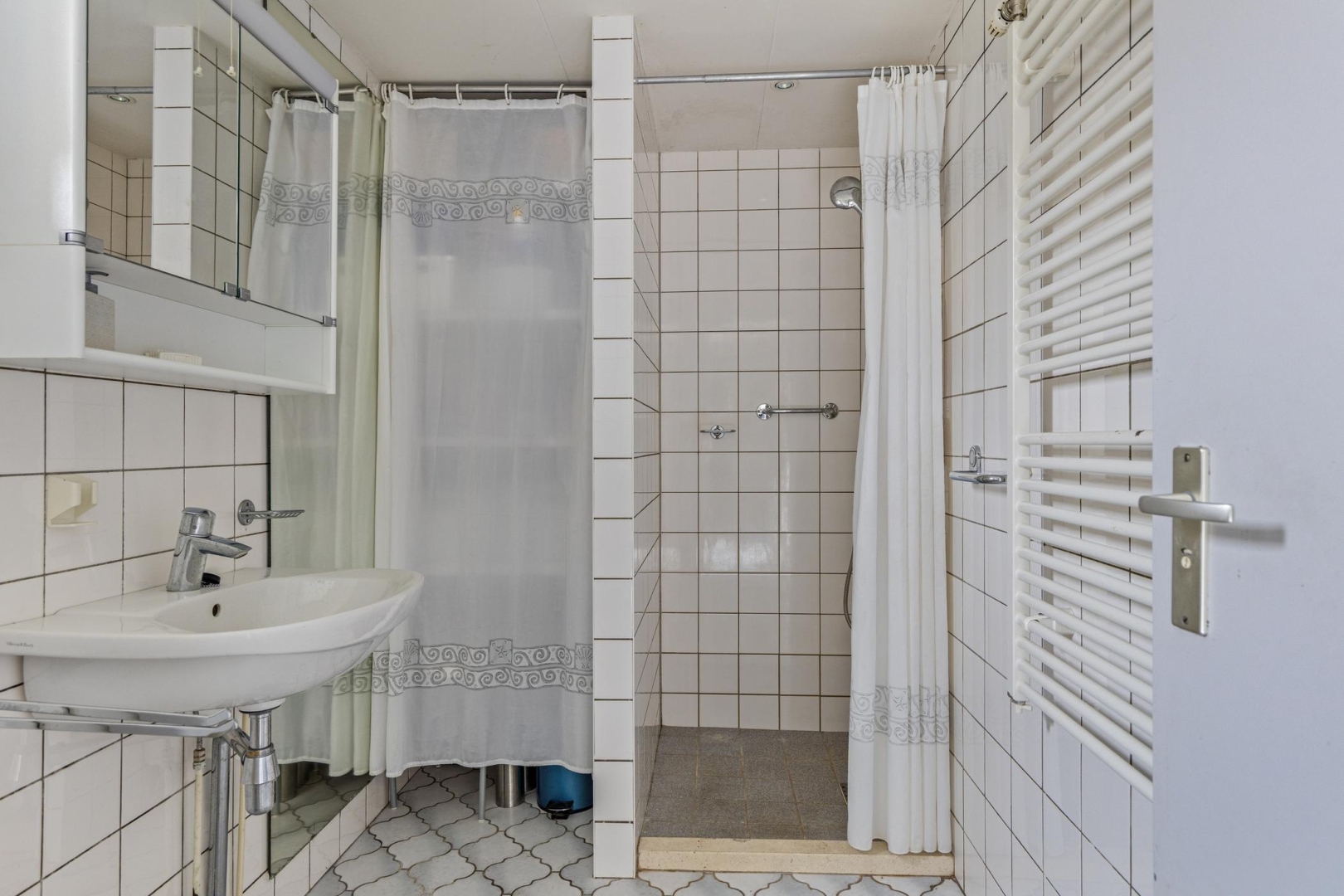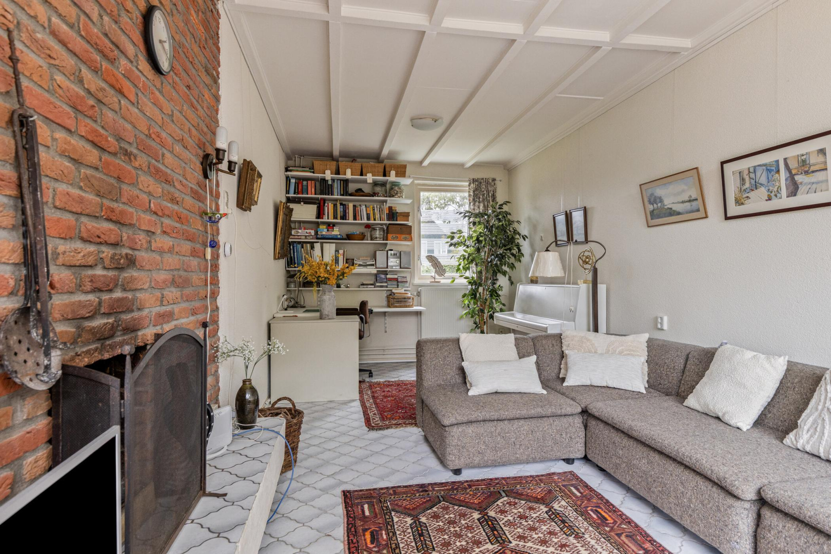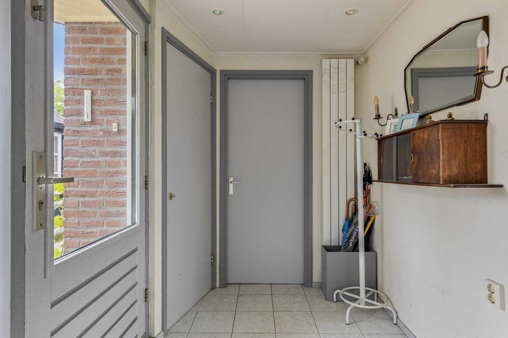Entree, garderobe, meterkast en toegang tot de bijkeuken. Hier bevinden zich de opstelplaats voor de cv-ketel (2021) en de aansluiting voor de wasmachine. De bijkeuken is voorzien van een praktische tegelvloer. Vanuit de hal is ook de badkamer bereikbaar, uitgerust met een douche, toilet, wastafel en een handig spiegelkastje. De halfopen keuken is uitgerust met een 4-pits gasfornuis, vaatwasser en veel kastruimte. Daarnaast is er een handige voorraadkast aanwezig. De keuken staat in directe verbinding met de eethoek, waar een schuifpui toegang biedt tot het zonnige terras, ideaal voor een diner in de avondzon of een kop koffie in de ochtend. Via de gezellige eethoek loopt u zo de woonkamer in, compleet met een sfeervolle haard.