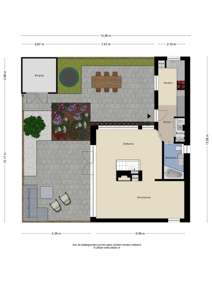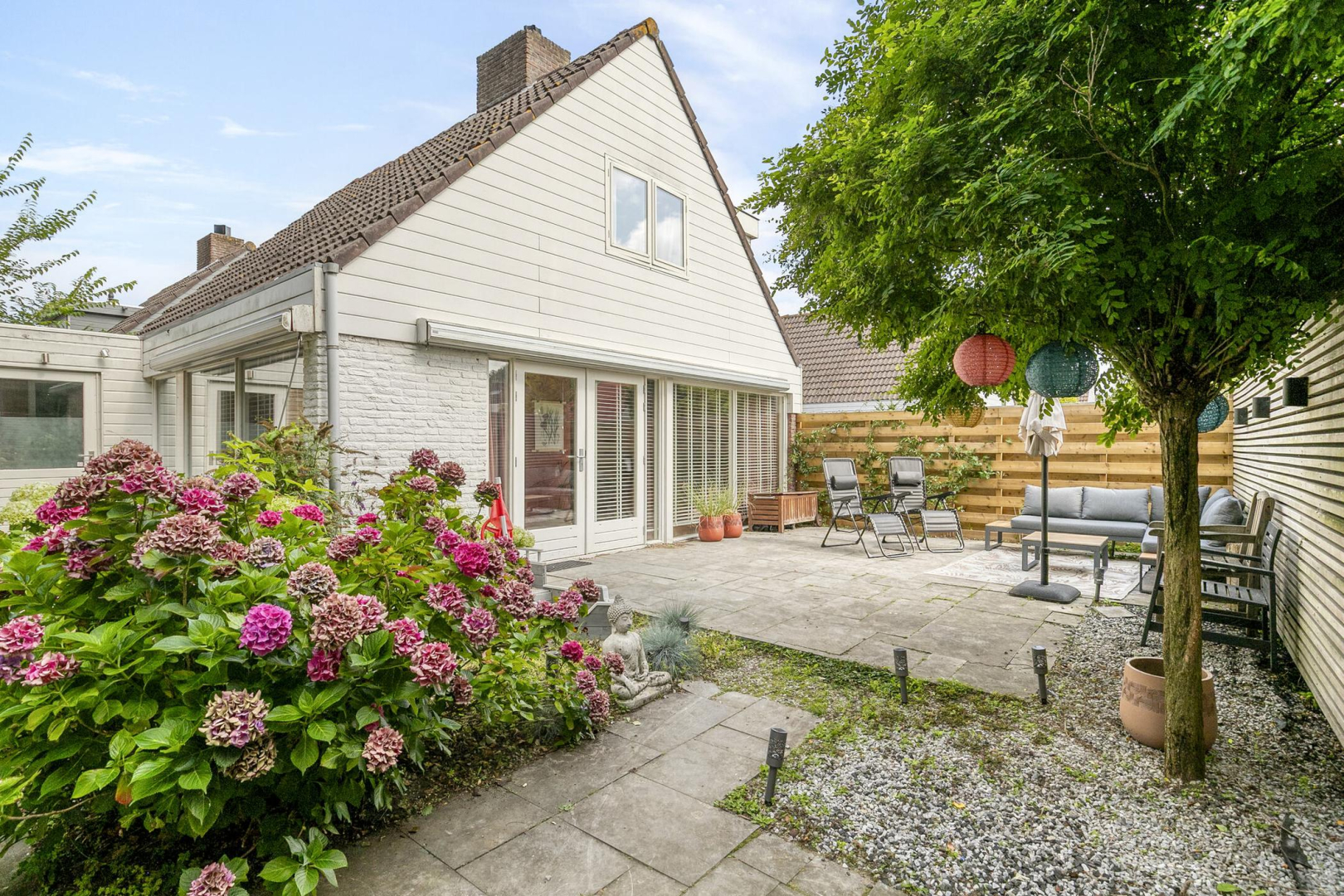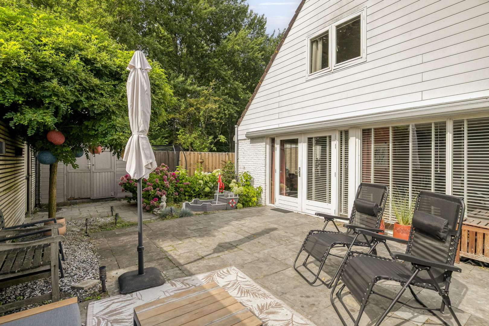De ruime, beschutte tuin biedt volop privacy en beschikt over twee heerlijke terrassen. Het eerste terras, grenzend aan de keuken, is ideaal voor lange diners aan de grote eettafel. Het tweede terras bereik je via de openslaande deuren in de eetkamer, een heerlijke plek om te genieten van de zon, tot rust te komen of weg te dromen met een goed boek. Daarnaast vind je in de tuin een berging.