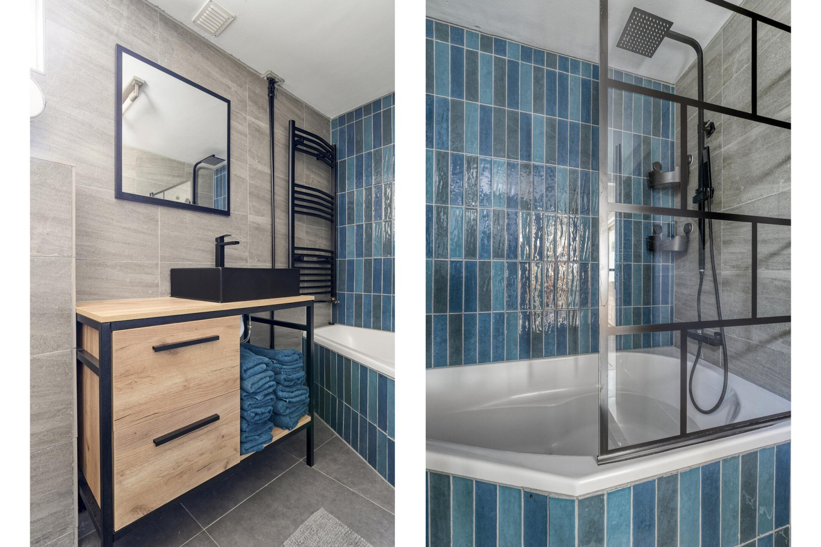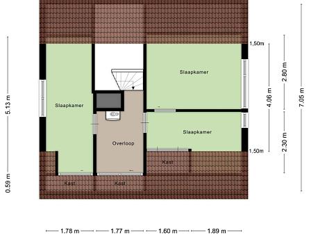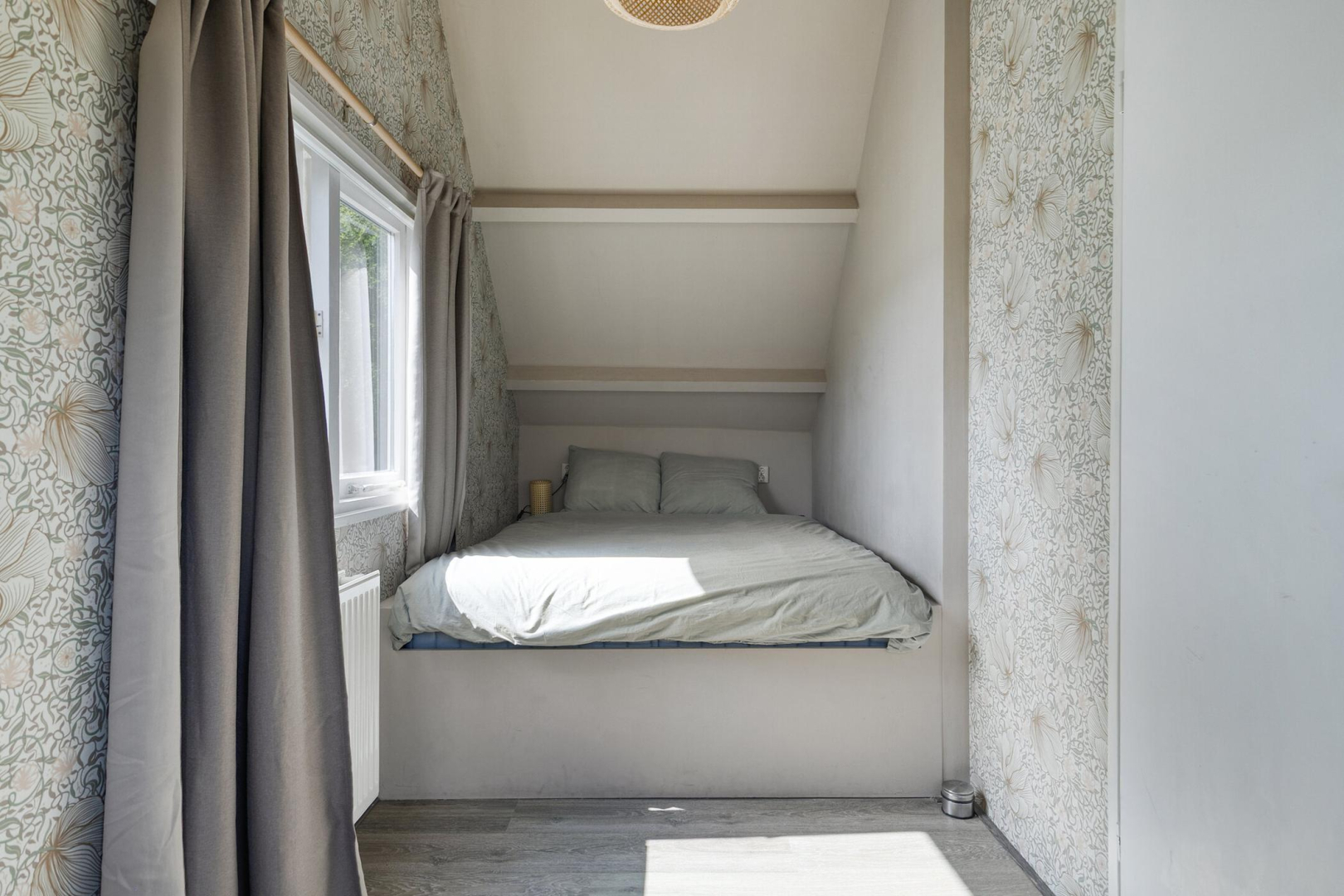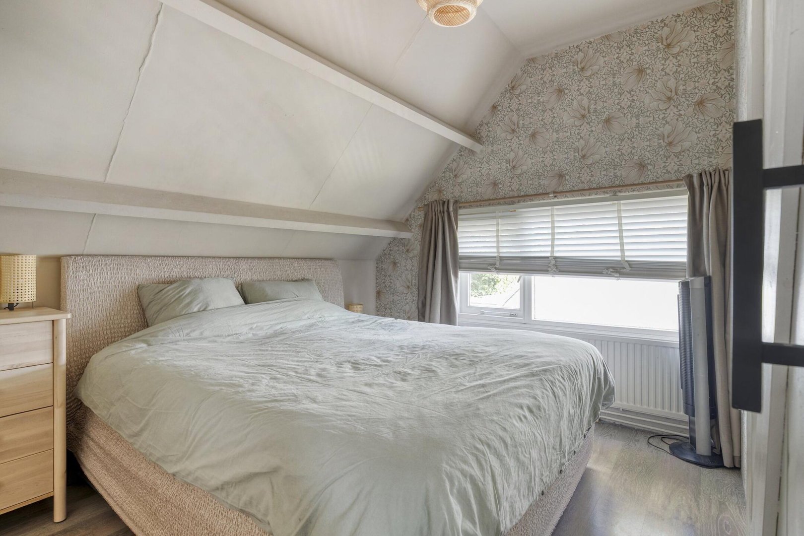 Via de trap bereikt u de overloop, waar de cv-ketel is geplaatst en praktische knieschotten zorgen voor extra opbergruimte. Vanaf hier heeft u toegang tot drie sfeervolle slaapkamers. De ruime masterbedroom is bereikbaar via een schuifdeur vanuit de huidige kinderkamer, die dankzij een speels stapelbedmeubel drie slaapplaatsen biedt. In deze kamer bevindt zich ook een ingebouwde kast, ideaal als kledingkast. De derde slaapkamer, eveneens ruim, ligt aan de tuinzijde en beschikt, net als de overloop, over handige knieschotten voor extra opbergmogelijkheden.