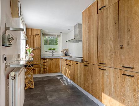 Via de entree stapt u binnen in de hal met garderobekast welke overloopt in de sfeervolle keuken, compleet uitgerust met een koelkast, vriezer, inductiekookplaat, afzuigkap, vaatwasser én volop werk- en opbergruimte. Vanuit de keuken bereikt u de moderne badkamer, voorzien van een ligbad met regendouche, handdoekradiator, stijlvol wastafelmeubel en toilet. Aansluitend vindt u de ruime eetkamer, dé plek voor lange, gezellige diners aan een grote eettafel. Hier bevindt zich tevens de trap naar boven. De eetkamer loopt naadloos over in de knusse woonkamer. Geniet van een goed boek bij de open haard of kijk ontspannen tv vanaf de comfortabele zitplek. Via openslaande deuren stap je zo de tuin in, ideaal voor lange zomeravonden en gezellige barbecues.