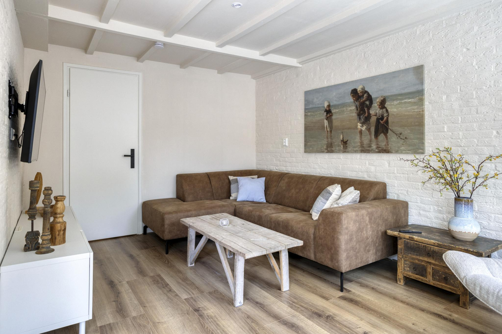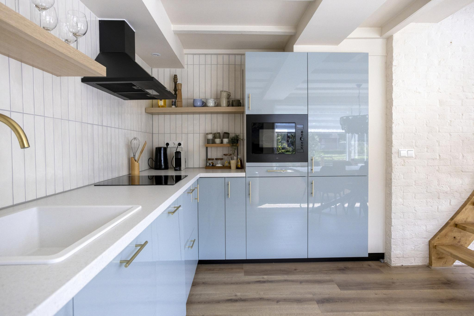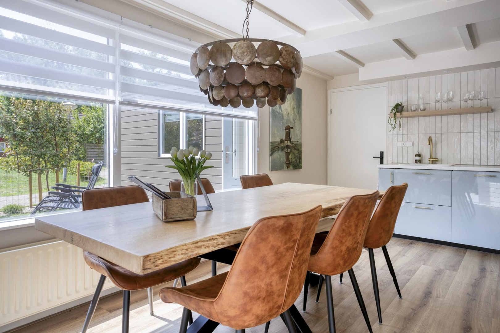 Via de entree kom je in de hal met garderoberuimte en meterkast. Vanuit de hal is er toegang tot een kamer die momenteel in gebruik is als bijkeuken, maar ook geschikt is als slaapkamer. Aansluitend bevindt zich een praktische bergruimte met aansluitingen voor de wasmachine. Daarnaast biedt de hal toegang tot zowel de moderne badkamer als de royale woonruimte. De badkamer (2025) is eigentijds ingericht en voorzien van een wandcloset, stijlvol wastafelmeubel, spiegel met geïntegreerde spiegelverwarming en verlichting, handdoekradiator en een comfortabele inloopdouche met zowel een regen- als handdouche. De keuken (2025) en het eetgedeelte genieten van veel daglicht dankzij de grote raampartijen en de keuken is uitgevoerd in een praktische L-opstelling. De keuken is uitgerust met moderne inbouwapparatuur, waaronder een inductiekookplaat, afzuigkap, combi-oven, vaatwasser, koelkast en vriezer. Vanuit het aangrenzende eetgedeelte loop je door naar de gezellige zitkamer, compleet met open haard en openslaande deuren die toegang geven tot het terras en de tuin. Aansluitend aan de woonkamer bevindt zich een ruime slaapkamer, voorzien van airconditioning voor extra comfort.