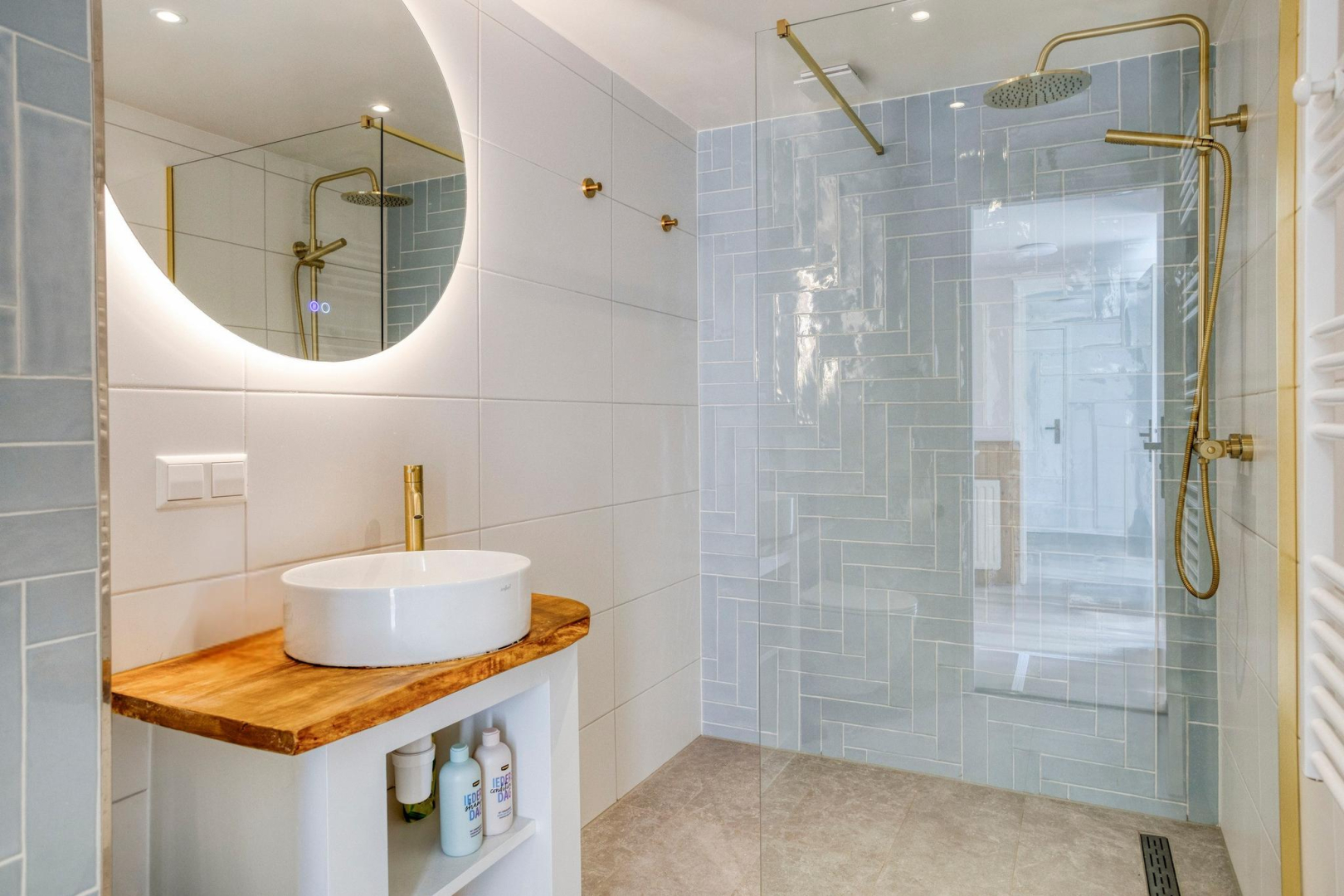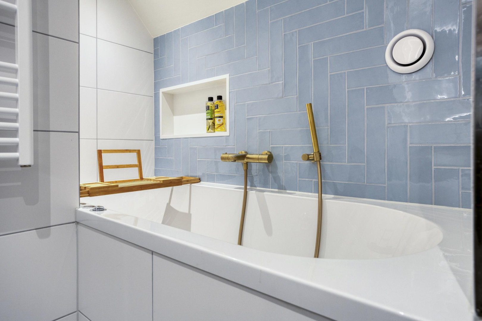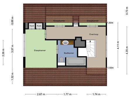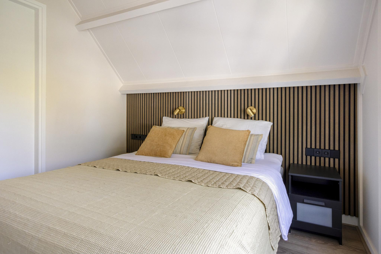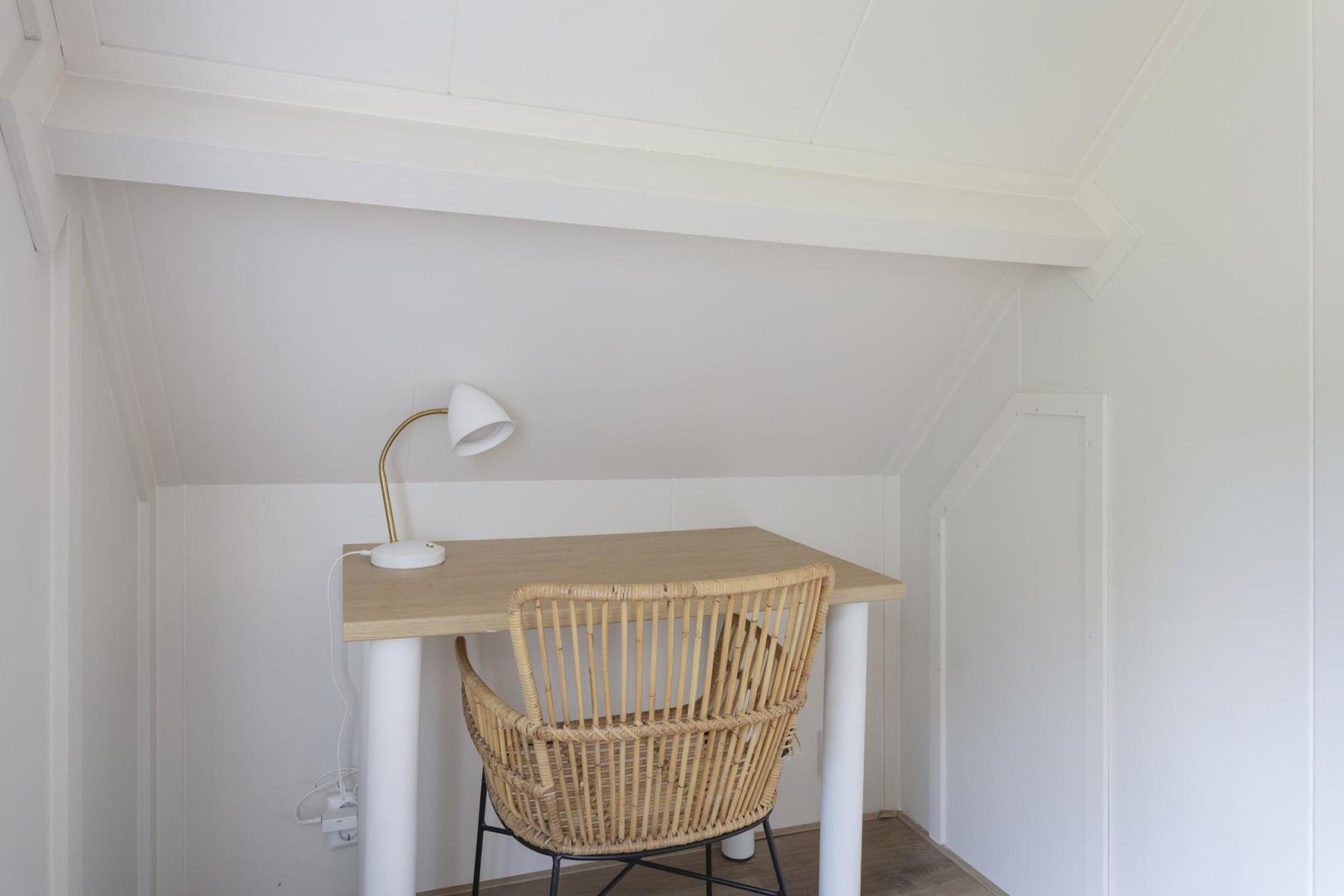 Via de vaste trap bereikt u de overloop, waar de cv-ketel keurig is weggewerkt in een inbouwkast. De ruimte is slim en sfeervol ingericht met twee royale bedstedes, ideaal als extra slaapgelegenheid en een vaste kast. De ruime slaapkamer is voorzien van een vaste kast, airconditioning en beschikt over een luxe en-suite badkamer (2025). Deze is uitgerust met mechanische ventilatie, een comfortabel ligbad met jets en bubbelfunctie, een stijlvol wastafelmeubel met geïntegreerde spiegelverwarming en verlichting, handdoekradiator en een wandcloset.