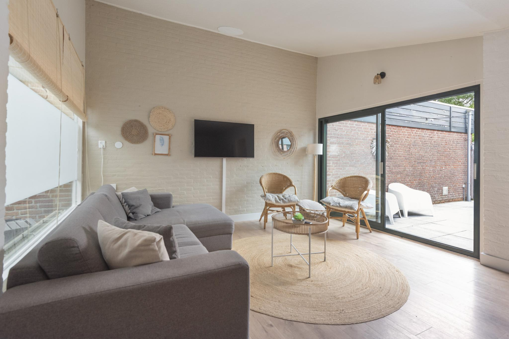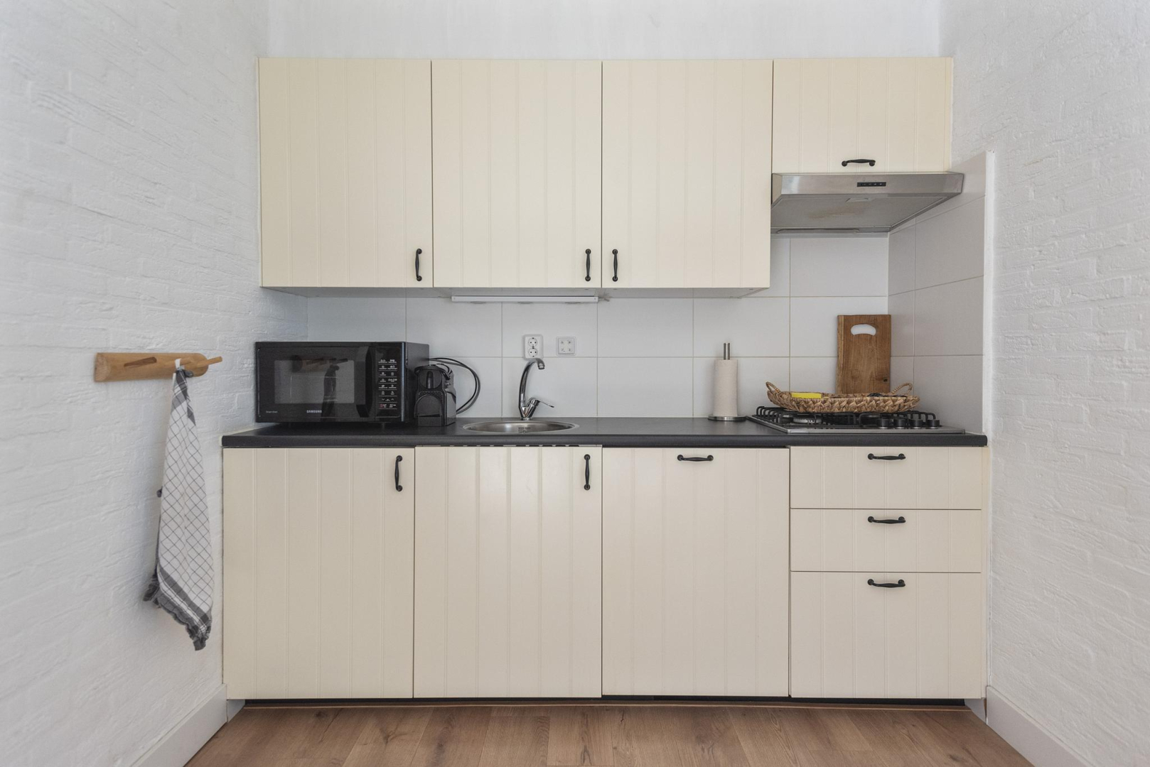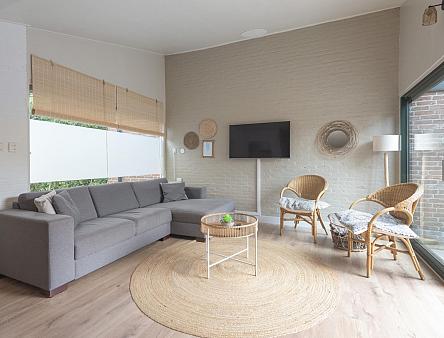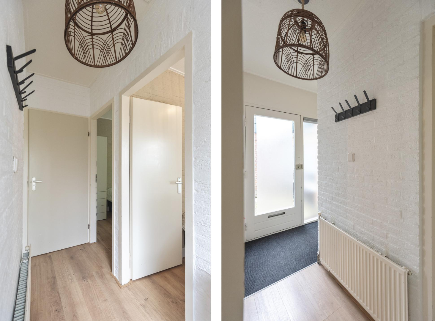 Begane grond: Entree, hal met meterkast, een modern toilet met wandcloset en fonteintje (2022) en een praktische bergkast met opstelplaats voor de Cv-ketel. De lichte woonkamer is voorzien van een schuifpui die toegang geeft tot de tuin, wat zorgt voor een prettige verbinding tussen binnen en buiten. De open keuken is compleet uitgerust met een 4-pits gaskookplaat, afzuigkap, vaatwasser en een koelkast. Vanuit de woonkamer bereikt u de ruime hoofdslaapkamer, terwijl de andere twee slaapkamers vanuit de hal toegankelijk zijn. De woonkamer en alle slaapkamers zijn voorzien van een nette laminaatvloer. De moderne badkamer (2022) is stijlvol ingericht met een wastafelmeubel en een inloopdouche.