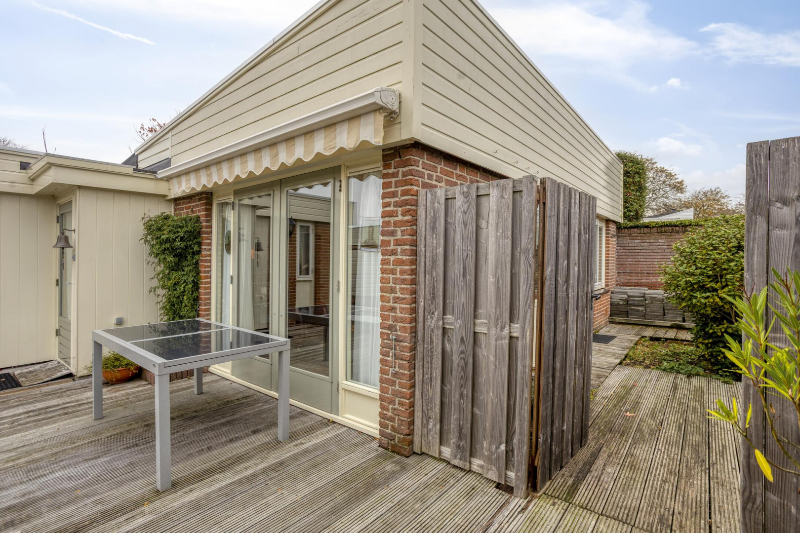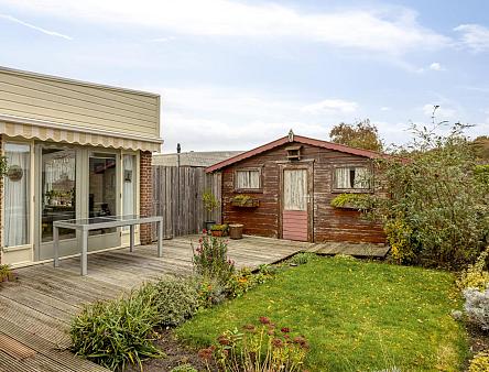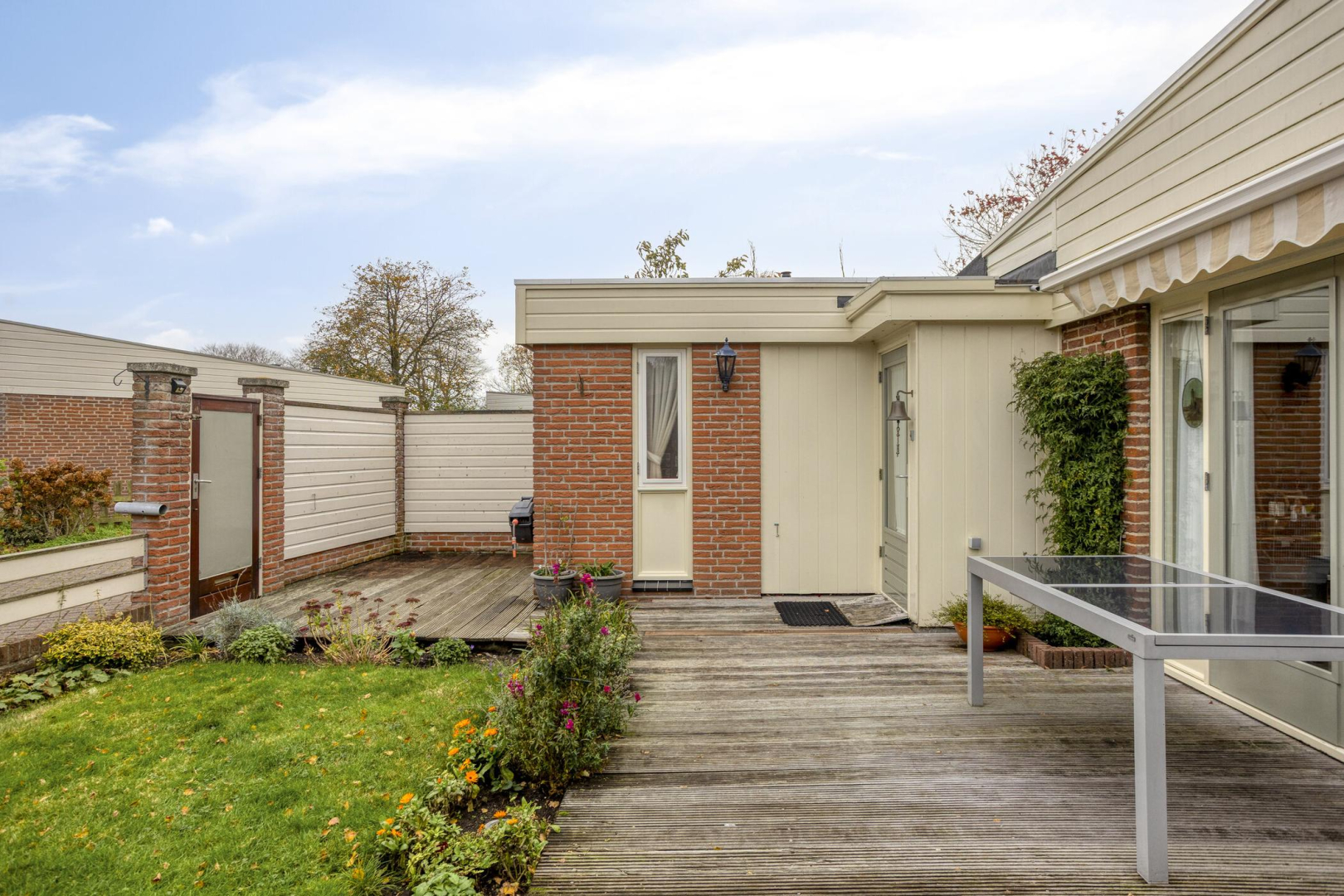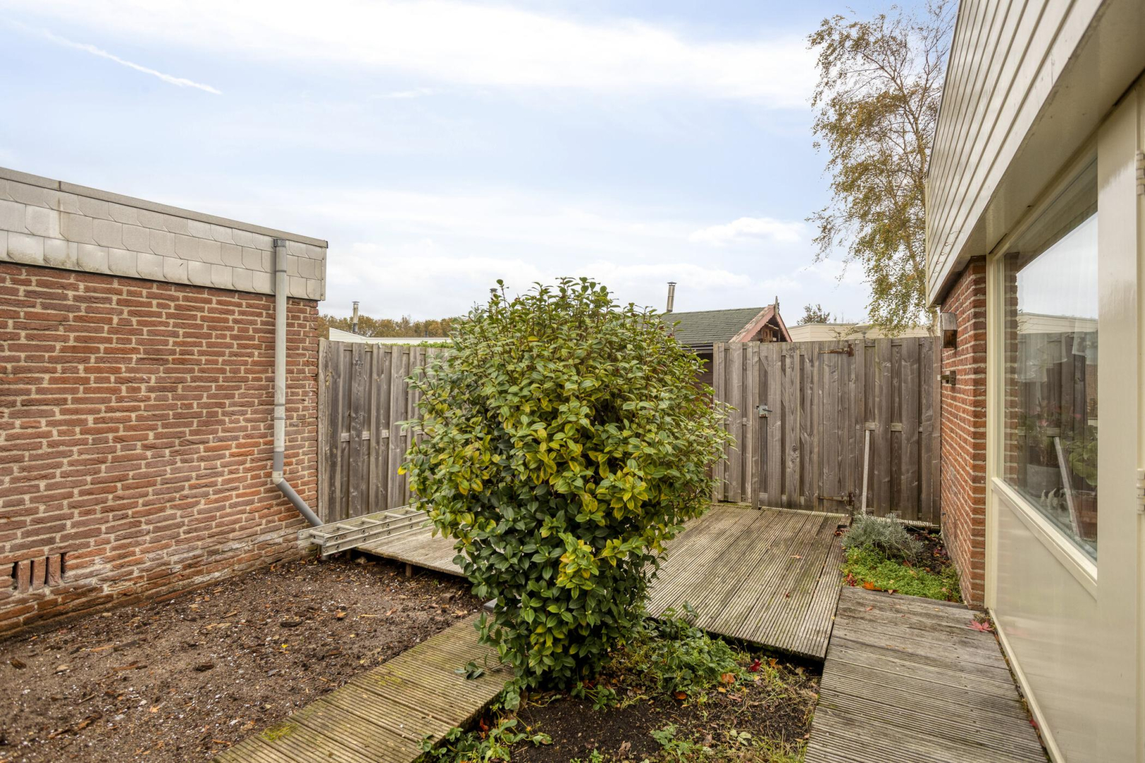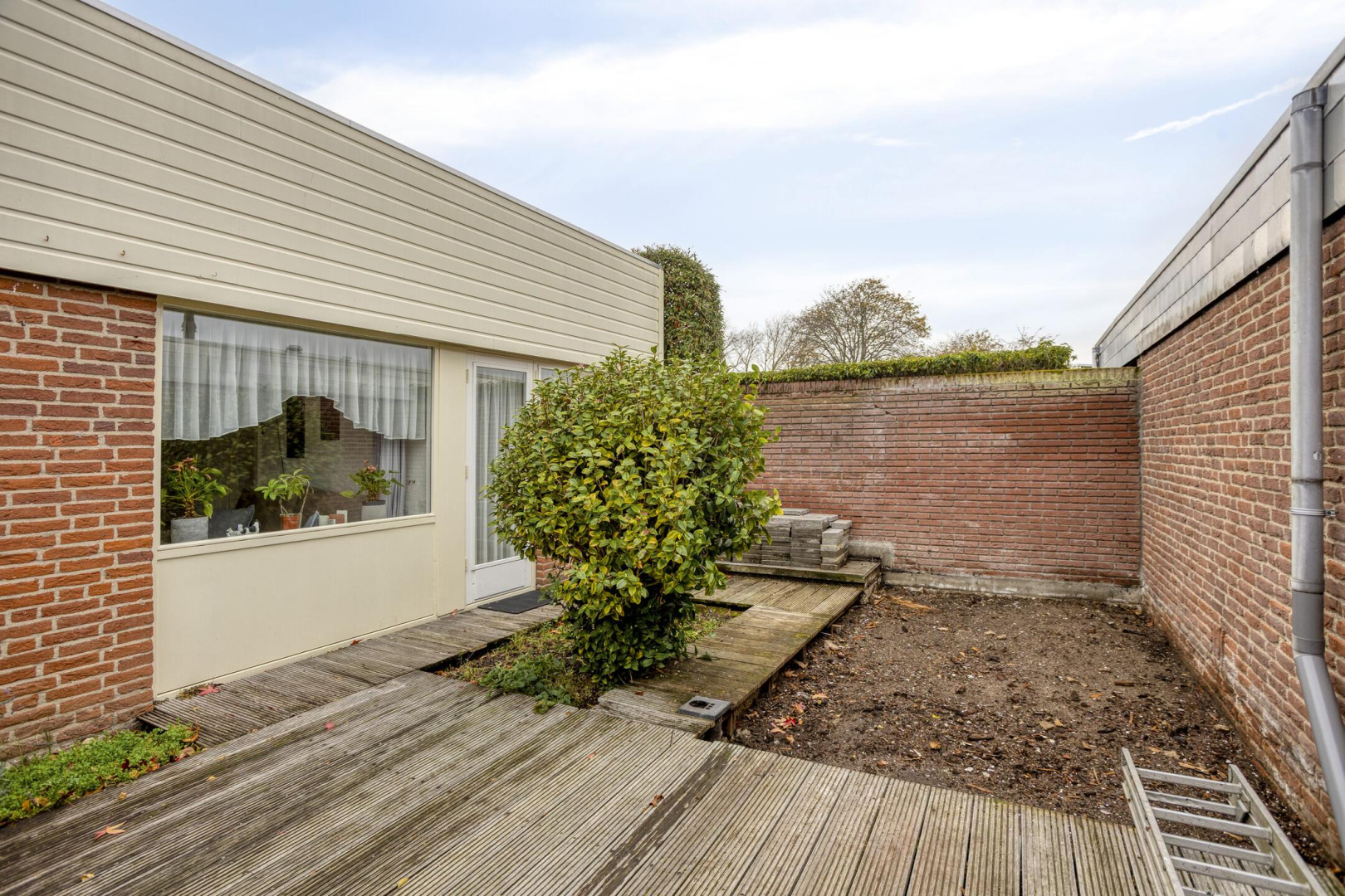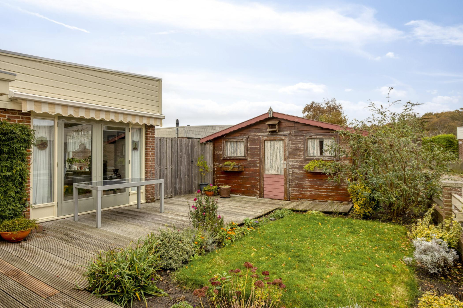 De houten berging wordt door verkoper verwijderd vóór de overdracht;