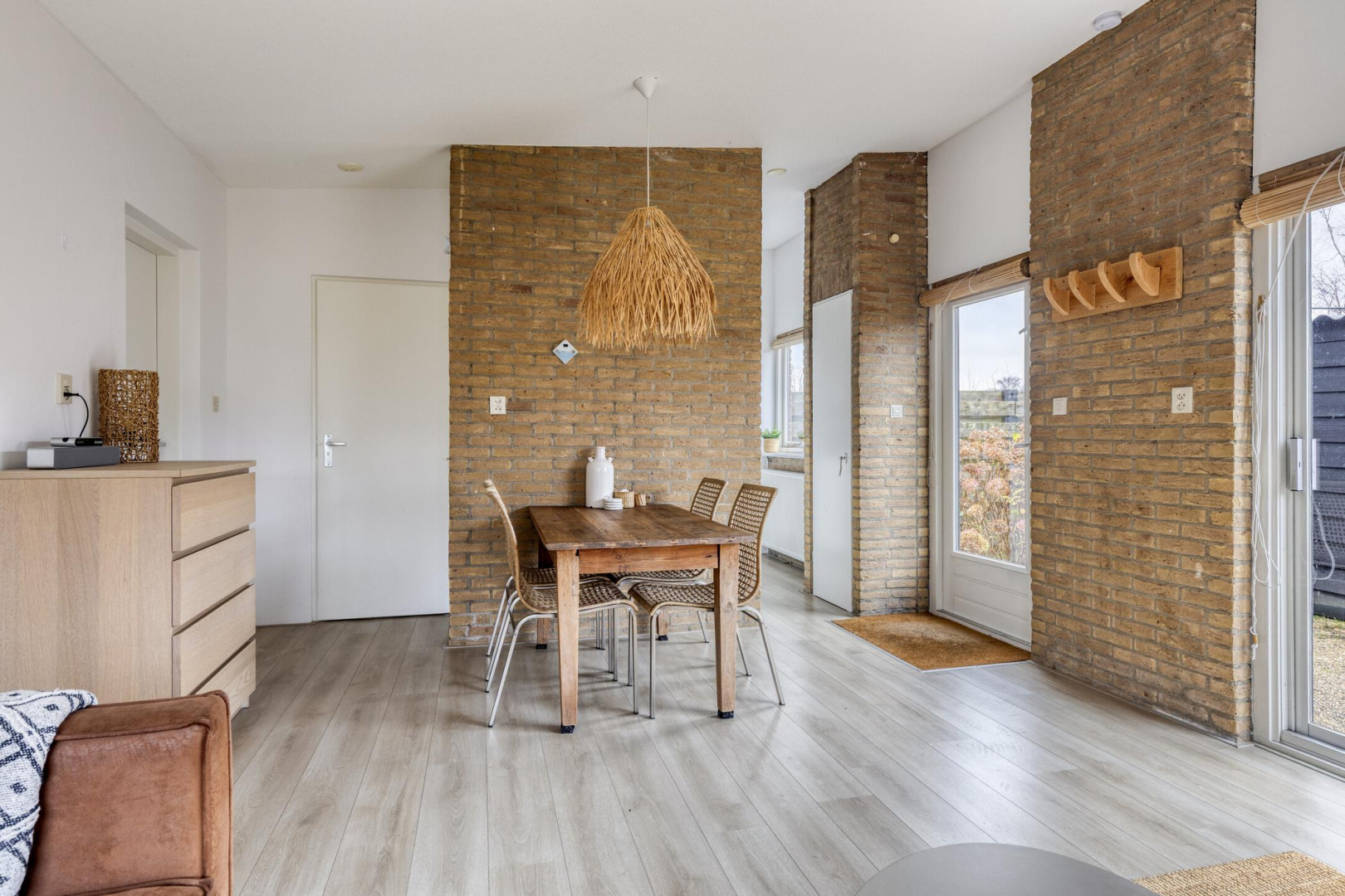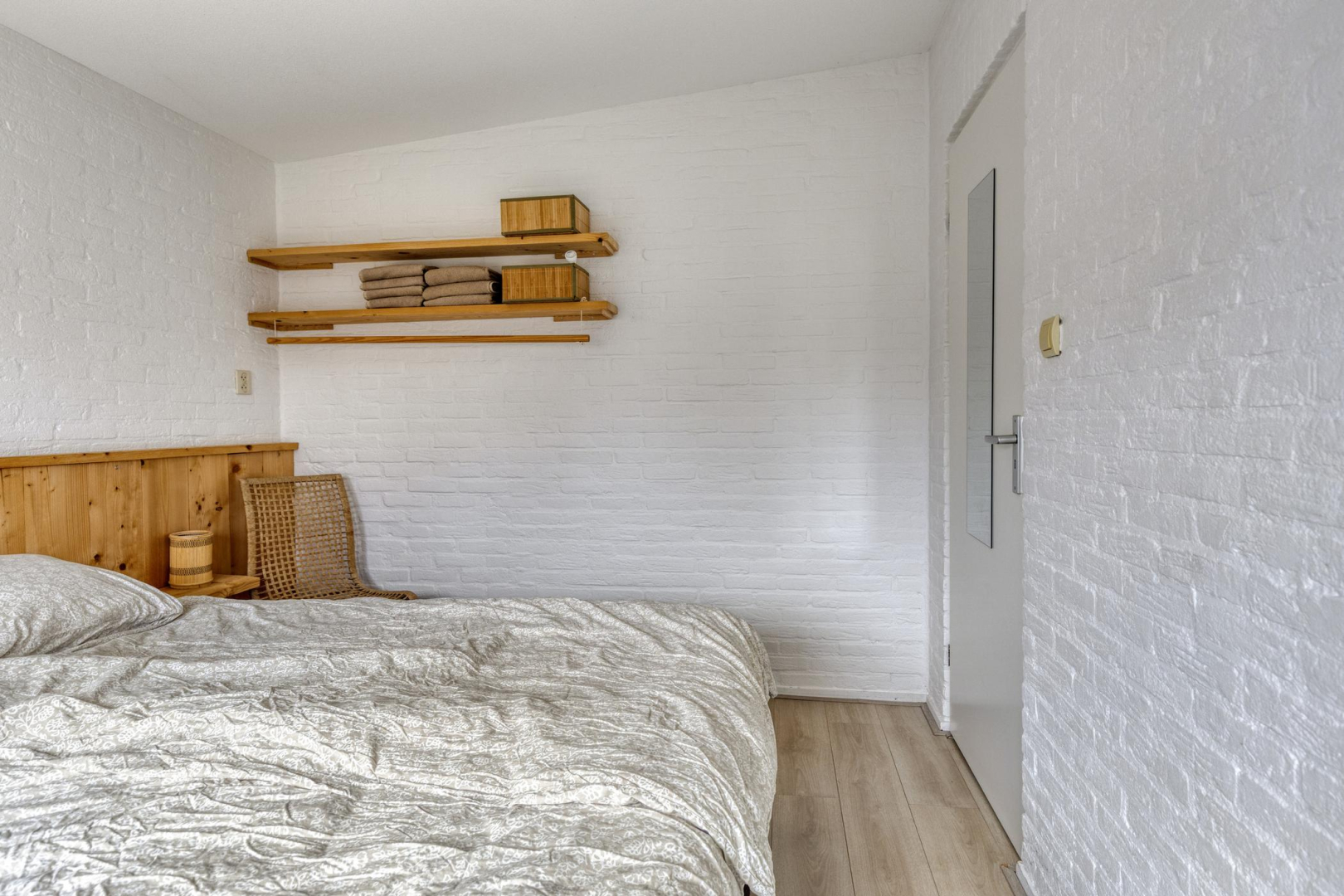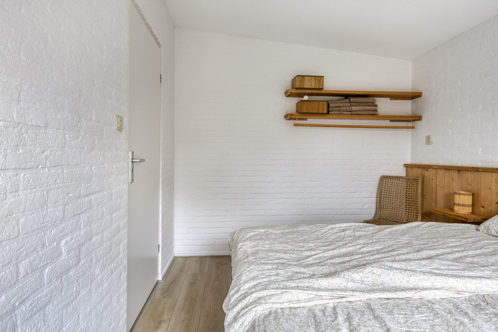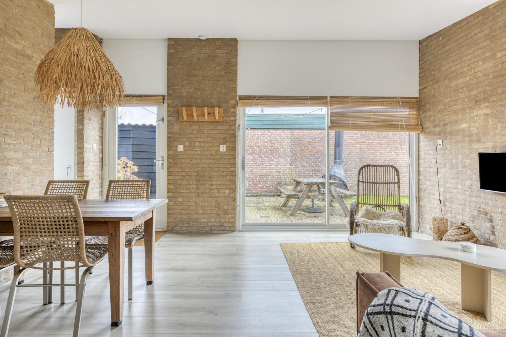 Via de entree komt u direct binnen in de lichte woon-/eetkamer, waar de open en praktische indeling direct opvalt. De ruimte biedt plaats aan zowel een comfortabele zithoek als een eettafel en wordt gekenmerkt door veel daglicht dankzij de grote raampartijen. De woonkamer is gesitueerd aan de tuinzijde en beschikt over een schuifpui die directe toegang geeft tot het terras, waardoor binnen en buiten op een natuurlijke manier in elkaar overlopen. Aansluitend bevindt zich de halfopen keuken, die praktisch is ingericht en voorzien van diverse inbouwapparatuur, met voldoende werkblad- en kastruimte en een raam voor natuurlijke lichtinval. Via de woonkamer zijn de twee comfortabele slaapkamers en de badkamer bereikbaar. De badkamer is voorzien van een ligbad met douche, een wastafelmeubel, een toilet, een wasmachineaansluiting en een dakraam dat zorgt voor prettig daglicht. De combinatie van lichte afwerkingen, karaktervolle bakstenen wanden en natuurlijke materialen zorgt voor een warme, eigentijdse uitstraling en een aangenaam ruimtelijk gevoel.