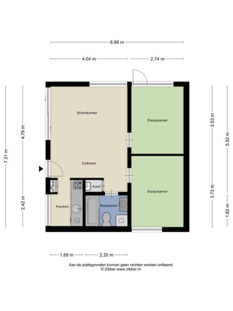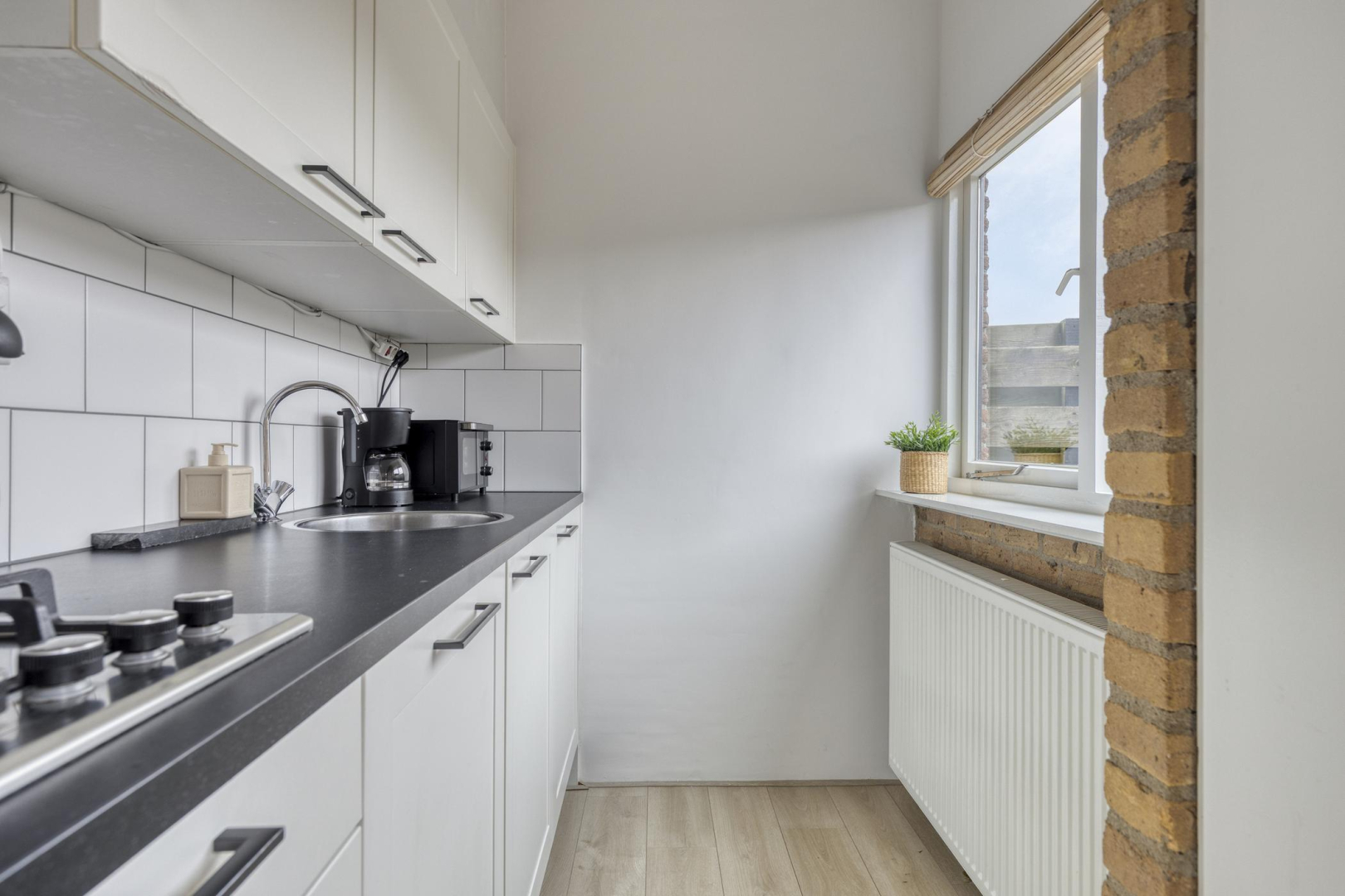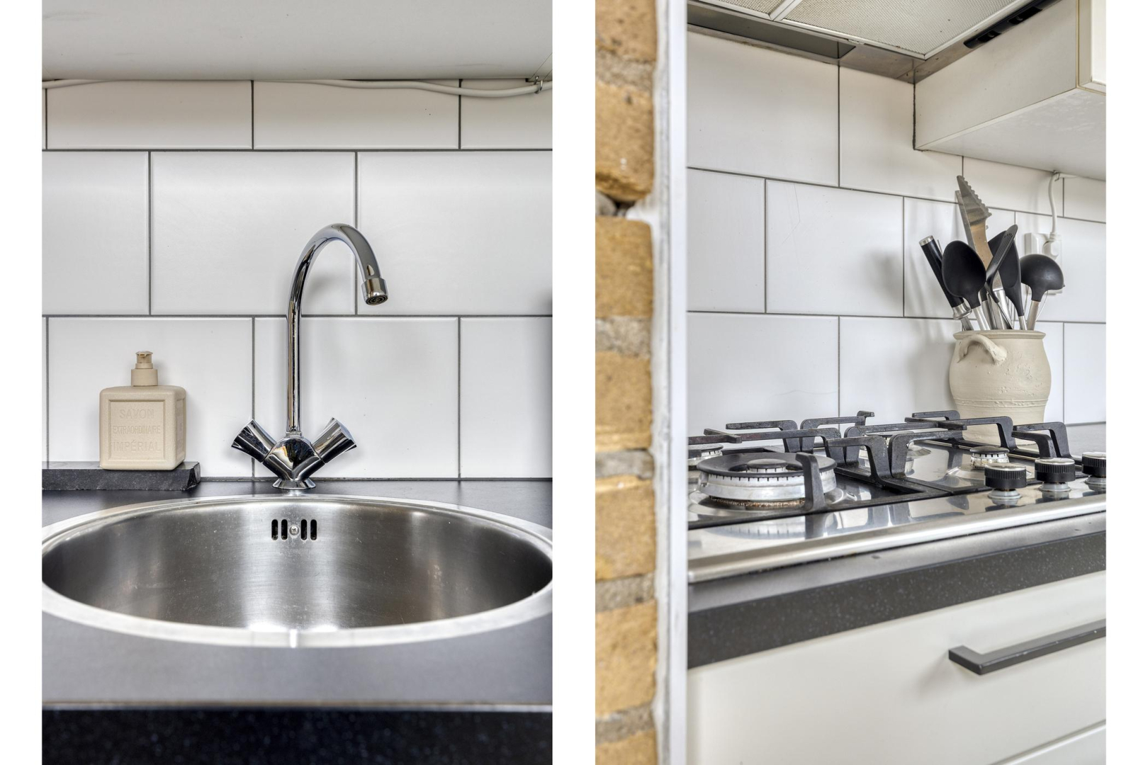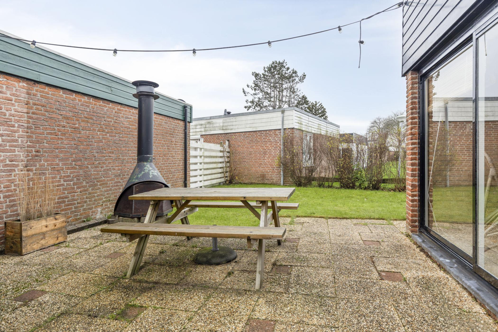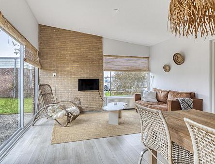 Via de entree komt u direct binnen in de lichte woon-/eetkamer, waar de open en praktische indeling direct opvalt. De ruimte biedt plaats aan zowel een comfortabele zithoek als een eettafel en wordt gekenmerkt door veel daglicht dankzij de grote raampartijen. De woonkamer is gesitueerd aan de tuinzijde en beschikt over een schuifpui die directe toegang geeft tot het terras, waardoor binnen en buiten op een natuurlijke manier in elkaar overlopen. Aansluitend bevindt zich de halfopen keuken, die praktisch is ingericht en voorzien van diverse inbouwapparatuur, met voldoende werkblad- en kastruimte en een raam voor natuurlijke lichtinval. Via de woonkamer zijn de twee comfortabele slaapkamers en de badkamer bereikbaar. De badkamer is voorzien van een ligbad met douche, een wastafelmeubel, een toilet, een wasmachineaansluiting en een dakraam dat zorgt voor prettig daglicht. De combinatie van lichte afwerkingen, karaktervolle bakstenen wanden en natuurlijke materialen zorgt voor een warme, eigentijdse uitstraling en een aangenaam ruimtelijk gevoel.