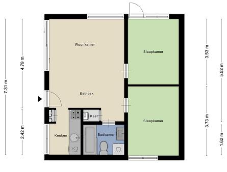 | Badkamervooziening | ligbad, toilet, wastafelmeubel, wasmachineaansluiting |