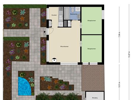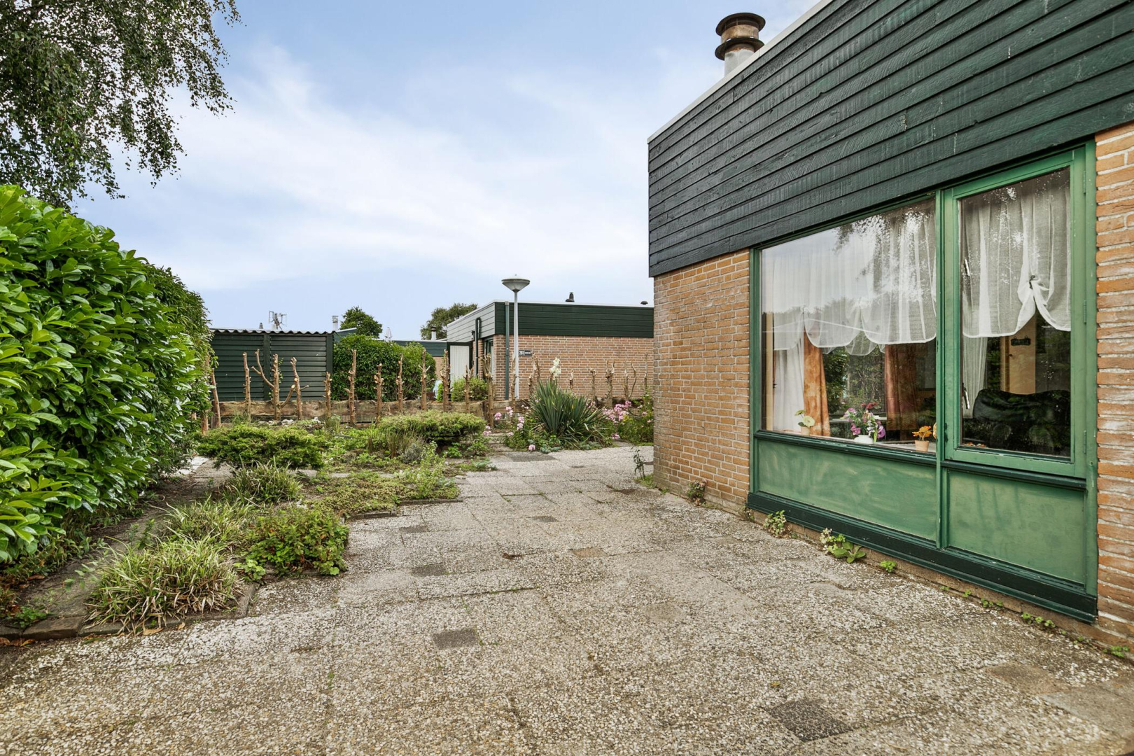 De woning beschikt over een ruime, L-vormige tuin met volop groen en een prettige afwisseling van zon en schaduw. Met twee terrassen is er altijd een fijne plek om buiten te zitten. Daarnaast vind je in de tuin een tuinhuis voor extra bergruimte, en een sfeervolle vijver met vissen. De tuin biedt volop mogelijkheden om met beplanting een natuurlijke afscherming te creëren, zodat je in alle rust en privacy van het buitenleven kunt genieten.