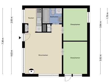 U stapt binnen in de lichte woonkamer met een sfeervolle open haard en twee royale raampartijen die zorgen voor een fijne lichtinval. Aangrenzend vindt u de halfopen keuken, compleet uitgerust met een koelkast met vriesvak, 4-pits gasfornuis, afzuigkap en volop kastruimte. Via de woonkamer bereikt u twee ruime slaapkamers, waarvan één directe toegang biedt tot de zonnige tuin. De nette badkamer is voorzien van een wastafel, toilet, ligbad met douchefunctie en een wasmachineaansluiting.