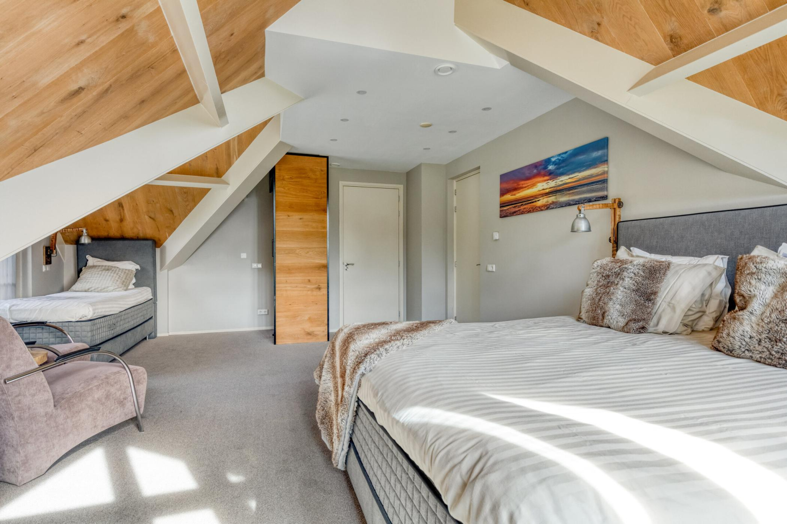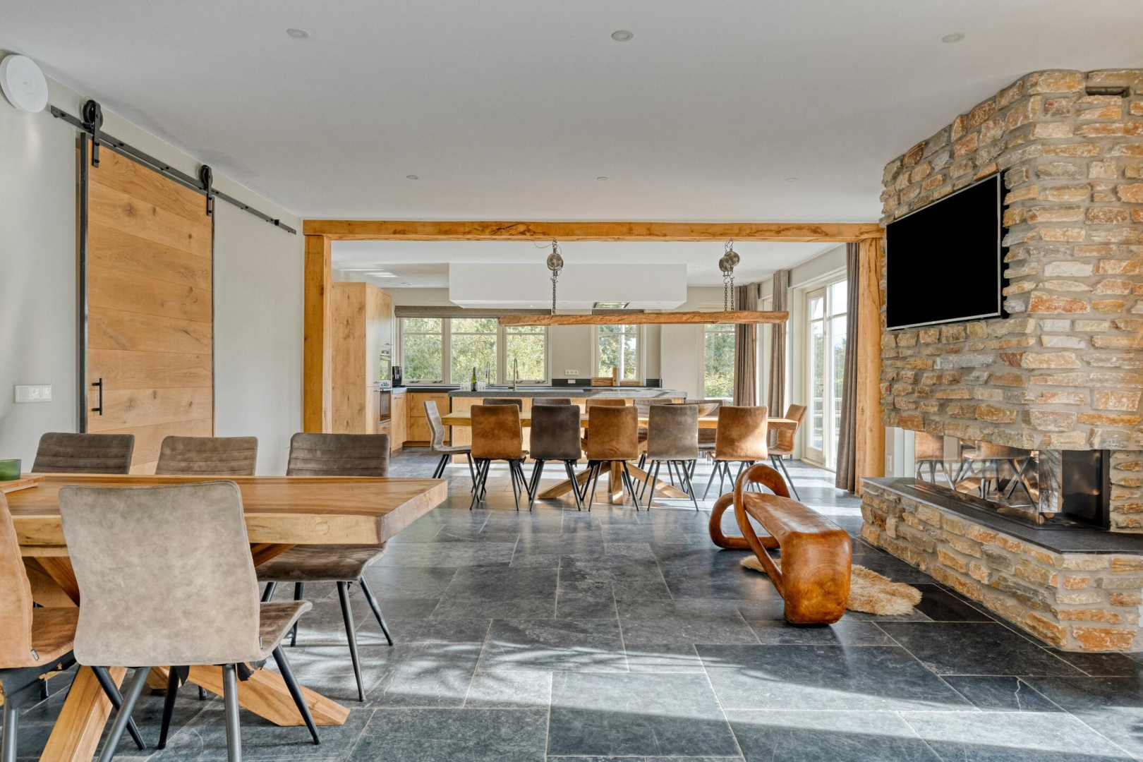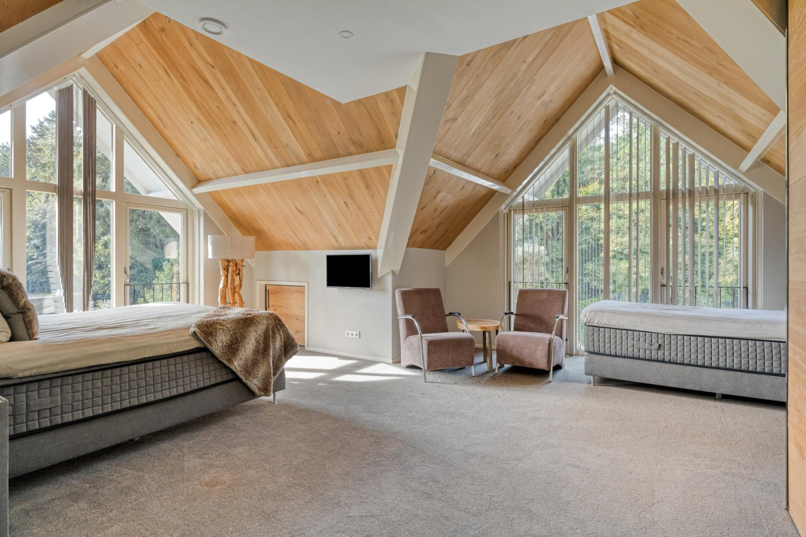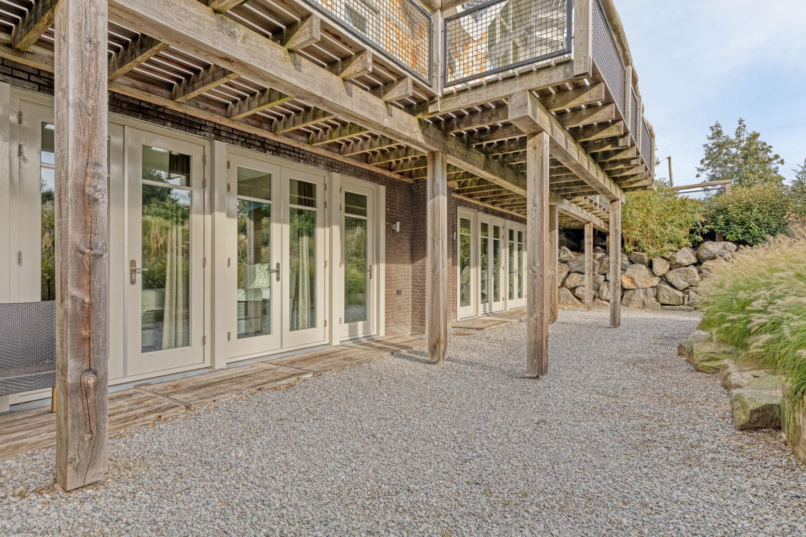 ENGLISH DOWN BELOW Exclusieve villa aan de Nederlandse kust Stelt u zich voor: wonen in een architectonisch meesterwerk, ontworpen door Van Egmond Architecten in samenwerking met de creatieve eigenaar. Hier, waar het zachte ruisen van de duinen uw dagelijkse soundscape vormt, staat de exclusieve villa aan de Duinweg 107, een woning die een ongeëvenaarde woonervaring biedt. Deze villa is geen onbekende voor de kijker. Het was het decor voor het populaire programma Married at First Sight en speelde een hoofdrol in de spraakmakende Vlaamse serie Le Chalet. Hier heeft u niet alleen een huis, u bezit een stukje cultureel erfgoed dat garant staat voor stijl en klasse. Puur vijfsterrencomfort in een adembenemende setting. Deze villa ademt ruimte en verfijning, waarbij natuurlijke materialen de toon zetten. Met een royale indeling, luxe voorzieningen en een panoramisch uitzicht dat overgaat in bos en duin, beleeft u hier elke dag het ultieme vakantiegevoel. Een oase van rust en privacy, op slechts enkele minuten van de bruisende boulevard en het strand van Noordwijk. Deze stijlvolle en volledig ingerichte villa gelegen op een royaal recreatief perceel van 2.775 m² is bijzonder duurzaam met energielabel A++ en beschikt over zeven slaapkamers, elk voorzien van een eigen badkamer en satelliet-tv. Daarmee is de woning ideaal voor groepen, families of zakelijke verblijven. Ook biedt het hierdoor uitstekende verhuurmogelijkheden, waardoor het een aantrekkelijke investering is. Indeling begane grond: Entree/Hal: Via een prachtige eikenhouten deur betreedt u de woning. In de hal bevinden zich het separate toilet, de bijkeuken met opstelplaats voor de wasapparatuur en het trappenhuis naar het souterrain en de eerste verdieping. De gehele verdieping is voorzien van een fraaie natuurstenen vloer, wat bijdraagt aan de luxe en stijlvolle uitstraling van de woning. Vanuit de hal heeft u via openslaande deuren toegang tot de keuken, en middels eikenhouten schuifbare loft deuren bereikt u de sfeervolle woonkamer. Living: De woonkamer is een sfeervolle en lichte ruimte, voorzien van een moderne gashaard en comfortabele vloerverwarming, wat bijdraagt aan het aangename woonklimaat, ook in de wintermaanden. De ruimte wordt omringd door maar liefst zes (openslaande) deuren naar het terras, waardoor binnen en buiten naadloos in elkaar overlopen. Dankzij de vele ramen en deuren is de woonkamer bijzonder licht en voelt deze open en ruimtelijk aan. De combinatie van hout- en natuurelementen, geeft de ruimte een warme, bijna mediterrane sfeer, stijlvol, uitnodigend en karaktervol. Daarnaast zijn er al aansluitingen voorbereid voor het ophangen van een beamer, wat deze ruimte ook zeer geschikt maakt voor filmavonden of presentaties. Woonkeuken: Aangrenzend bevindt zich de ruime en volledig uitgeruste leefkeuken, waar koken en samenkomen perfect combineren. De keuken is voorzien van hoogwaardige inbouwapparatuur, waaronder twee inductiekookplaten, een plafondafzuigkap, twee vaatwassers, een koelkast, een oven, een combi-oven en twee spoelbakken. Daarnaast is er een kleine bar met drie barkrukken, ideaal voor een snel ontbijt of een goed glas wijn tijdens het koken. Uiteraard is er volop opbergruimte dankzij de vele lades en kasten. De aangrenzende eethoek biedt plaats aan maar liefst 18 personen en vormt daarmee de perfecte plek voor gezellige diners, spelletjesavonden of lange gesprekken met familie en vrienden. Indeling Souterrain: De benedenverdieping biedt vier smaakvol ingerichte slaapkamers, waarvan twee ruimer van opzet zijn en twee iets compacter. Drie van de vier kamers hebben via openslaande deuren direct toegang tot het terras. Alle slaapkamers zijn voorzien van een moderne pvc-vloer, vloerverwarming, satelliet-tv én ingebouwde kasten. Daarnaast beschikt elke kamer over een eigen badkamer met douche, wastafel en toilet. Op de centrale overloop bevindt zich een inloop linnenkast, en daarnaast is er een aparte technische ruimte met opstelplaats voor de ketel, warmtepomp, nano-panelen (zonnecollectoren) en twee boilers van elk 500 liter. Deze berging biedt tevens extra opslagruimte. Indeling 1e verdieping: Op de bovenste verdieping bevinden zich drie sfeervolle slaapkamers, elk met een hoog plafond, veel natuurlijk licht en een comfortabele indeling. Twee van de drie kamers zijn ingericht met zowel een tweepersoons- als een eenpersoonsbed. De derde kamer beschikt enkel over een tweepersoonsbed. Alle kamers zijn afgewerkt met zachte vloerbedekking, wat zorgt voor een warme en aangename sfeer. Daarnaast is er praktische opbergruimte aanwezig. Elke slaapkamer beschikt over een eigen badkamer met douche, wastafel en toilet. Eén van de badkamers is bovendien voorzien van een ligbad, wat zorgt voor extra comfort en luxe. Deze verdieping is perfect voor gezinnen met kinderen of voor gasten die wat meer rust en privacy wensen. Tuin: De villa is omringd door een professioneel ontworpen, fraai aangelegde tuin die in elk seizoen rust en luxe uitstraalt. Het tuinontwerp is afkomstig van een landschapsarchitect en is met veel zorg aangelegd en onderhouden. Diverse terrassen, graspartijen en beschutte zithoeken maken de buitenruimte tot een volwaardige verlenging van het wooncomfort. Centraal in de tuin ligt een indrukwekkende, natuurlijk gefilterde zwemvijver van circa 3 meter diep, compleet met een klein zandstrandje en comfortabele ligbedden, een perfecte plek om op warme dagen te ontspannen. Langs het pad dat van de villa naar de zwemvijver loopt, zorgen sfeervolle fakkels voor een bijzondere ambiance in de avonduren. Onder een ruime overkapping bevindt zich een luxe wellnesshoek met een jacuzzi, een sauna, een comfortabele zithoek, een douche en een toilet. Hier kunt u het hele jaar door in alle privacy genieten van ontspanning en comfort. Achter de overkapping leidt een pad direct het bos met aansluitend duingebied in, ideaal voor een ochtendwandeling of even ontsnappen in de natuur. Naast de wellness faciliteiten is e