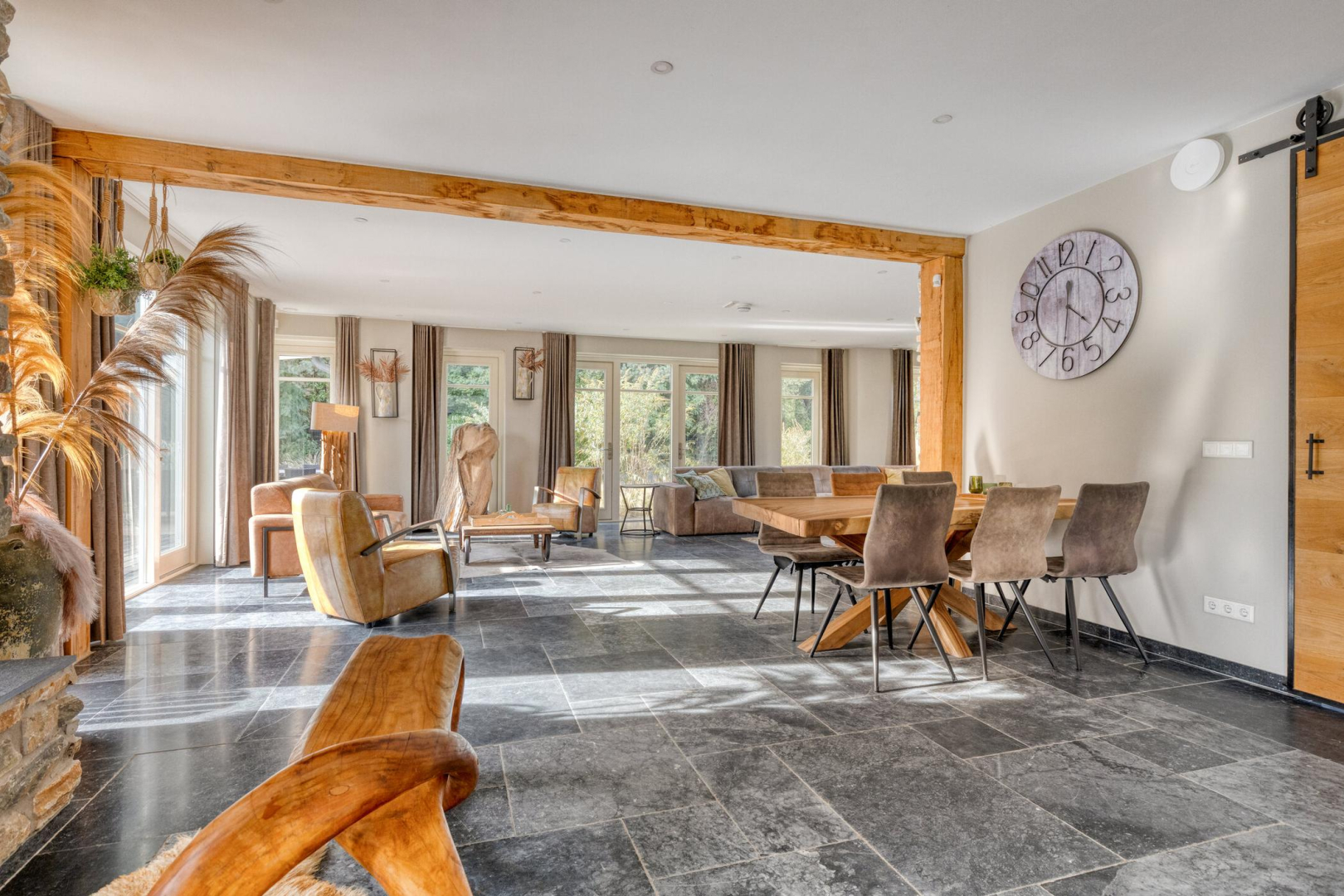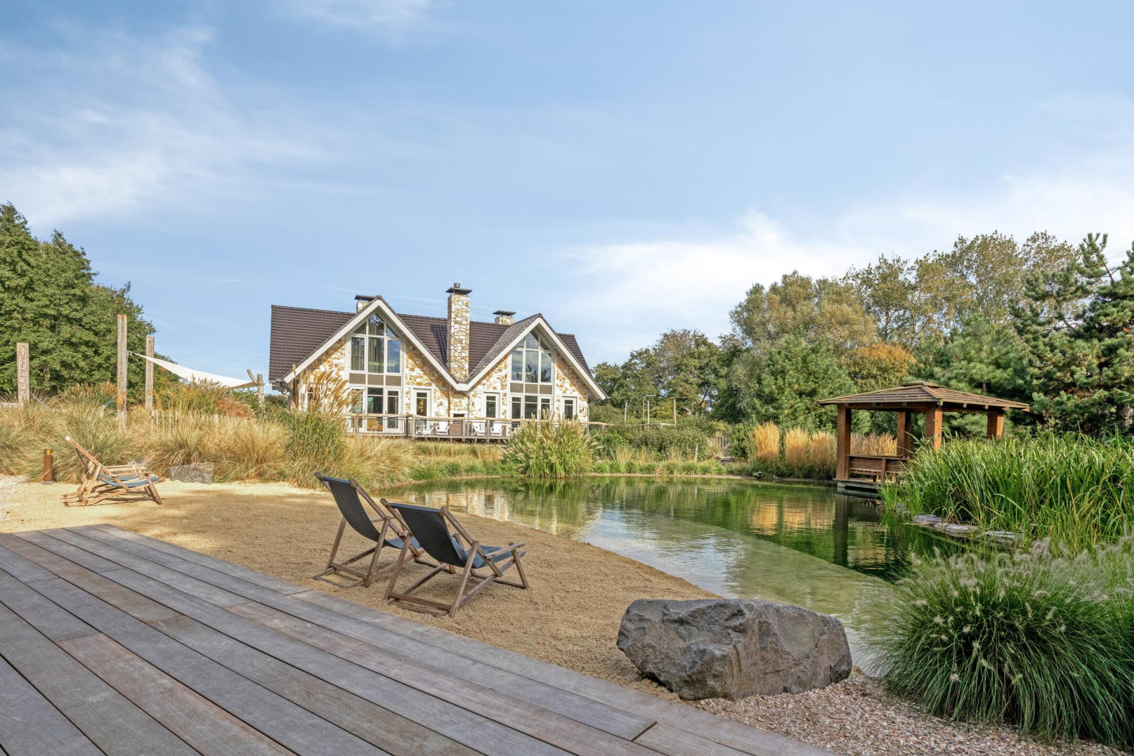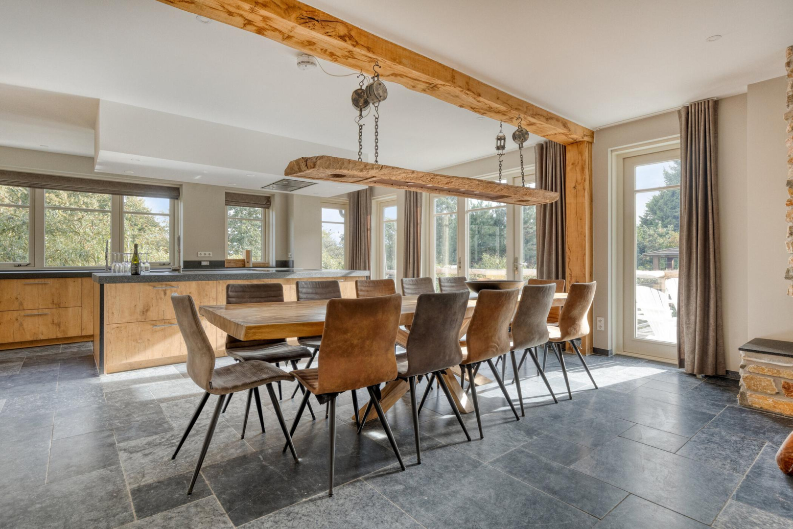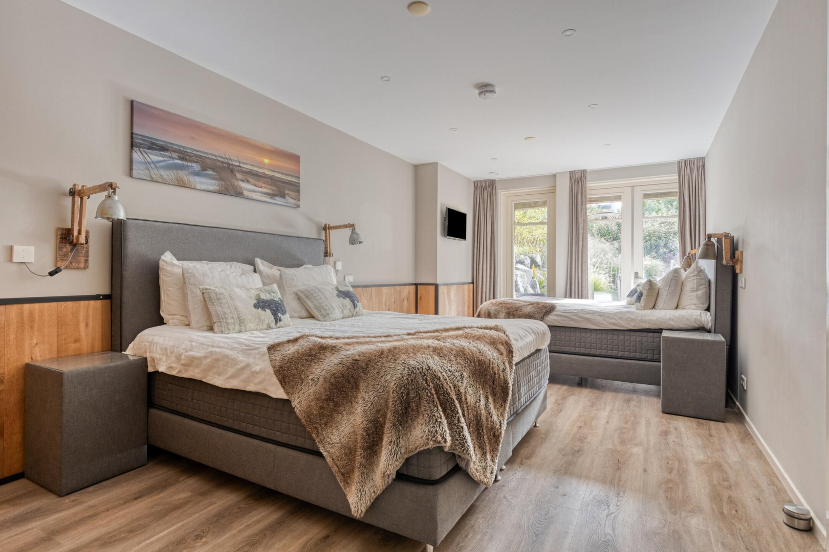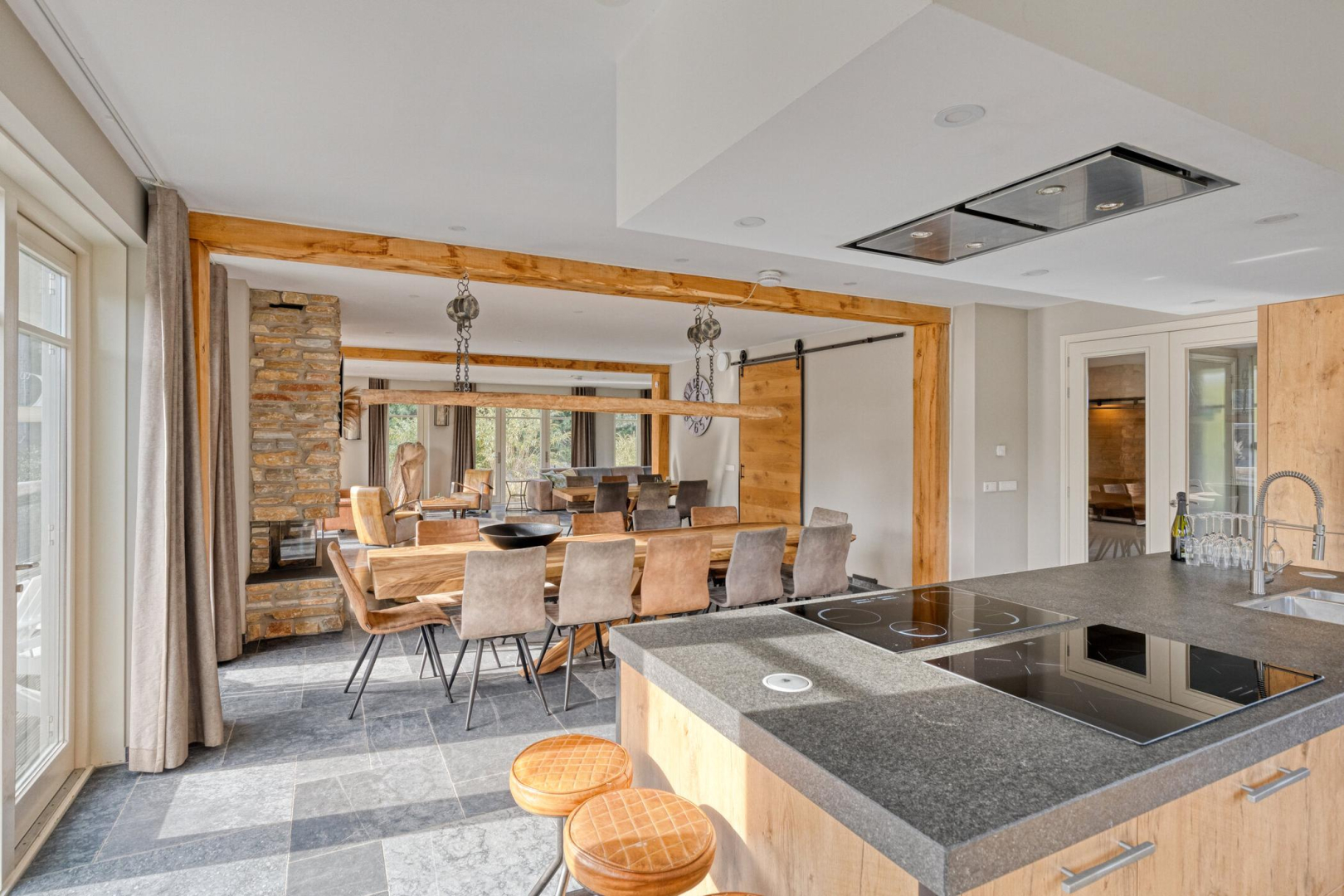 ENGLISH DOWN BELOW Exclusieve villa aan de Nederlandse kust Stelt u zich voor: wonen in een architectonisch meesterwerk, ontworpen door Van Egmond Architecten in samenwerking met de creatieve eigenaar. Hier, waar het zachte ruisen van de duinen uw dagelijkse soundscape vormt, staat de exclusieve villa aan de Duinweg 107, een woning die een ongeëvenaarde woonervaring biedt. Deze villa is geen onbekende voor de kijker. Het was het decor voor het populaire programma Married at First Sight en speelde een hoofdrol in de spraakmakende Vlaamse serie Le Chalet. Hier heeft u niet alleen een huis, u bezit een stukje cultureel erfgoed dat garant staat voor stijl en klasse. Puur vijfsterrencomfort in een adembenemende setting. Deze villa ademt ruimte en verfijning, waarbij natuurlijke materialen de toon zetten. Met een royale indeling, luxe voorzieningen en een panoramisch uitzicht dat overgaat in bos en duin, beleeft u hier elke dag het ultieme vakantiegevoel. Een oase van rust en privacy, op slechts enkele minuten van de bruisende boulevard en het strand van Noordwijk. Deze stijlvolle en volledig ingerichte villa gelegen op een royaal recreatief perceel van 2.775 m² is bijzonder duurzaam met energielabel A++ en beschikt over zeven slaapkamers, elk voorzien van een eigen badkamer en satelliet-tv. Daarmee is de woning ideaal voor groepen, families of zakelijke verblijven. Ook biedt het hierdoor uitstekende verhuurmogelijkheden, waardoor het een aantrekkelijke investering is. Indeling begane grond: Entree/Hal: Via een prachtige eikenhouten deur betreedt u de woning. In de hal bevinden zich het separate toilet, de bijkeuken met opstelplaats voor de wasapparatuur en het trappenhuis naar het souterrain en de eerste verdieping. De gehele verdieping is voorzien van een fraaie natuurstenen vloer, wat bijdraagt aan de luxe en stijlvolle uitstraling van de woning. Vanuit de hal heeft u via openslaande deuren toegang tot de keuken, en middels eikenhouten schuifbare loft deuren bereikt u de sfeervolle woonkamer. Living: De woonkamer is een sfeervolle en lichte ruimte, voorzien van een moderne gashaard en comfortabele vloerverwarming, wat bijdraagt aan het aangename woonklimaat, ook in de wintermaanden. De ruimte wordt omringd door maar liefst zes (openslaande) deuren naar het terras, waardoor binnen en buiten naadloos in elkaar overlopen. Dankzij de vele ramen en deuren is de woonkamer bijzonder licht en voelt deze open en ruimtelijk aan. De combinatie van hout- en natuurelementen, geeft de ruimte een warme, bijna mediterrane sfeer, stijlvol, uitnodigend en karaktervol. Daarnaast zijn er al aansluitingen voorbereid voor het ophangen van een beamer, wat deze ruimte ook zeer geschikt maakt voor filmavonden of presentaties. Woonkeuken: Aangrenzend bevindt zich de ruime en volledig uitgeruste leefkeuken, waar koken en samenkomen perfect combineren. De keuken is voorzien van hoogwaardige inbouwapparatuur, waaronder twee inductiekookplaten, een plafondafzuigkap, twee vaatwassers, een koelkast, een oven, een combi-oven en twee spoelbakken. Daarnaast is er een kleine bar met drie barkrukken, ideaal voor een snel ontbijt of een goed glas wijn tijdens het koken. Uiteraard is er volop opbergruimte dankzij de vele lades en kasten. De aangrenzende eethoek biedt plaats aan maar liefst 18 personen en vormt daarmee de perfecte plek voor gezellige diners, spelletjesavonden of lange gesprekken met familie en vrienden. Indeling Souterrain: De benedenverdieping biedt vier smaakvol ingerichte slaapkamers, waarvan twee ruimer van opzet zijn en twee iets compacter. Drie van de vier kamers hebben via openslaande deuren direct toegang tot het terras. Alle slaapkamers zijn voorzien van een moderne pvc-vloer, vloerverwarming, satelliet-tv én ingebouwde kasten. Daarnaast beschikt elke kamer over een eigen badkamer met douche, wastafel en toilet. Op de centrale overloop bevindt zich een inloop linnenkast, en daarnaast is er een aparte technische ruimte met opstelplaats voor de ketel, warmtepomp, nano-panelen (zonnecollectoren) en twee boilers van elk 500 liter. Deze berging biedt tevens extra opslagruimte. Indeling 1e verdieping: Op de bovenste verdieping bevinden zich drie sfeervolle slaapkamers, elk met een hoog plafond, veel natuurlijk licht en een comfortabele indeling. Twee van de drie kamers zijn ingericht met zowel een tweepersoons- als een eenpersoonsbed. De derde kamer beschikt enkel over een tweepersoonsbed. Alle kamers zijn afgewerkt met zachte vloerbedekking, wat zorgt voor een warme en aangename sfeer. Daarnaast is er praktische opbergruimte aanwezig. Elke slaapkamer beschikt over een eigen badkamer met douche, wastafel en toilet. Eén van de badkamers is bovendien voorzien van een ligbad, wat zorgt voor extra comfort en luxe. Deze verdieping is perfect voor gezinnen met kinderen of voor gasten die wat meer rust en privacy wensen. Tuin: De villa is omringd door een professioneel ontworpen, fraai aangelegde tuin die in elk seizoen rust en luxe uitstraalt. Het tuinontwerp is afkomstig van een landschapsarchitect en is met veel zorg aangelegd en onderhouden. Diverse terrassen, graspartijen en beschutte zithoeken maken de buitenruimte tot een volwaardige verlenging van het wooncomfort. Centraal in de tuin ligt een indrukwekkende, natuurlijk gefilterde zwemvijver van circa 3 meter diep, compleet met een klein zandstrandje en comfortabele ligbedden, een perfecte plek om op warme dagen te ontspannen. Langs het pad dat van de villa naar de zwemvijver loopt, zorgen sfeervolle fakkels voor een bijzondere ambiance in de avonduren. Onder een ruime overkapping bevindt zich een luxe wellnesshoek met een jacuzzi, een sauna, een comfortabele zithoek, een douche en een toilet. Hier kunt u het hele jaar door in alle privacy genieten van ontspanning en comfort. Achter de overkapping leidt een pad direct het bos met aansluitend duingebied in, ideaal voor een ochtendwandeling of even ontsnappen in de natuur. Naast de wellness faciliteiten is e