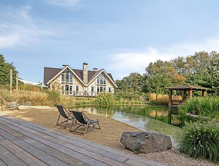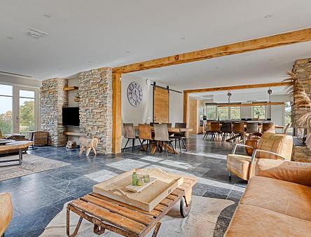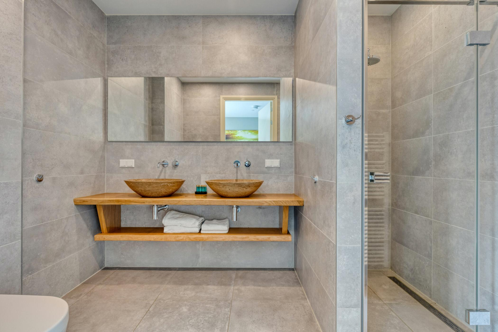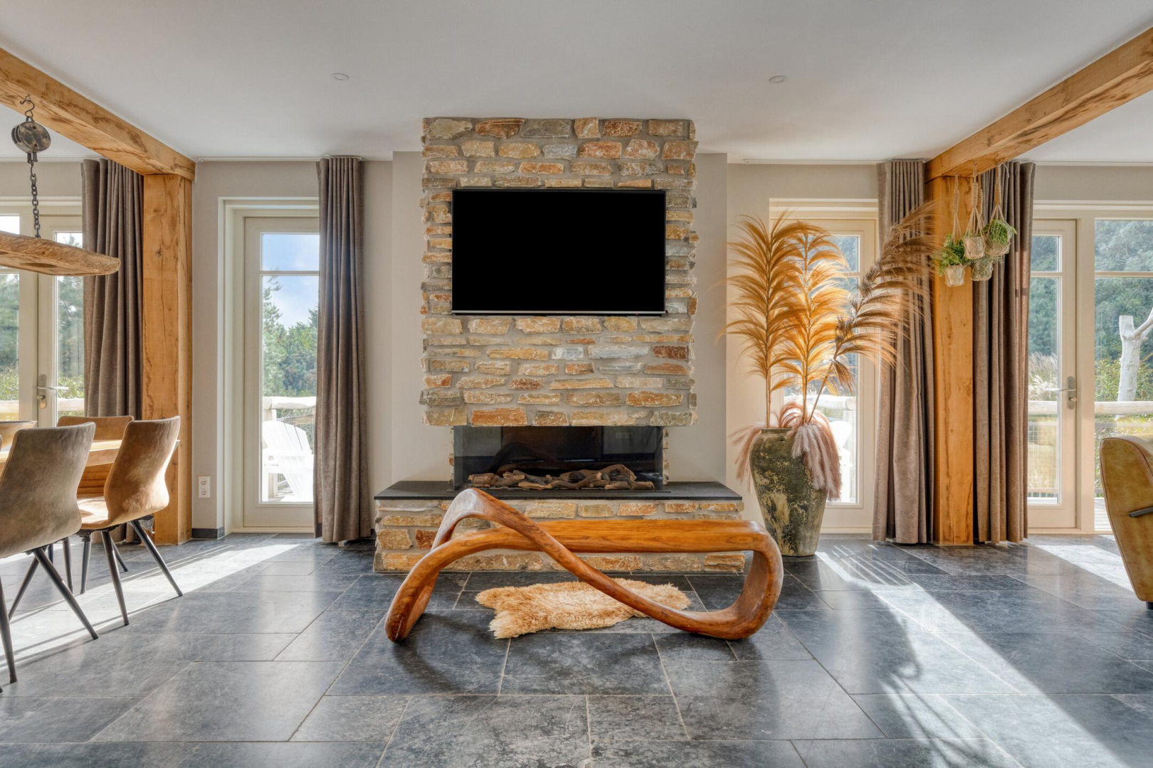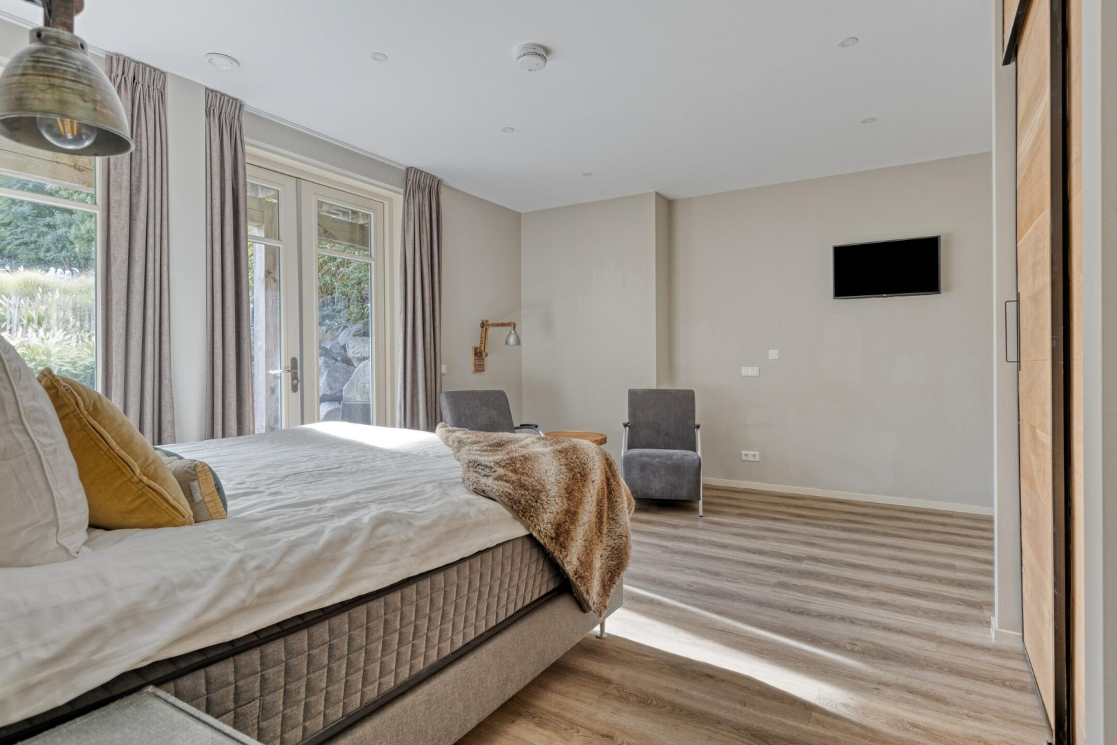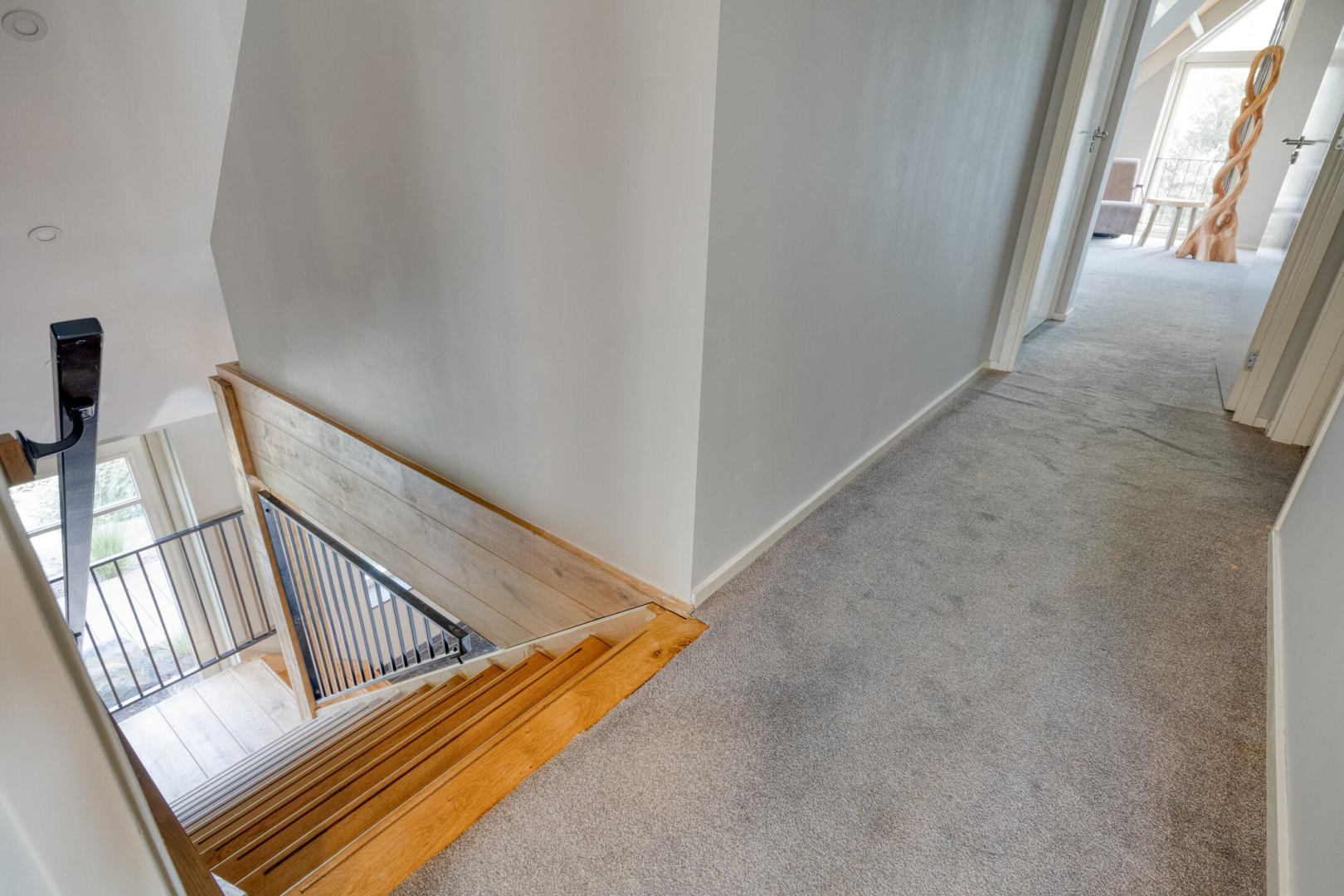 ENGLISH DOWN BELOW Exclusieve villa aan de Nederlandse kust Stelt u zich voor: wonen in een architectonisch meesterwerk, ontworpen door Van Egmond Architecten in samenwerking met de creatieve eigenaar. Hier, waar het zachte ruisen van de duinen uw dagelijkse soundscape vormt, staat de exclusieve villa aan de Duinweg 107, een woning die een ongeëvenaarde woonervaring biedt. Deze villa is geen onbekende voor de kijker. Het was het decor voor het populaire programma Married at First Sight en speelde een hoofdrol in de spraakmakende Vlaamse serie Le Chalet. Hier heeft u niet alleen een huis, u bezit een stukje cultureel erfgoed dat garant staat voor stijl en klasse. Puur vijfsterrencomfort in een adembenemende setting. Deze villa ademt ruimte en verfijning, waarbij natuurlijke materialen de toon zetten. Met een royale indeling, luxe voorzieningen en een panoramisch uitzicht dat overgaat in bos en duin, beleeft u hier elke dag het ultieme vakantiegevoel. Een oase van rust en privacy, op slechts enkele minuten van de bruisende boulevard en het strand van Noordwijk. Deze stijlvolle en volledig ingerichte villa gelegen op een royaal recreatief perceel van 2.775 m² is bijzonder duurzaam met energielabel A++ en beschikt over zeven slaapkamers, elk voorzien van een eigen badkamer en satelliet-tv. Daarmee is de woning ideaal voor groepen, families of zakelijke verblijven. Ook biedt het hierdoor uitstekende verhuurmogelijkheden, waardoor het een aantrekkelijke investering is. Indeling begane grond: Entree/Hal: Via een prachtige eikenhouten deur betreedt u de woning. In de hal bevinden zich het separate toilet, de bijkeuken met opstelplaats voor de wasapparatuur en het trappenhuis naar het souterrain en de eerste verdieping. De gehele verdieping is voorzien van een fraaie natuurstenen vloer, wat bijdraagt aan de luxe en stijlvolle uitstraling van de woning. Vanuit de hal heeft u via openslaande deuren toegang tot de keuken, en middels eikenhouten schuifbare loft deuren bereikt u de sfeervolle woonkamer. Living: De woonkamer is een sfeervolle en lichte ruimte, voorzien van een moderne gashaard en comfortabele vloerverwarming, wat bijdraagt aan het aangename woonklimaat, ook in de wintermaanden. De ruimte wordt omringd door maar liefst zes (openslaande) deuren naar het terras, waardoor binnen en buiten naadloos in elkaar overlopen. Dankzij de vele ramen en deuren is de woonkamer bijzonder licht en voelt deze open en ruimtelijk aan. De combinatie van hout- en natuurelementen, geeft de ruimte een warme, bijna mediterrane sfeer, stijlvol, uitnodigend en karaktervol. Daarnaast zijn er al aansluitingen voorbereid voor het ophangen van een beamer, wat deze ruimte ook zeer geschikt maakt voor filmavonden of presentaties. Woonkeuken: Aangrenzend bevindt zich de ruime en volledig uitgeruste leefkeuken, waar koken en samenkomen perfect combineren. De keuken is voorzien van hoogwaardige inbouwapparatuur, waaronder twee inductiekookplaten, een plafondafzuigkap, twee vaatwassers, een koelkast, een oven, een combi-oven en twee spoelbakken. Daarnaast is er een kleine bar met drie barkrukken, ideaal voor een snel ontbijt of een goed glas wijn tijdens het koken. Uiteraard is er volop opbergruimte dankzij de vele lades en kasten. De aangrenzende eethoek biedt plaats aan maar liefst 18 personen en vormt daarmee de perfecte plek voor gezellige diners, spelletjesavonden of lange gesprekken met familie en vrienden. Indeling Souterrain: De benedenverdieping biedt vier smaakvol ingerichte slaapkamers, waarvan twee ruimer van opzet zijn en twee iets compacter. Drie van de vier kamers hebben via openslaande deuren direct toegang tot het terras. Alle slaapkamers zijn voorzien van een moderne pvc-vloer, vloerverwarming, satelliet-tv én ingebouwde kasten. Daarnaast beschikt elke kamer over een eigen badkamer met douche, wastafel en toilet. Op de centrale overloop bevindt zich een inloop linnenkast, en daarnaast is er een aparte technische ruimte met opstelplaats voor de ketel, warmtepomp, nano-panelen (zonnecollectoren) en twee boilers van elk 500 liter. Deze berging biedt tevens extra opslagruimte. Indeling 1e verdieping: Op de bovenste verdieping bevinden zich drie sfeervolle slaapkamers, elk met een hoog plafond, veel natuurlijk licht en een comfortabele indeling. Twee van de drie kamers zijn ingericht met zowel een tweepersoons- als een eenpersoonsbed. De derde kamer beschikt enkel over een tweepersoonsbed. Alle kamers zijn afgewerkt met zachte vloerbedekking, wat zorgt voor een warme en aangename sfeer. Daarnaast is er praktische opbergruimte aanwezig. Elke slaapkamer beschikt over een eigen badkamer met douche, wastafel en toilet. Eén van de badkamers is bovendien voorzien van een ligbad, wat zorgt voor extra comfort en luxe. Deze verdieping is perfect voor gezinnen met kinderen of voor gasten die wat meer rust en privacy wensen. Tuin: De villa is omringd door een professioneel ontworpen, fraai aangelegde tuin die in elk seizoen rust en luxe uitstraalt. Het tuinontwerp is afkomstig van een landschapsarchitect en is met veel zorg aangelegd en onderhouden. Diverse terrassen, graspartijen en beschutte zithoeken maken de buitenruimte tot een volwaardige verlenging van het wooncomfort. Centraal in de tuin ligt een indrukwekkende, natuurlijk gefilterde zwemvijver van circa 3 meter diep, compleet met een klein zandstrandje en comfortabele ligbedden, een perfecte plek om op warme dagen te ontspannen. Langs het pad dat van de villa naar de zwemvijver loopt, zorgen sfeervolle fakkels voor een bijzondere ambiance in de avonduren. Onder een ruime overkapping bevindt zich een luxe wellnesshoek met een jacuzzi, een sauna, een comfortabele zithoek, een douche en een toilet. Hier kunt u het hele jaar door in alle privacy genieten van ontspanning en comfort. Achter de overkapping leidt een pad direct het bos met aansluitend duingebied in, ideaal voor een ochtendwandeling of even ontsnappen in de natuur. Naast de wellness faciliteiten is e