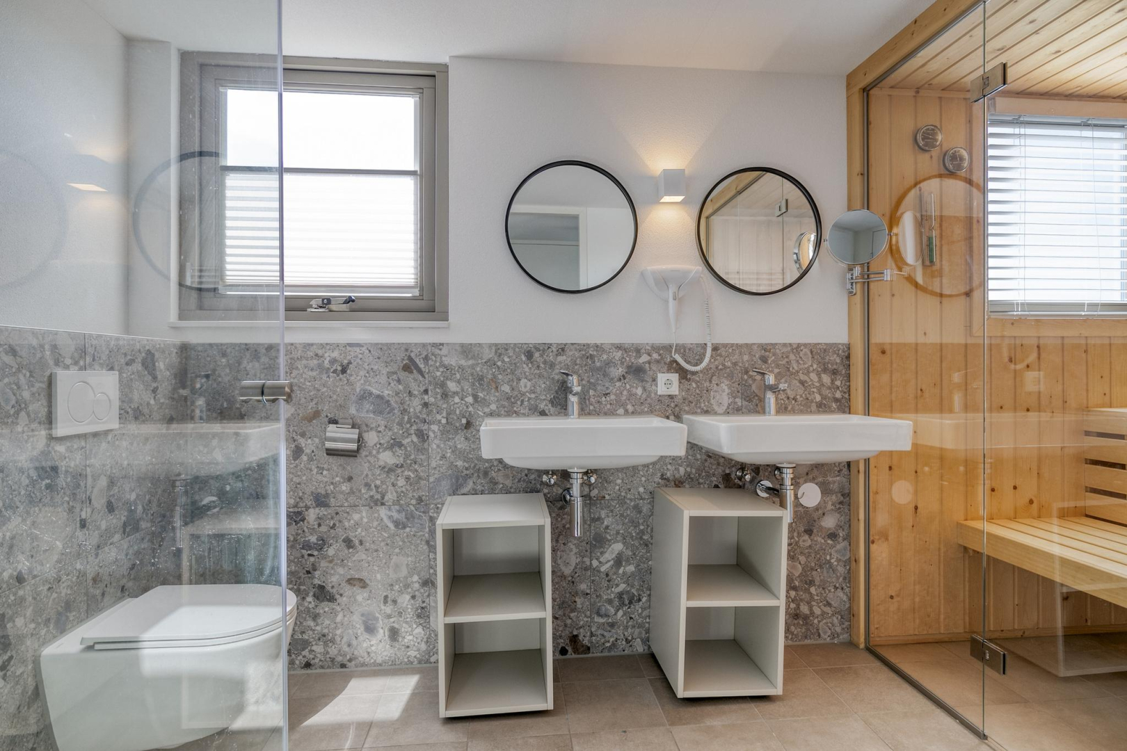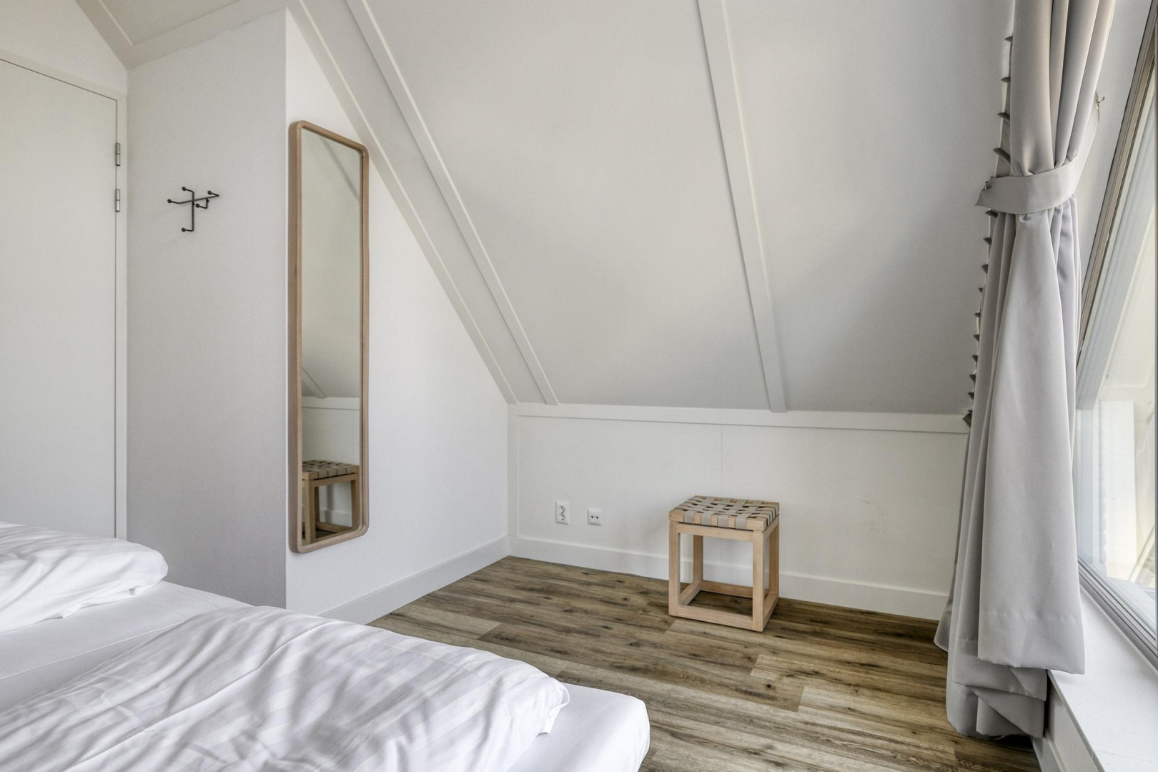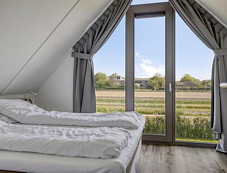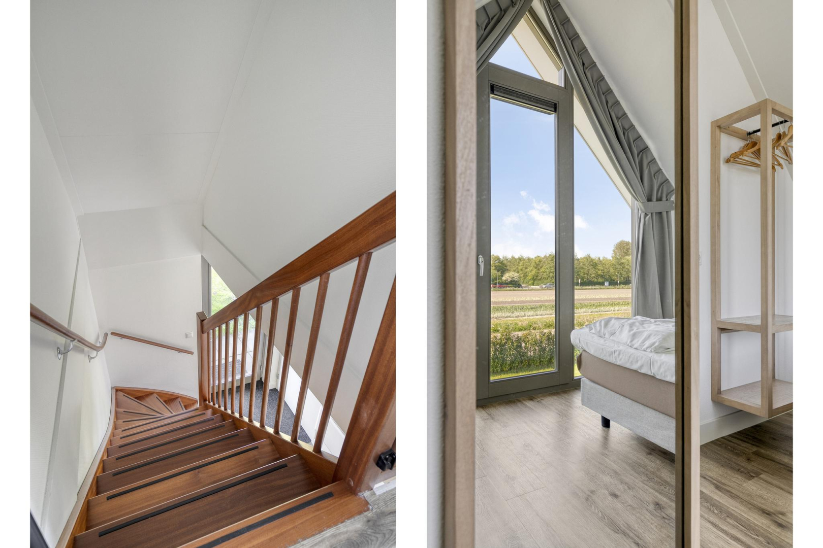 Overloop met berging, welke toegang geeft tot de luxe badkamer, twee ruime slaapkamers met kiepraam. De slaapkamer aan de achterzijde heeft een weids uitzicht over de bollenvelden. De luxe badkamer is voorzien van een sauna, douche, 2e toilet en 2 losse wastafels. Op de gehele verdieping ligt een PVC vloer, op de badkamer na, hier ligt een tegelvloer.