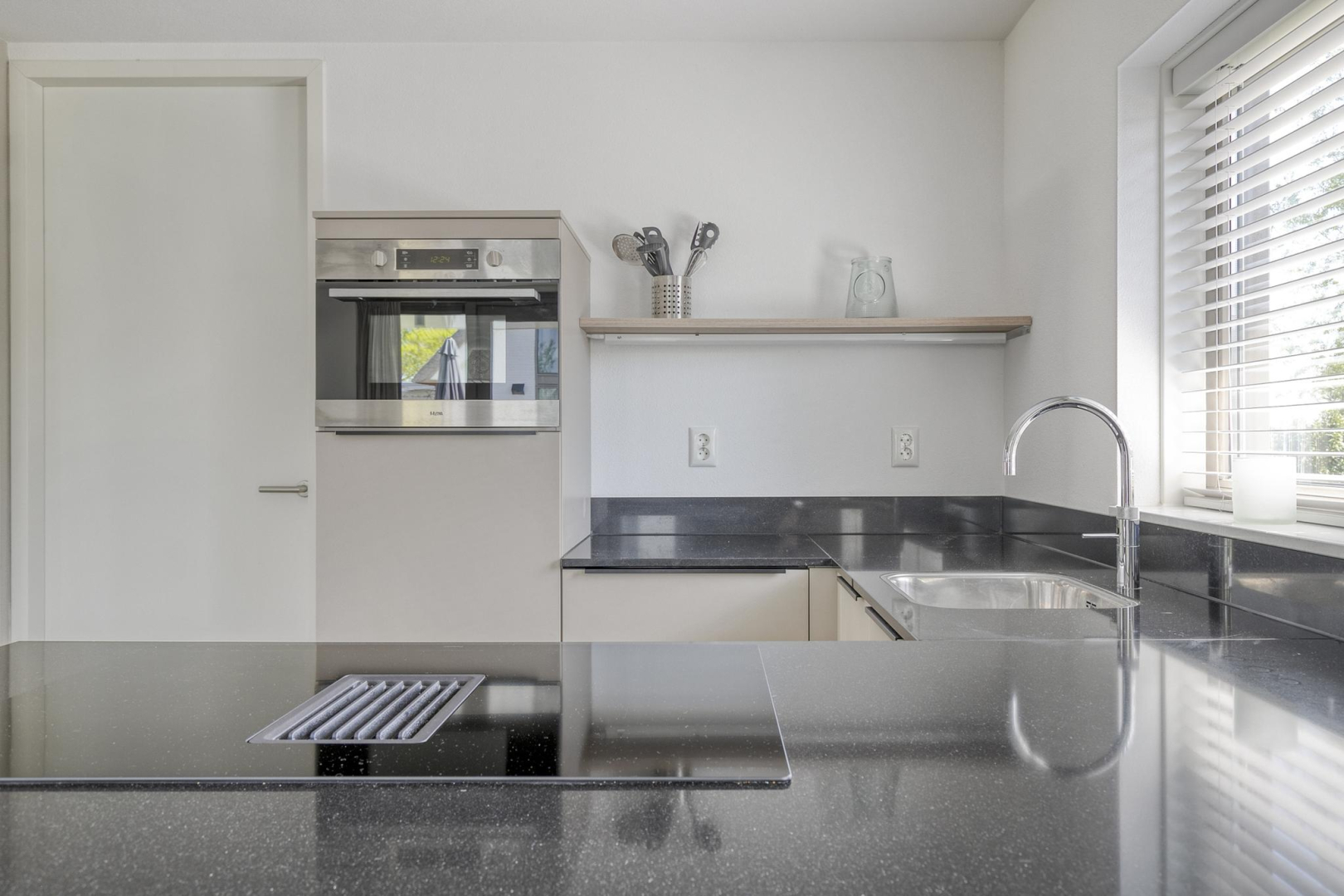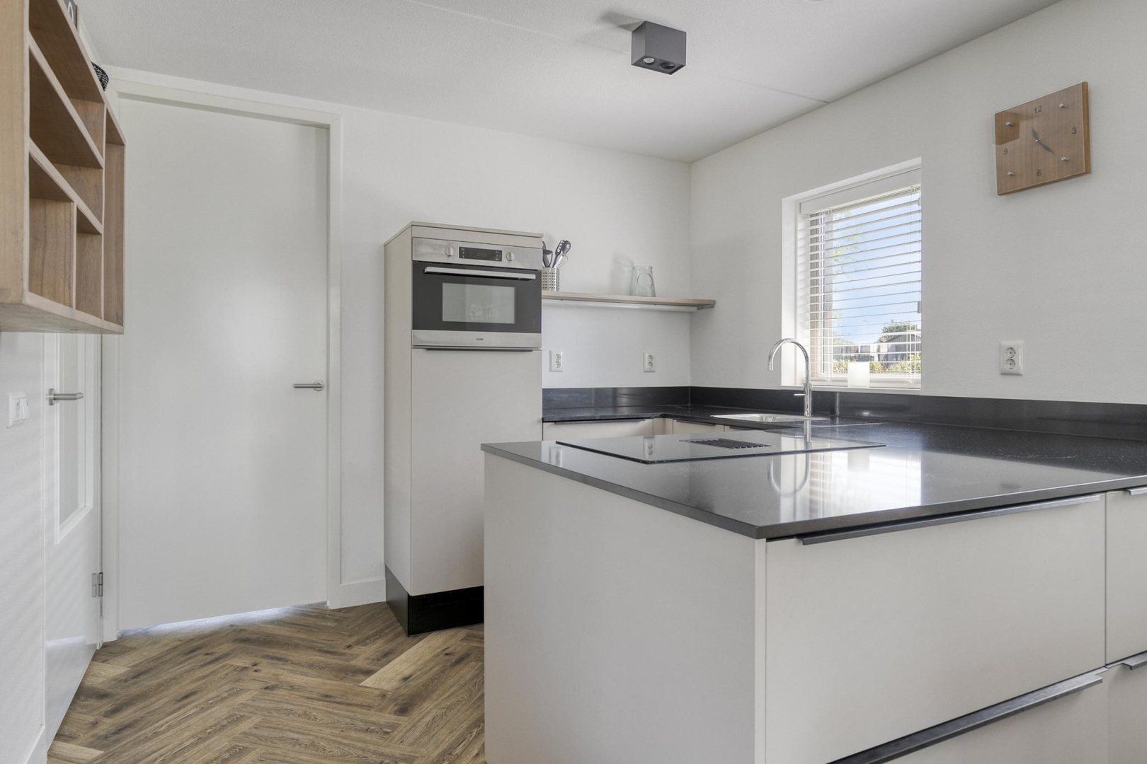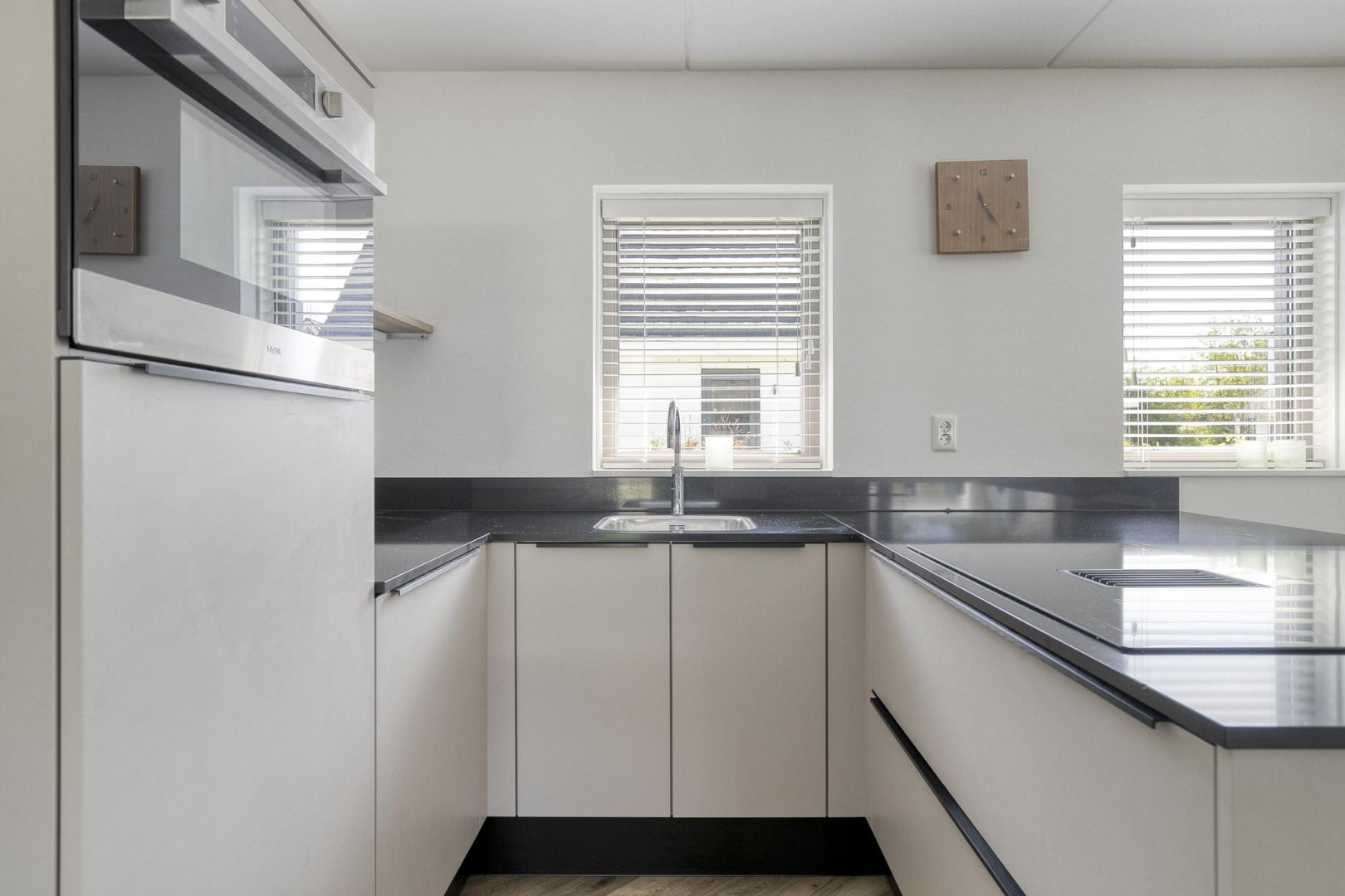 Entree, hal met garderobe, apart toilet met wandcloset, inpandige berging met aansluiting voor de wasapparatuur, boiler, meterkast, omvormer en wasbak met warme en koude kraan. Via de hal komt u in de luxe open keuken met inductiekookplaat, Quooker, vaatwasser, combi oven-magnetron en koelkast met vriesvak. Sfeervolle woonkamer met houtkachel en openslaande deuren naar het terras met veranda en buitenhaard. Op de begane grond vindt u ook nog een slaapkamer met luxe badkamer met een wastafel en sunshower. Op de gehele begane grond ligt een PVC visgraatvloer.