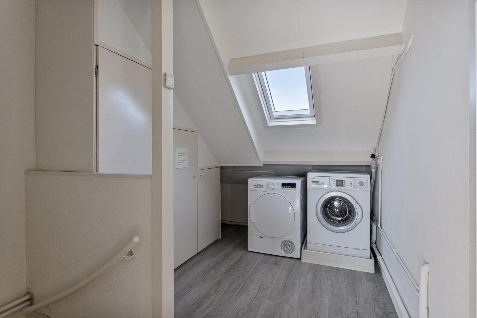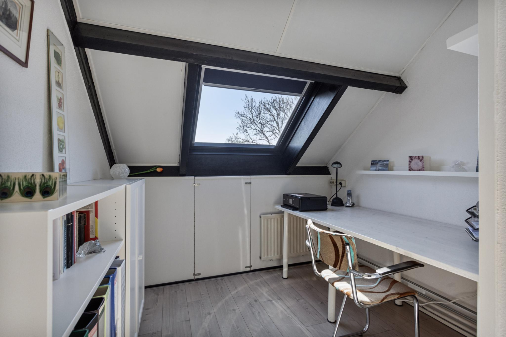 Via een vaste trap bereikt u de zolder met een overloop welke is voorzien van een PVC vloer (2024), vaste kast, opstelplaats voor de cv-ketel en de wasmachine aansluiting. Een 4e slaapkamer/ kantoor met Velux dakraam en een ruime 5e slaapkamer met wastafelmeubel, dakkapel en eveneens een Velux dakraam. Deze kamers zijn voorzien van een nette laminaatvloer.