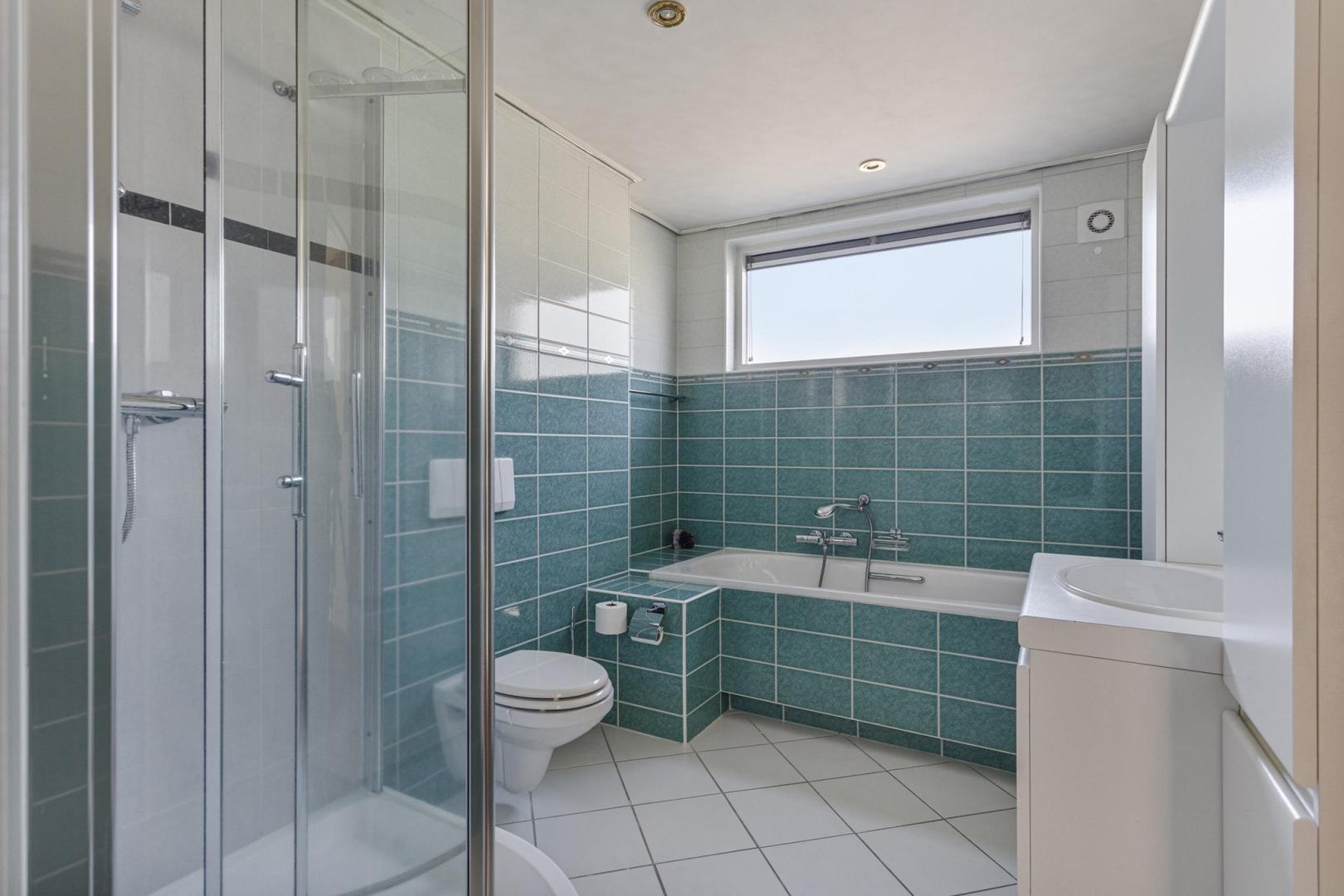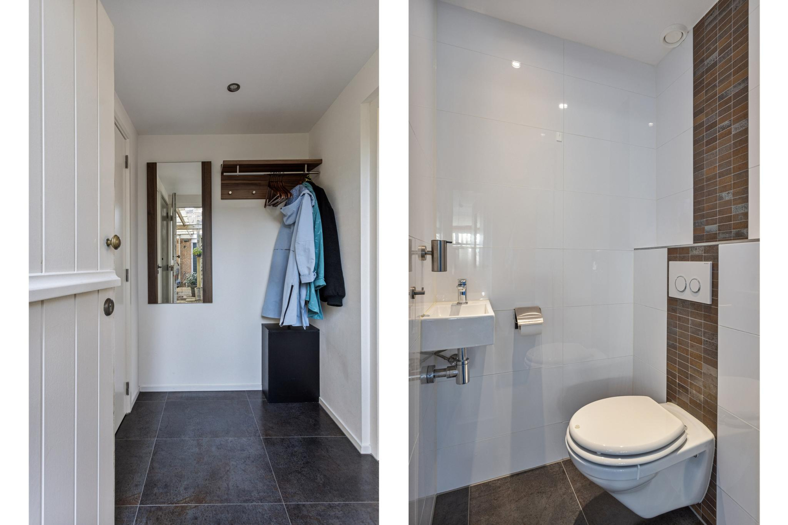 Vloerverwarming in de hal en het toilet beneden;