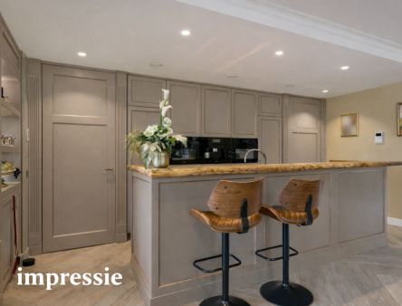 Luxe keuken met maatwerk kastenwanden en hoogwaardige apparatuur;