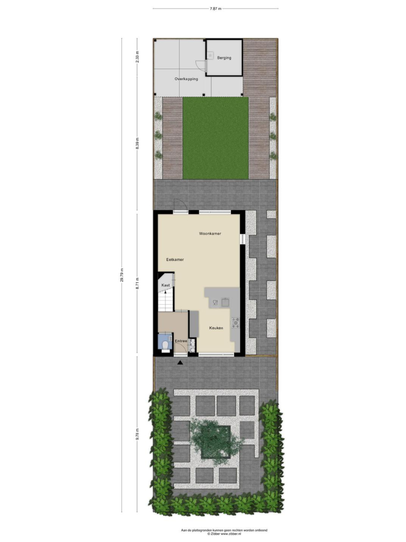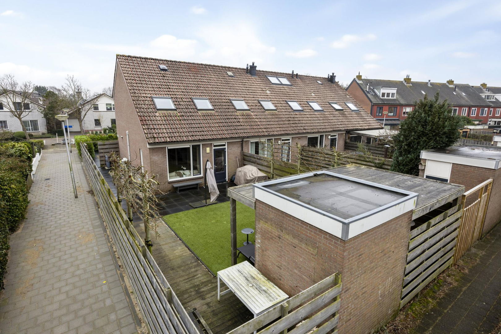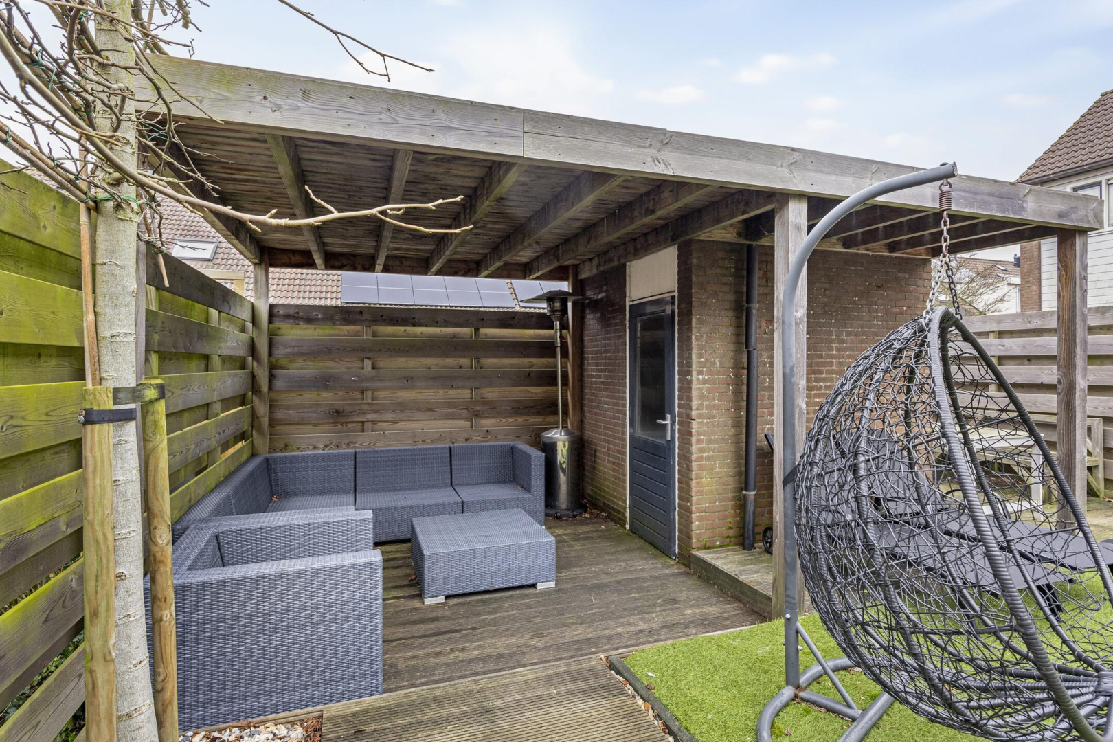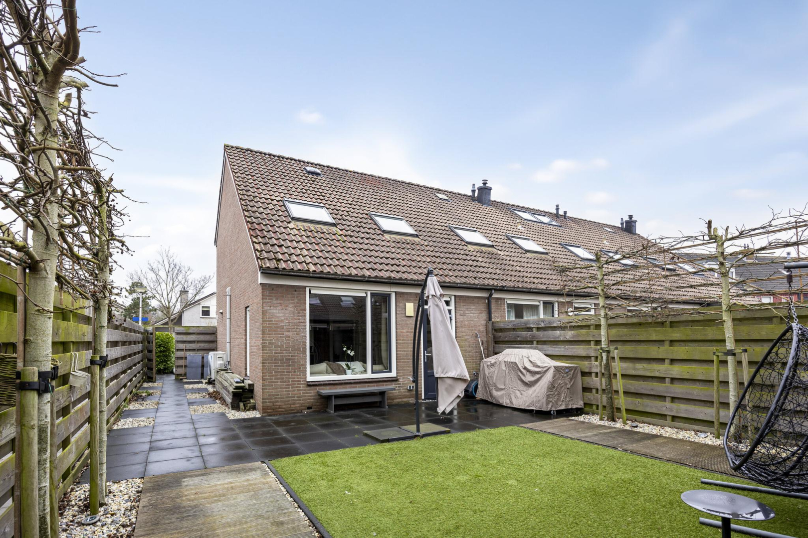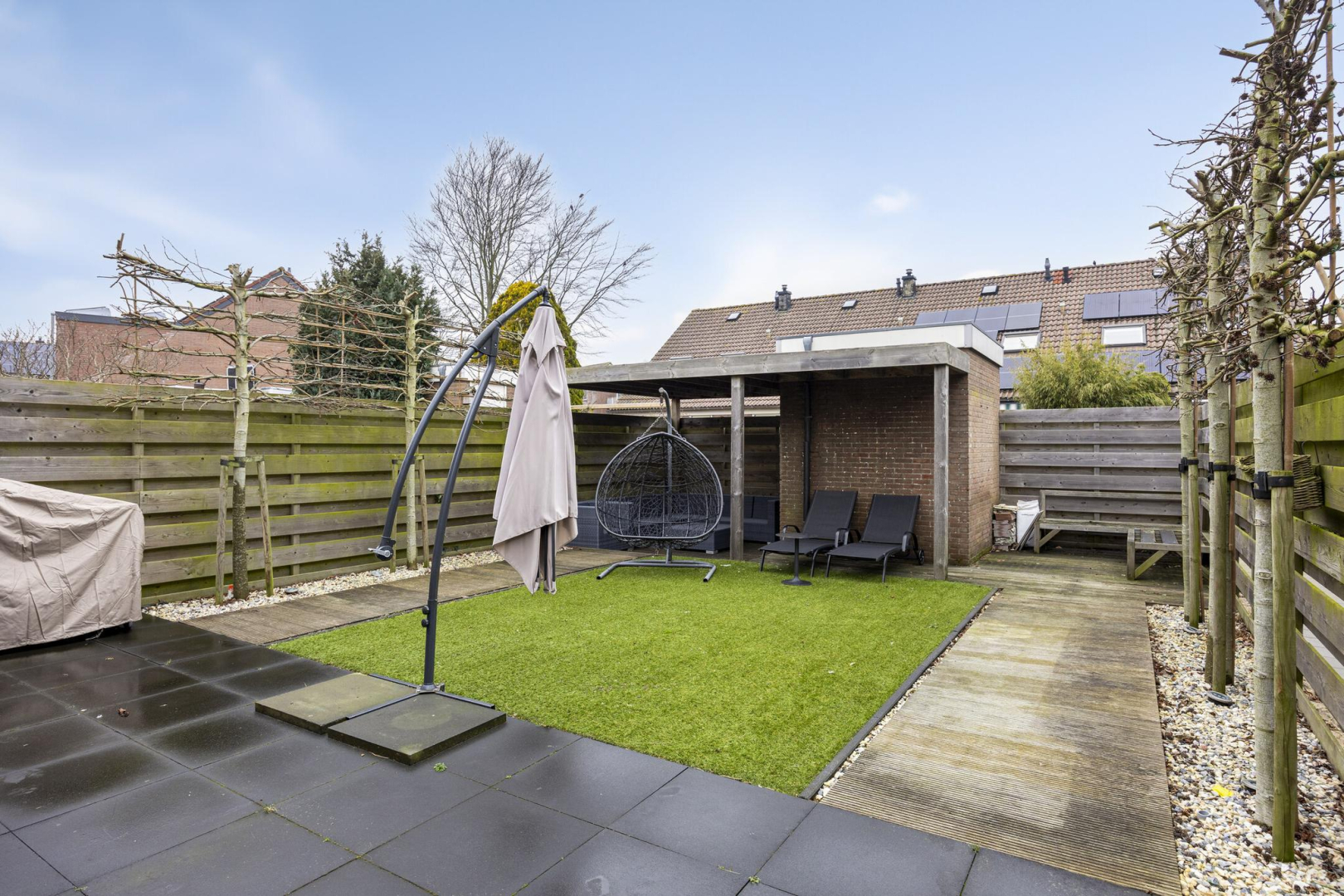 De voortuin is op het zuiden gelegen en biedt door de groen blijvende haag veel privacy. Via de voortuin kunt u langs de woning lopen en komt u in de brede en diepe achtertuin waar zich een veranda en stenen vrijstaande berging bevinden. Voor- en achtertuin zijn onderhoudsvriendelijk aangelegd en bieden veel privacy.
