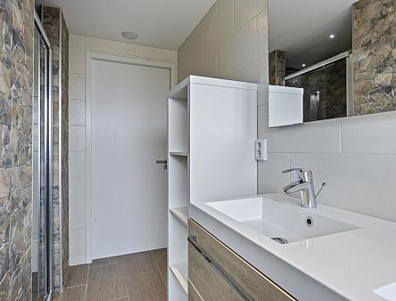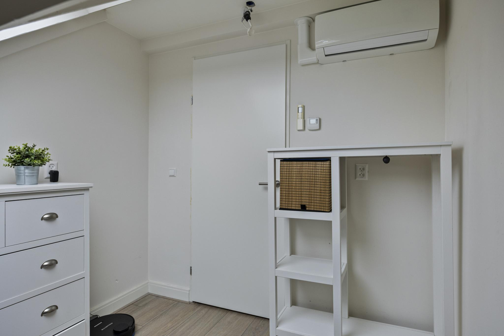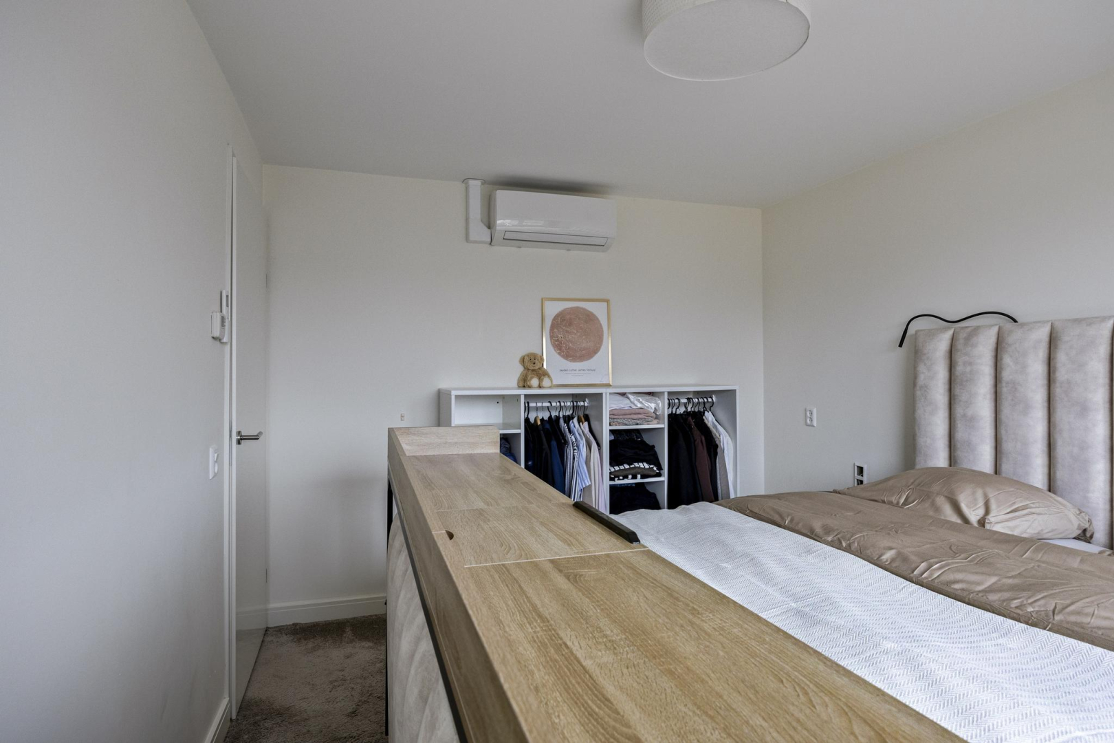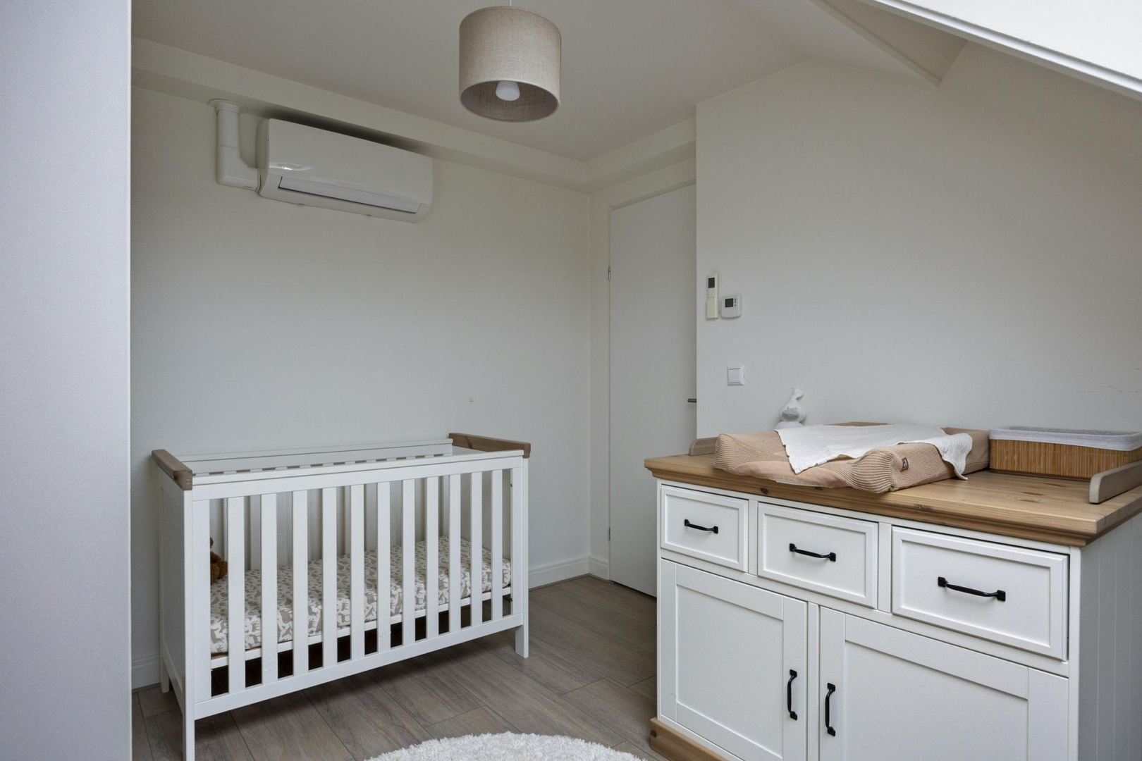 Overloop, 2 slaapkamers aan de achterzijde van de woning met beide een dakraam en extra bergruimte achter de knieschotten. Aan de voorzijde bevindt zich de ruime master bedroom en de luxe badkamer welke is voorzien van vloerverwarming, een ruime doucheruimte met dubbele douche, een dubbel wastafelmeubel, wandcloset, handdoekradiator en speakers.
