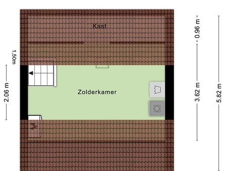 Via een ‘vaste’ trap komt u op de zolderverdieping. Hier bevinden zich de aansluitingen voor de wasapparatuur, het centrale stofzuigsysteem, de Nefit CV ketel en extra boiler.