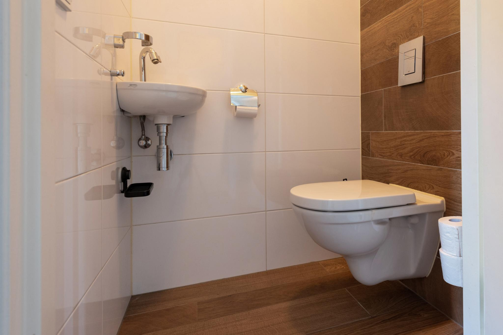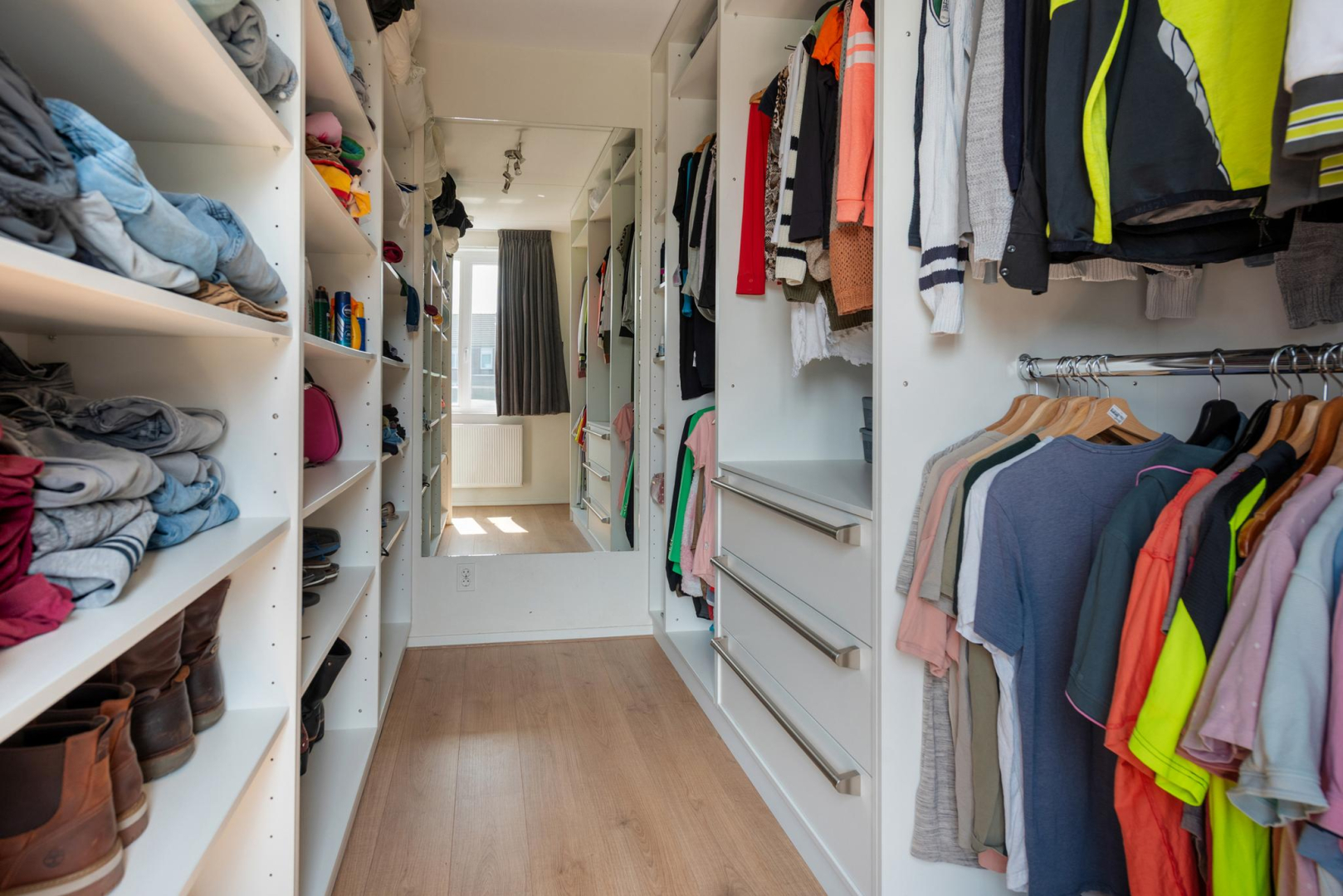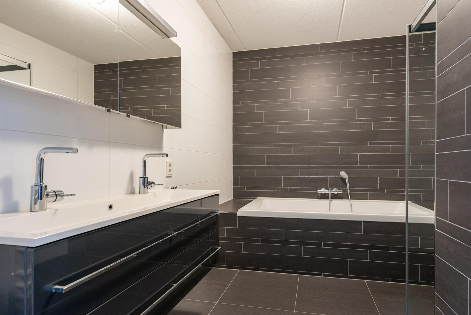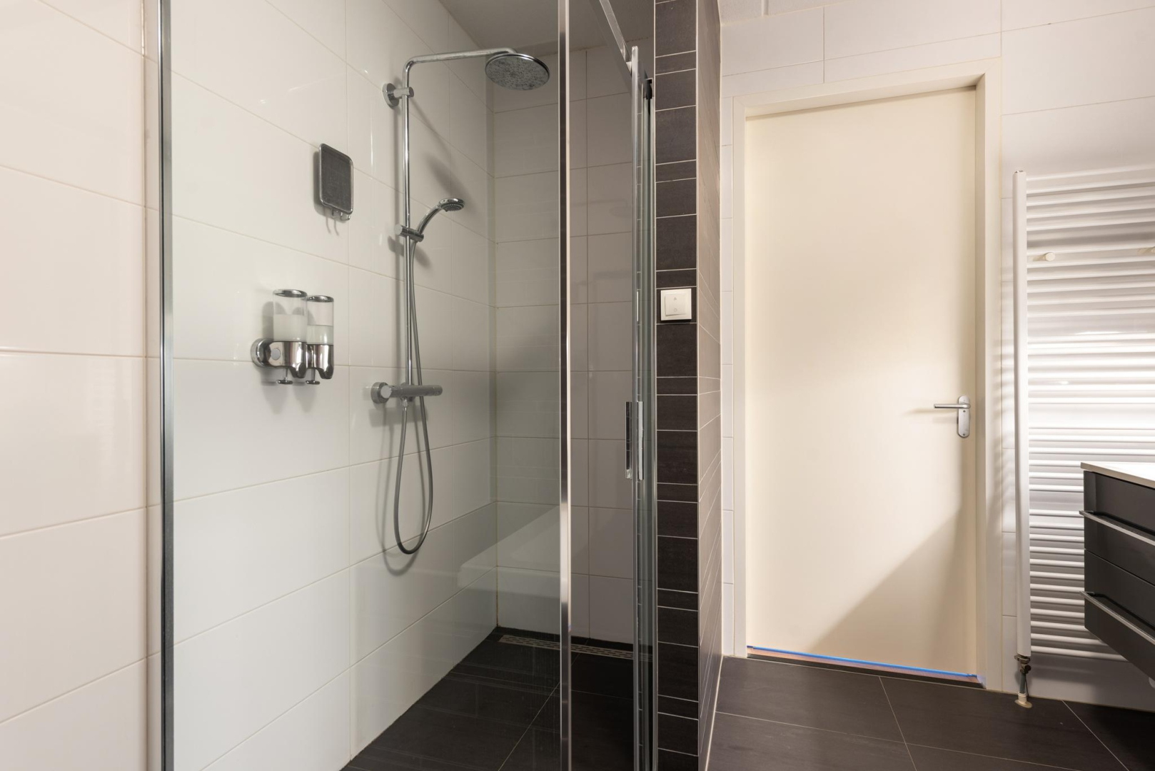 Via de overloop bereik je de separate toiletruimte, uitgerust met een modern wandcloset. Aan de voorzijde van de woning bevindt zich een riante slaapkamer die zich uitstrekt over de volledige breedte van het huis. Een heerlijke, lichte ruimte met volop mogelijkheden. De tweede slaapkamer aan de tuinzijde is eveneens ruim opgezet en beschikt over een charmant Frans balkon. Bovendien is deze kamer voorzien van een royale inloopkast, ideaal voor wie extra opbergruimte waardeert. De badkamer is compleet ingericht met een dubbele wastafel, praktische spiegelkasten, een handdoekradiator, ruime inloopdouche, comfortabel ligbad en mechanische ventilatie voor een aangenaam binnenklimaat.