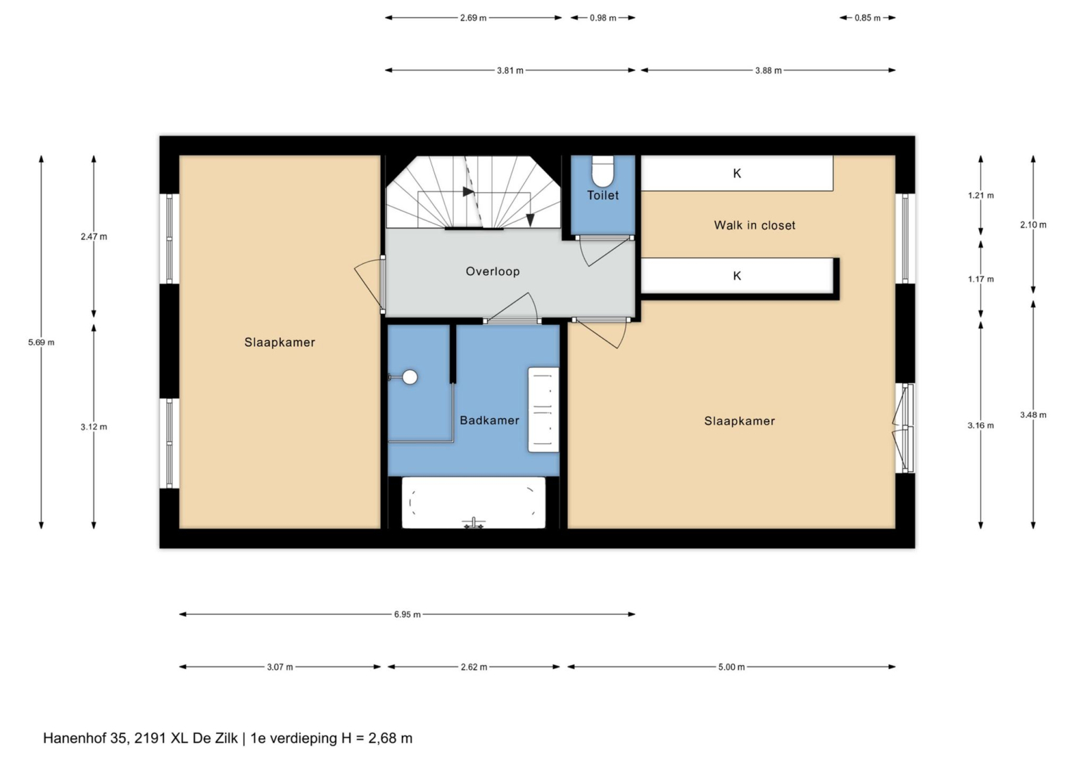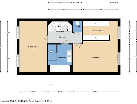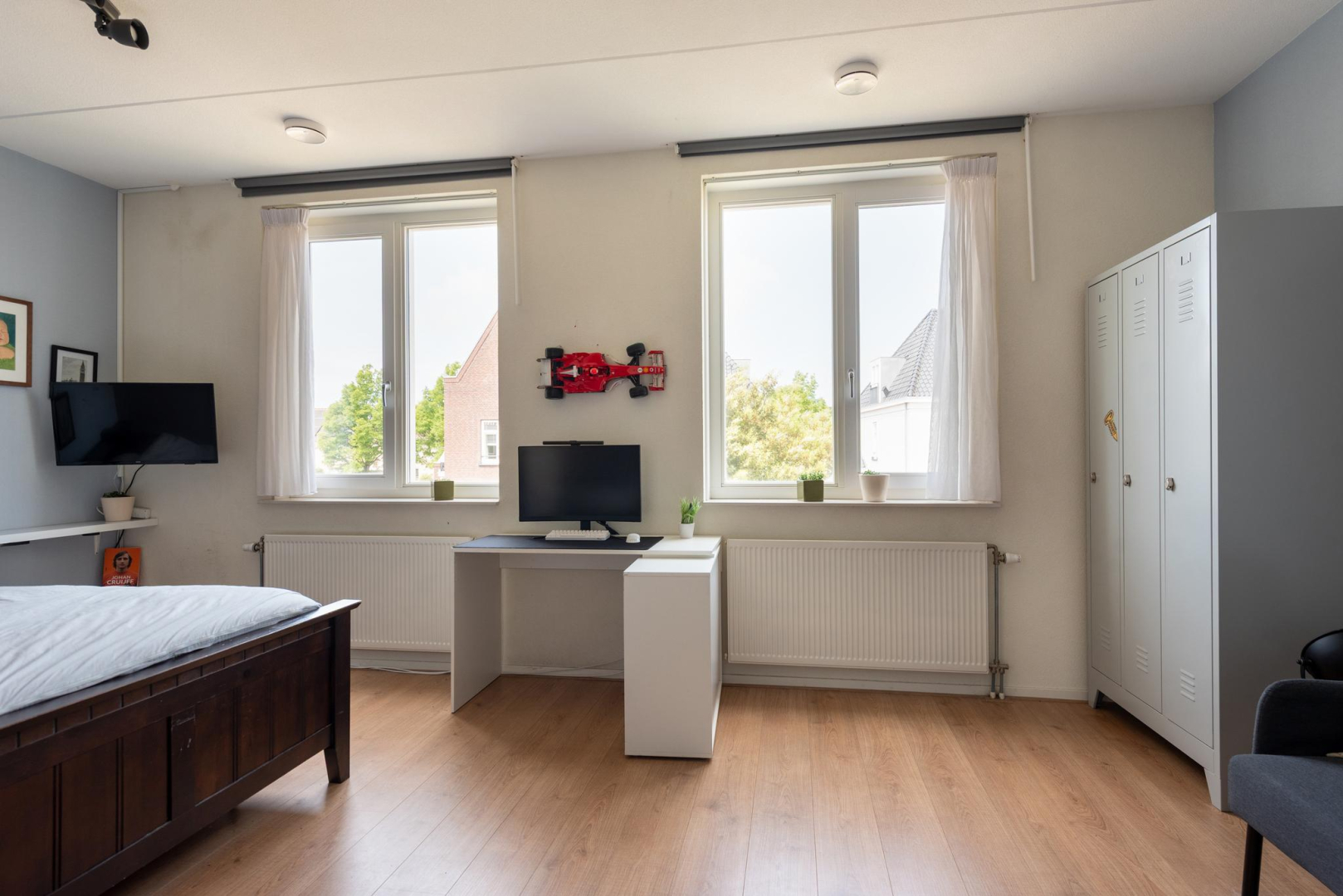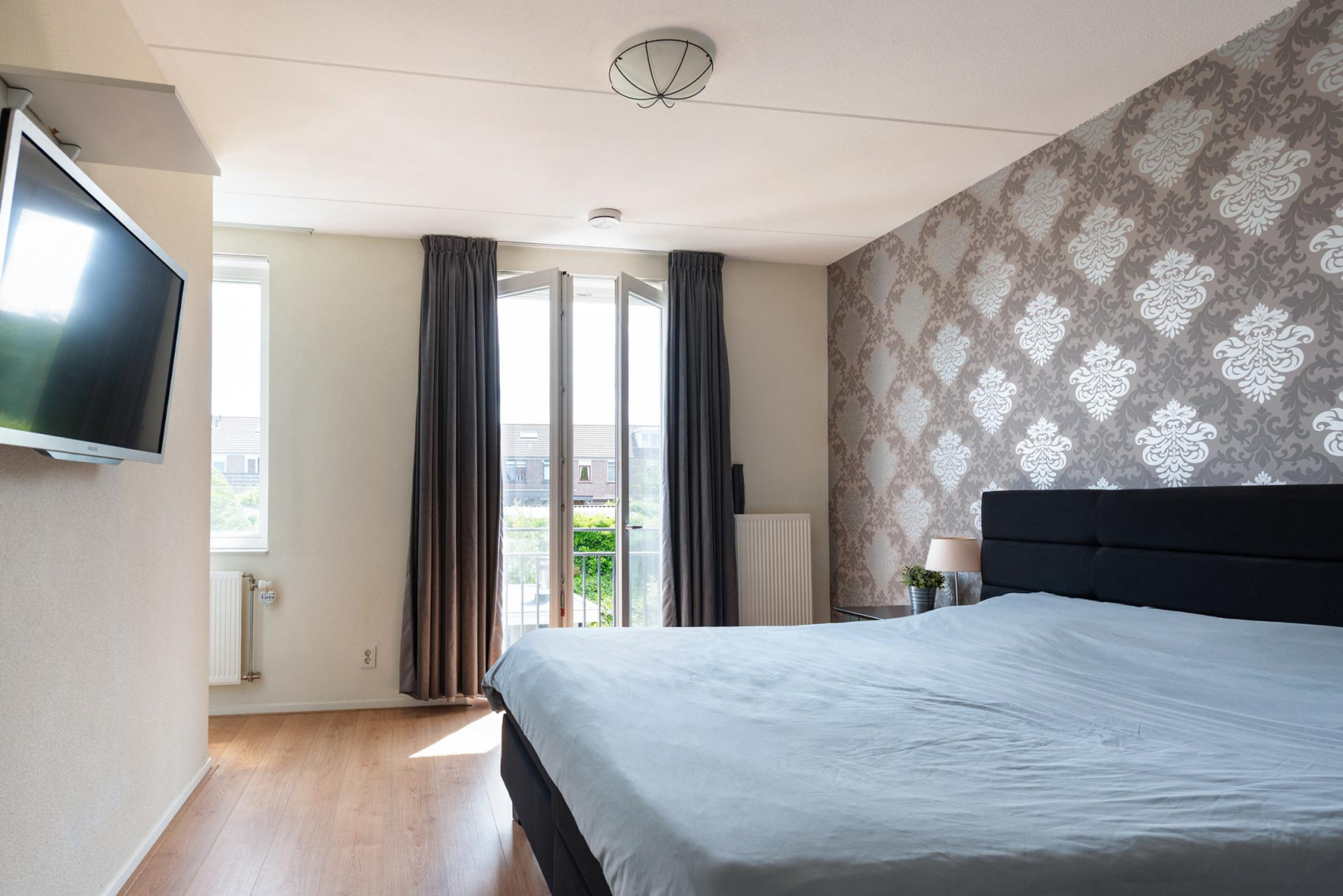Via de overloop bereik je de separate toiletruimte, uitgerust met een modern wandcloset. Aan de voorzijde van de woning bevindt zich een riante slaapkamer die zich uitstrekt over de volledige breedte van het huis. Een heerlijke, lichte ruimte met volop mogelijkheden. De tweede slaapkamer aan de tuinzijde is eveneens ruim opgezet en beschikt over een charmant Frans balkon. Bovendien is deze kamer voorzien van een royale inloopkast, ideaal voor wie extra opbergruimte waardeert. De badkamer is compleet ingericht met een dubbele wastafel, praktische spiegelkasten, een handdoekradiator, ruime inloopdouche, comfortabel ligbad en mechanische ventilatie voor een aangenaam binnenklimaat.